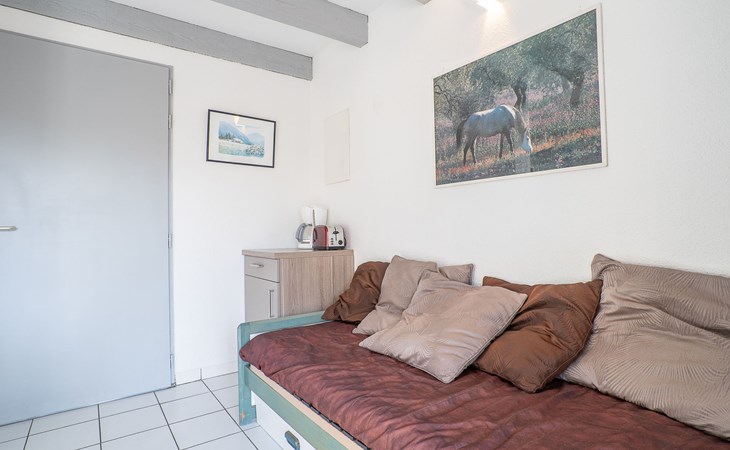Residentie "Bastide De L'Olivier". In de wijk Palais de la Mer, aan de rand van de plaats, 2 km van het centrum, 600 m van zee, 550 m van het strand. Voor medegebruik: openluchtzwembad (seizoensgebonden beschikbaarheid: 01.Jun. - 30.Sep.). Parkeerplaats. Winkel 2 km, levensmiddelenwinkel 400 m, winkelcentrum, restaurant, zandstrand 550 m, thermaalbad "Thalazur Les Bains De Camargue" 3 km. Jachthaven 1.5 km, zeilschool 1.5 km, manege 2.6 km. Attracties in de buurt: Casino Flamingo, Seaquarium 400 m, Aigues-Mortes 6 km, La Grande Motte 13 km, Les Saintes-Maries-de-la-Mer 37 km, Nîmes 52 km. Wandelgebied Réserve Naturelle de Camargue. De sleuteloverdracht vindt plaats bij het agentschap Interhome in Port Camargue. Vliegveld 25 km van het huis.