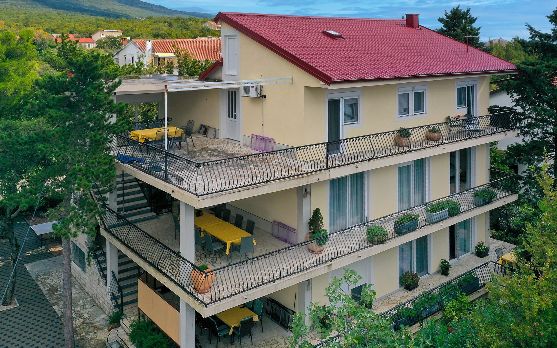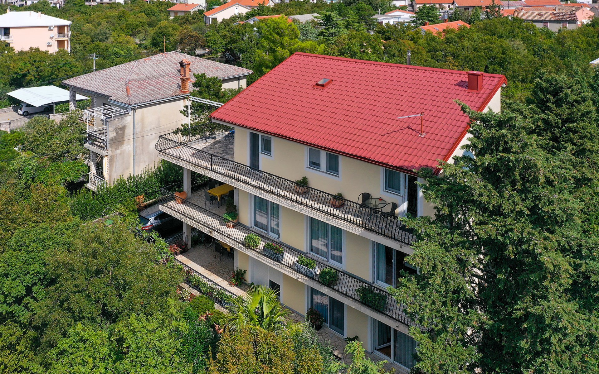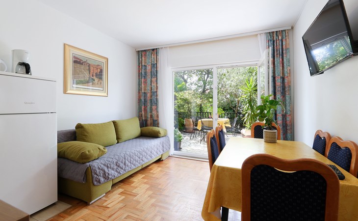 Jadranovo 7 km van Crikvenica: Appartementencomplex "Pintar". 350 m van zee, 350 m van het strand. Voor medegebruik: terrein 500 m2 (omheind), tuin 150 m2. Tafeltennis, barbecue, kinderspeelplaats (schommel). In het complex: internetaansluiting, trampoline, air-conditioning. Parkeerplaats bij het huis op het terrein. Winkel 1.3 km, restaurant 100 m, bushalte 130 m, kiezelstrand 350 m. De eigenaar accepteert geen jeugdgroepen. De eigenaar woont op hetzelfde terrein.