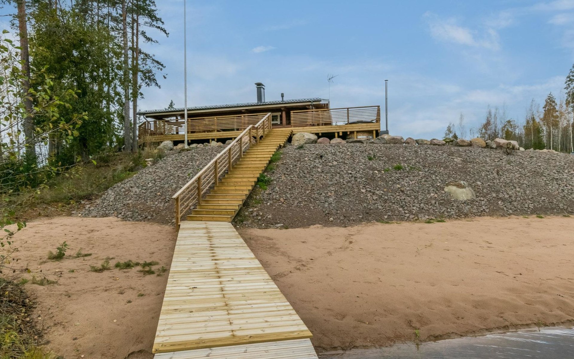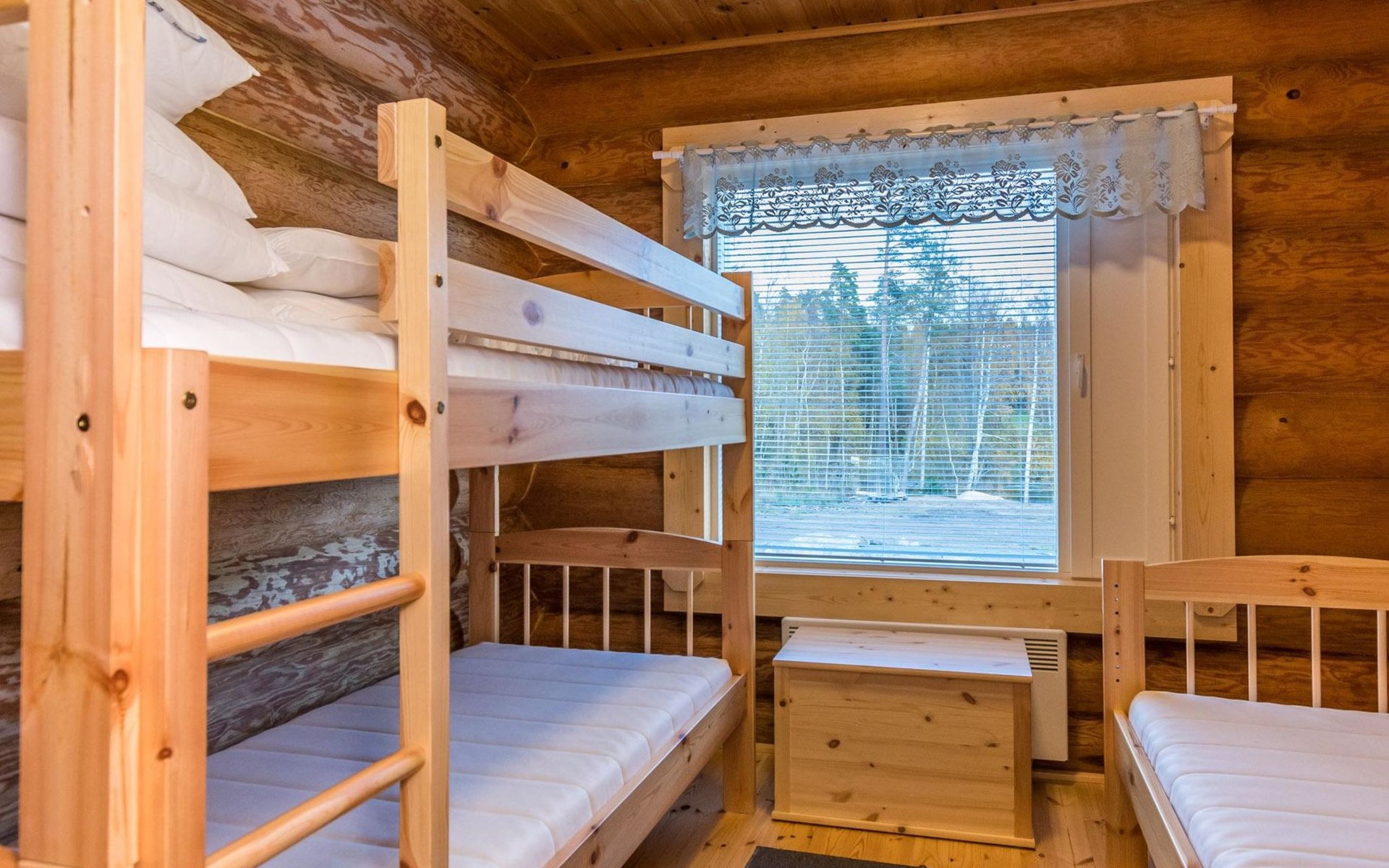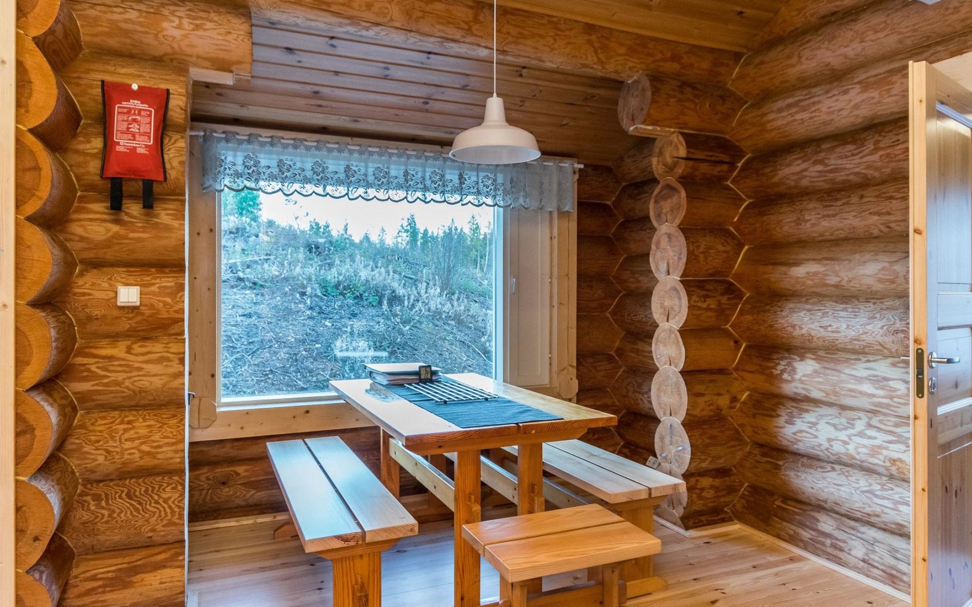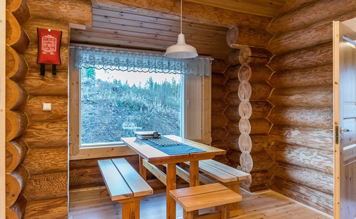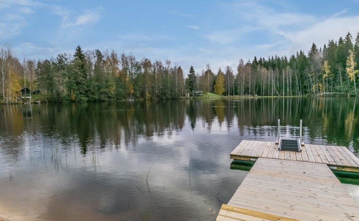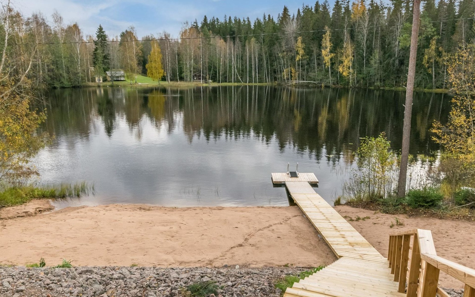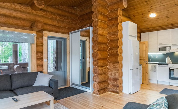 25 km to the east from Kouvola, Väliväylä Canoeing Route 15 m, gently deepening sand beach, rowing boat, and a pier. Round log cabin, built in 1998 and renovated in 2023, features a living room/kitchen, a bedroom with a double bed, another bedroom with a single bed and a bunk bed, a bathroom with a shower and WC, and a wood-burning sauna.