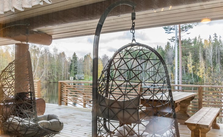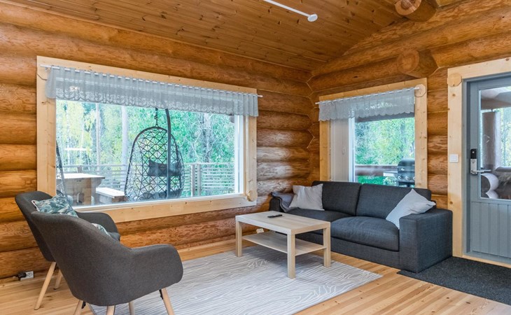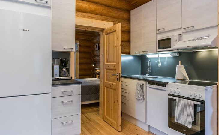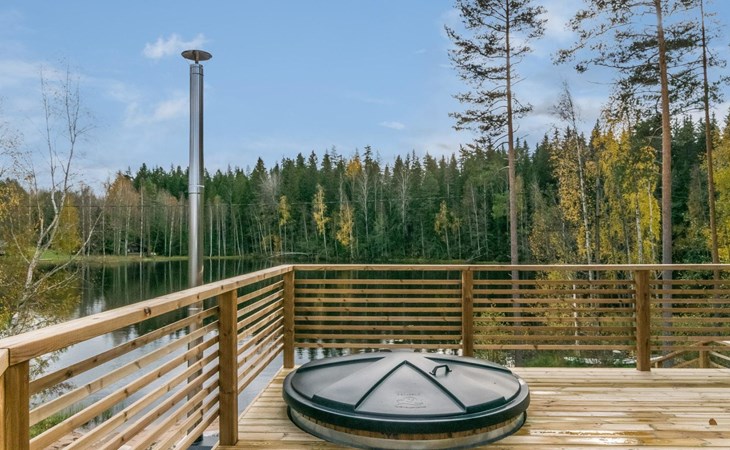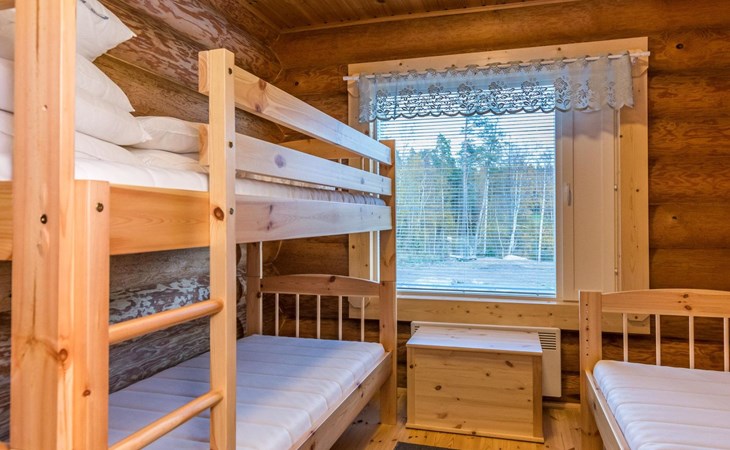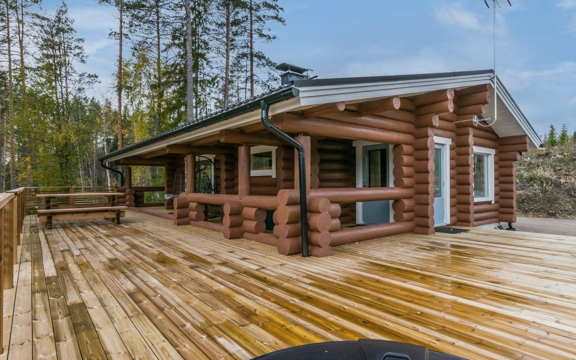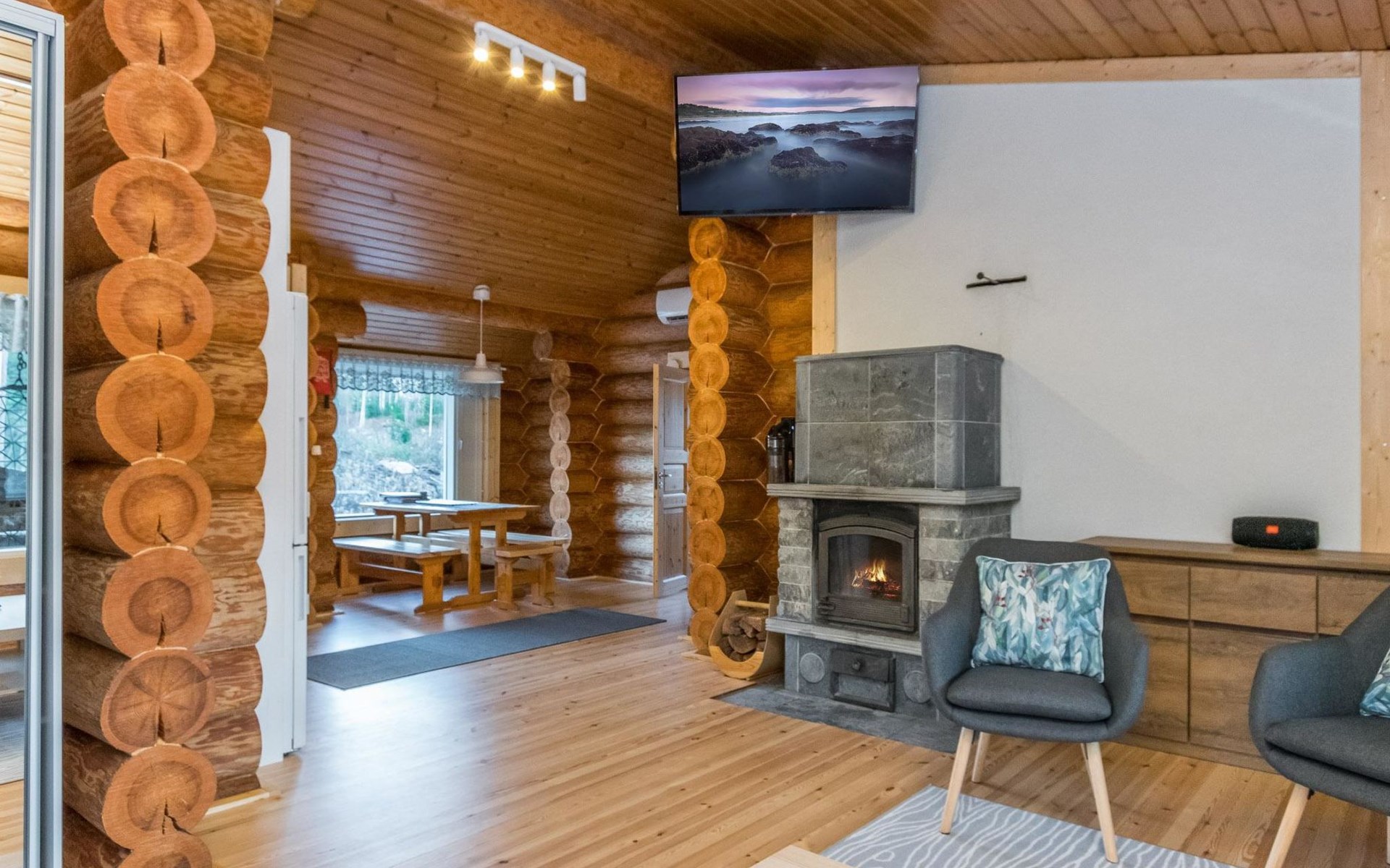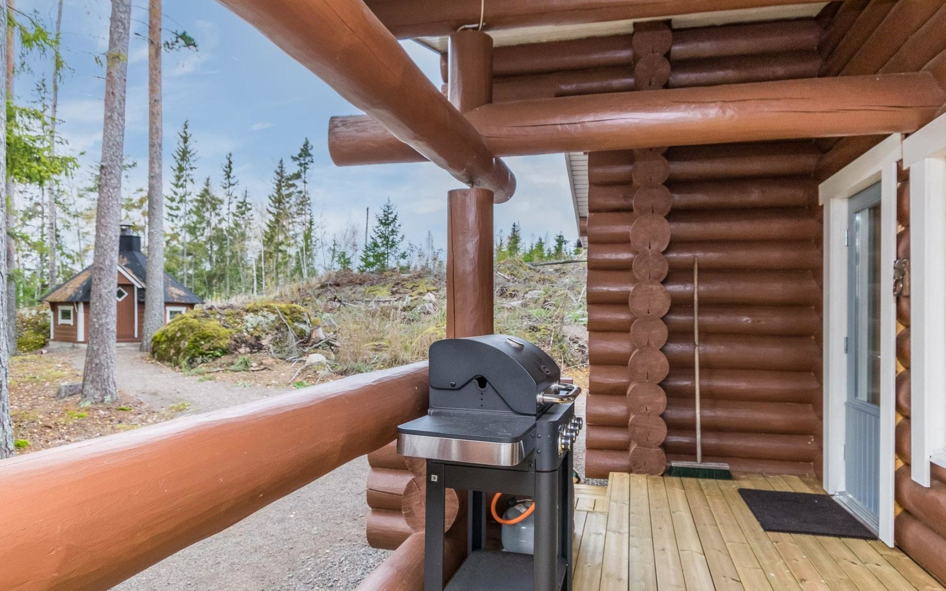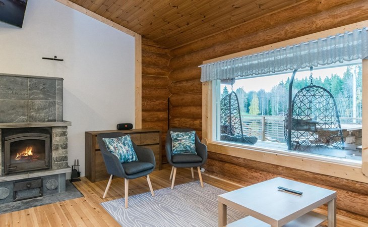 25 km to the east from Kouvola, Väliväylä Canoeing Route 15 m, gently deepening sand beach, rowing boat, and a pier. Round log cabin, built in 1998 and renovated in 2023, features a living room/kitchen, a bedroom with a double bed, another bedroom with a single bed and a bunk bed, a bathroom with a shower and WC, and a wood-burning sauna.