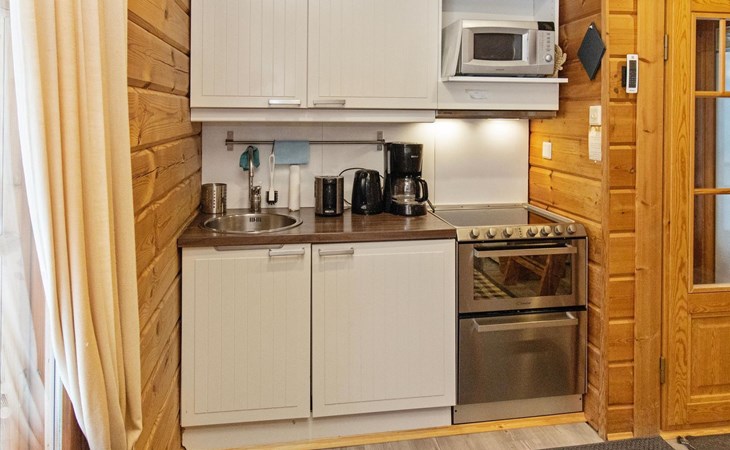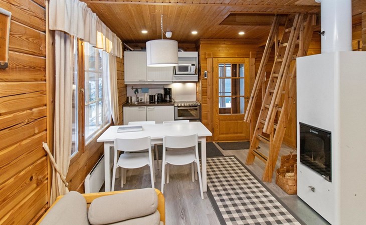 The kitchenette has everything you need within easy reach, and the dining area is a great place to enjoy being together. A fireplace adds warmth to the living area.