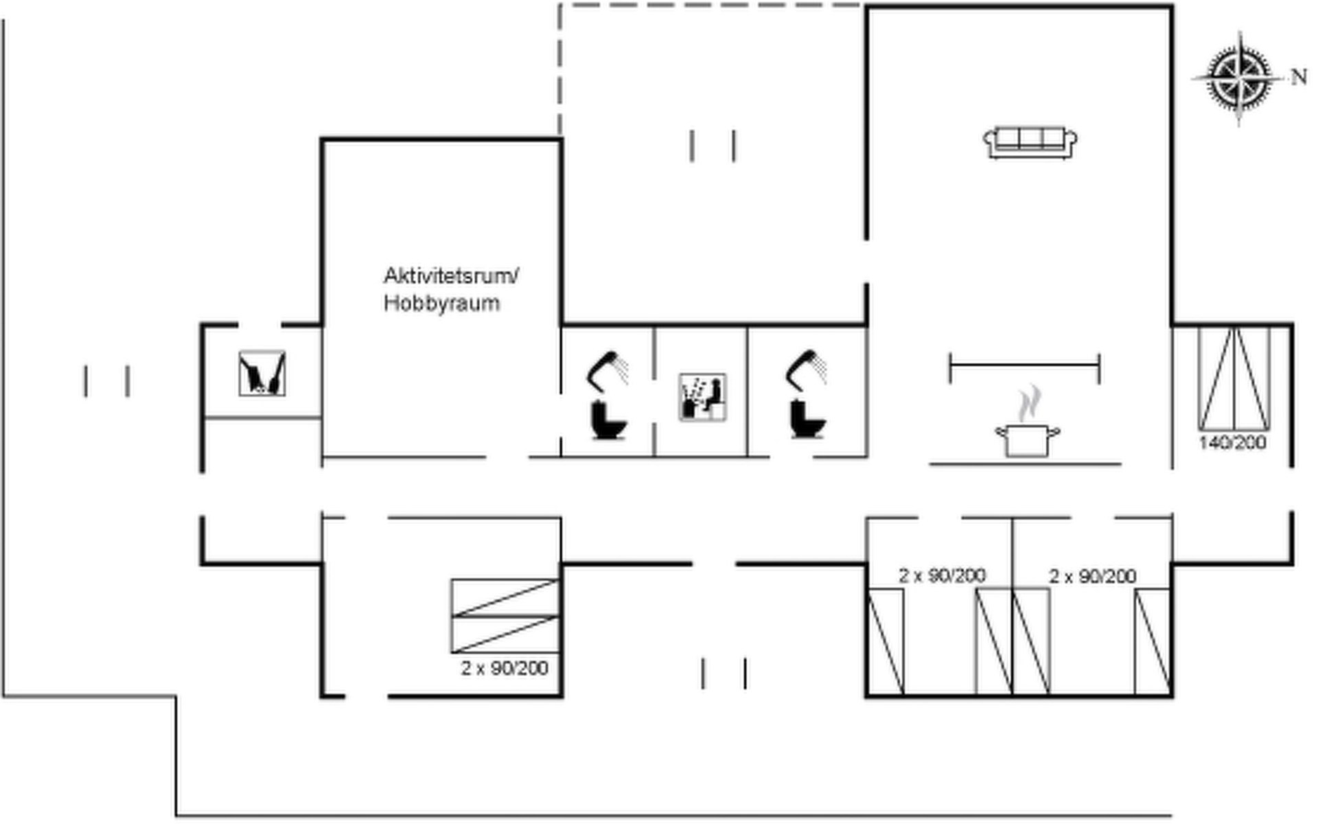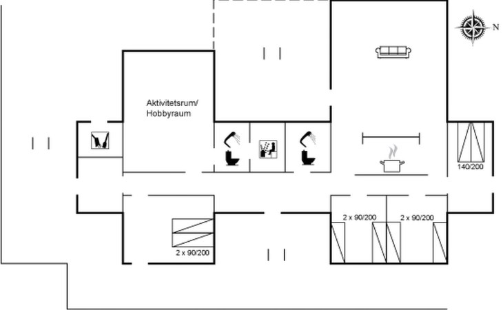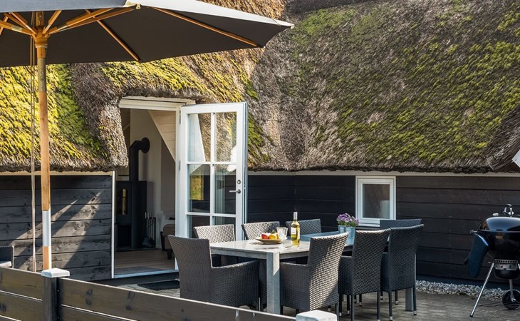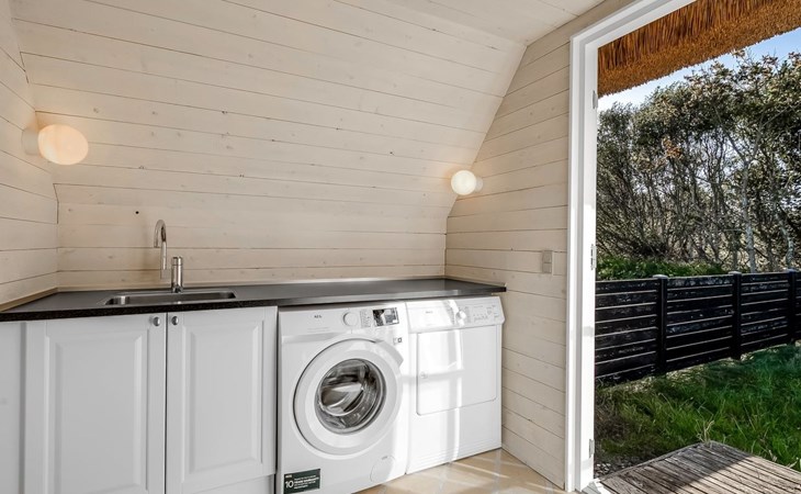 Eengezinswoning, bouwjaar 1989. 200 m van zee. Voor alleengebruik: wild terrein 2.535 m2. Terras (30 m2), barbecue. In het huis: sauna, tafelvoetbal, wasmachine, droger. Parkeerplaats bij het huis. Levensmiddelenwinkel 1.5 km. De eigenaar accepteert geen jeugdgroepen.