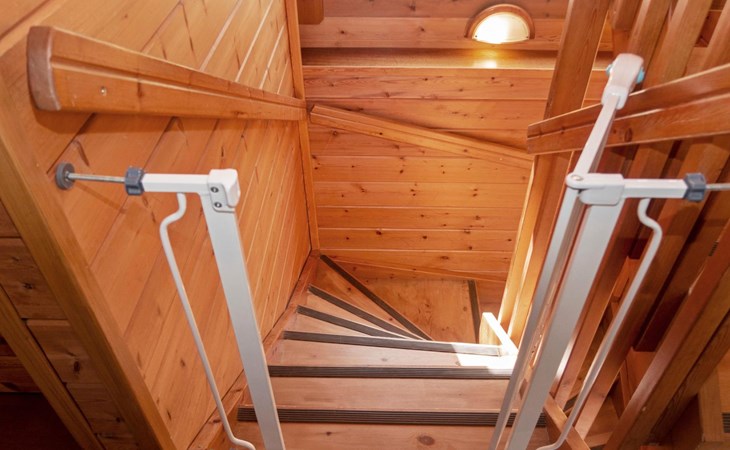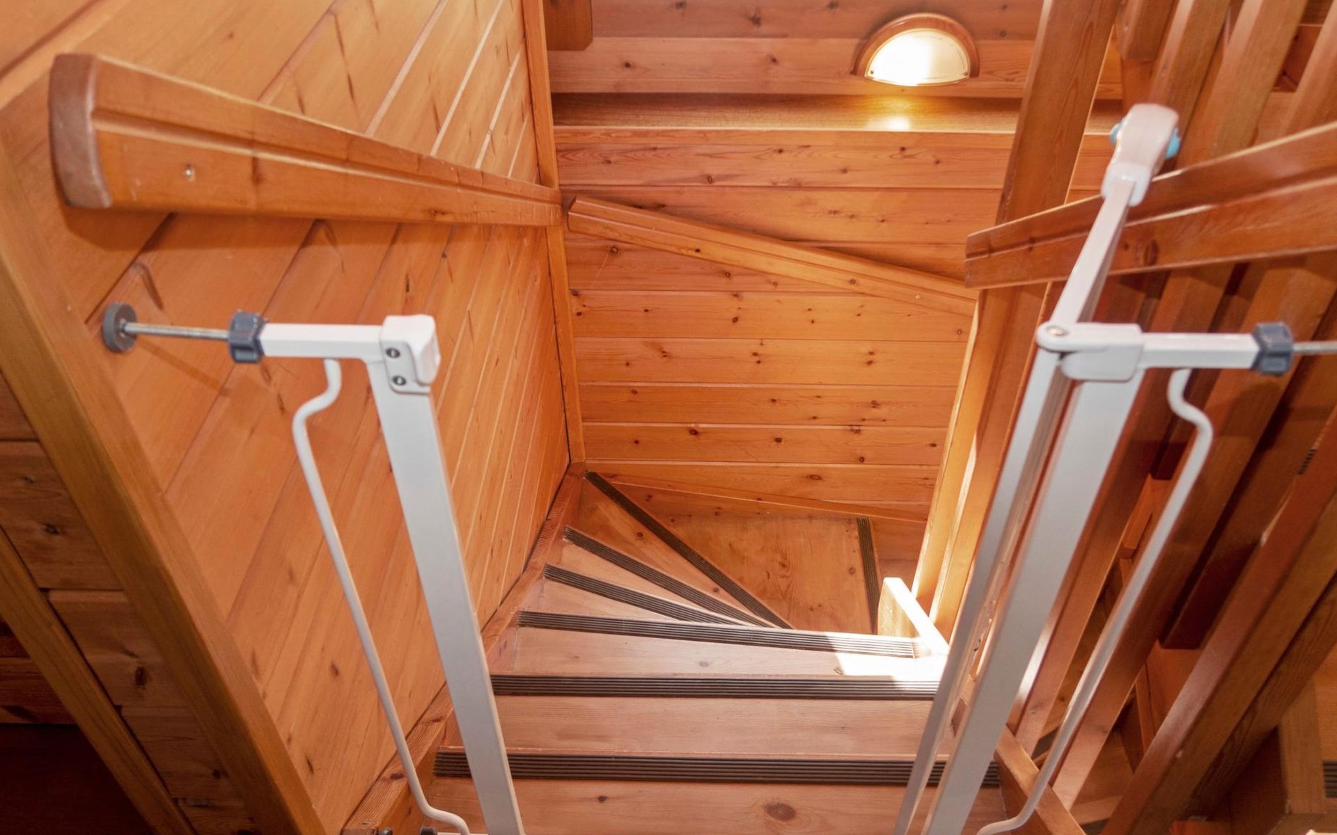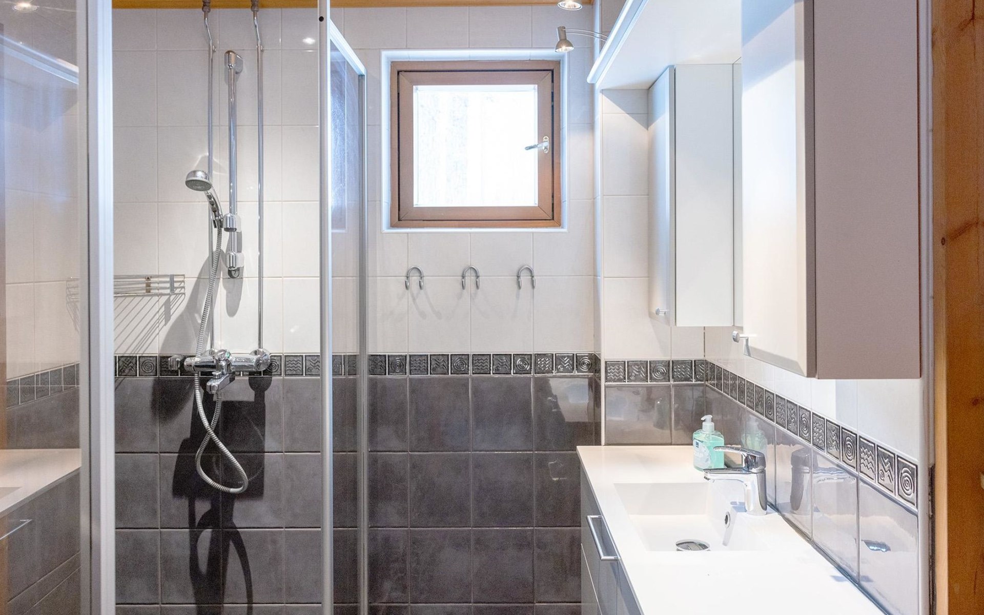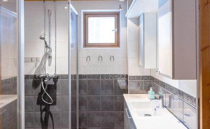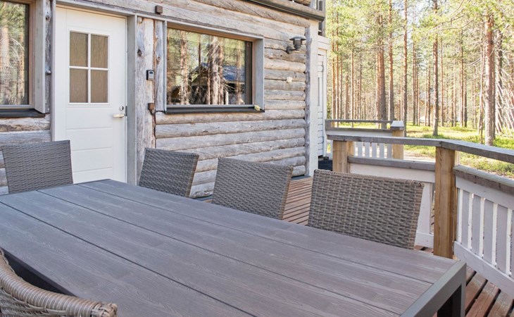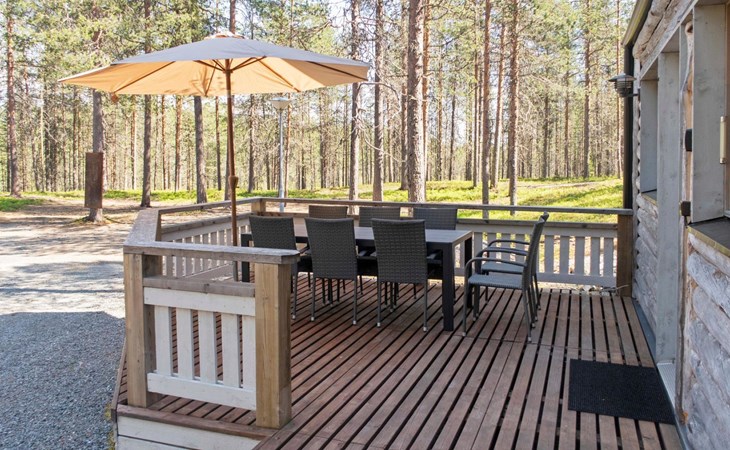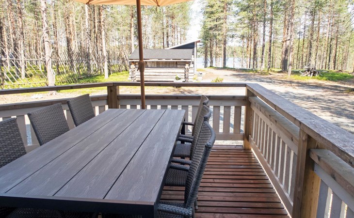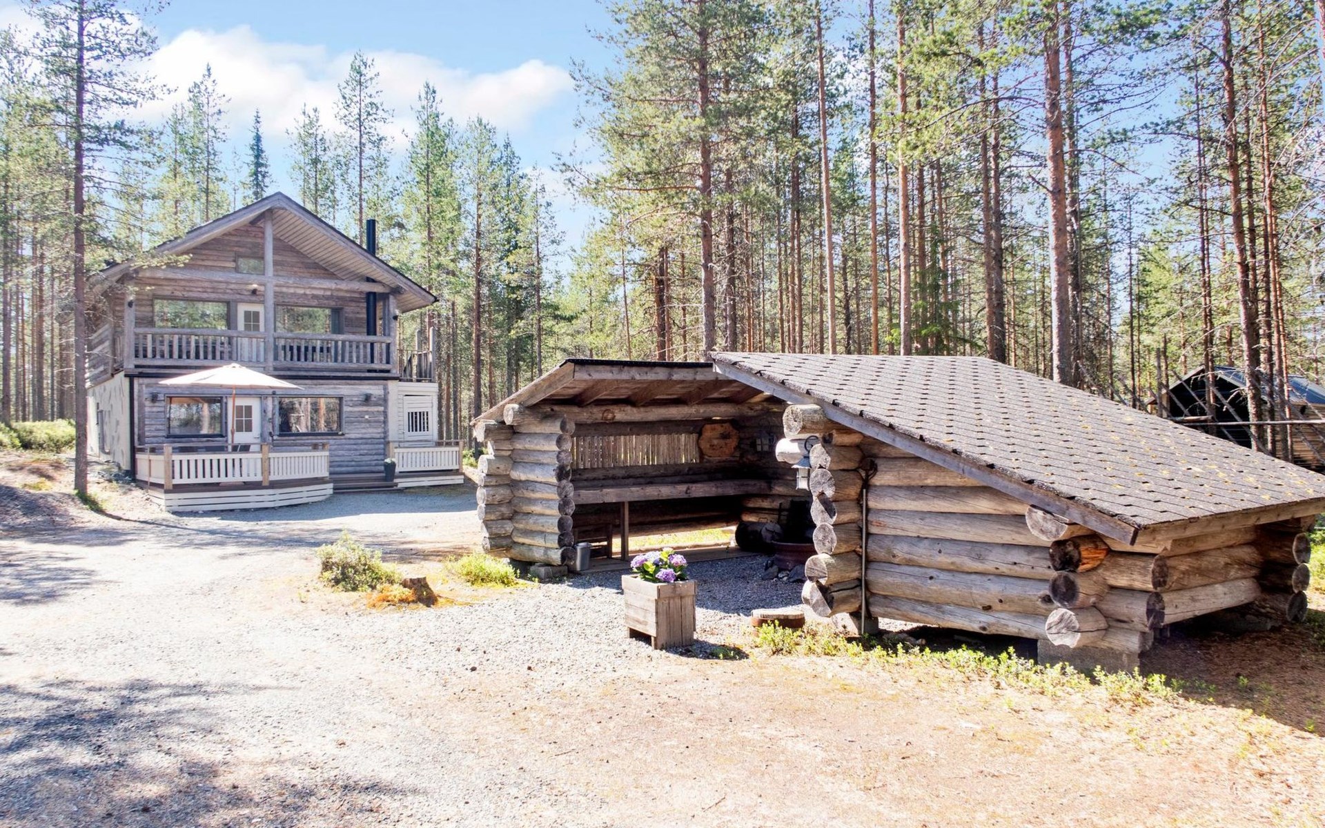 Lower floor: 2 single beds in the sleeping alcove, sofa bed in the fireplace room. Mini kitchen and electric sauna (renovated in 2024) + toilet.