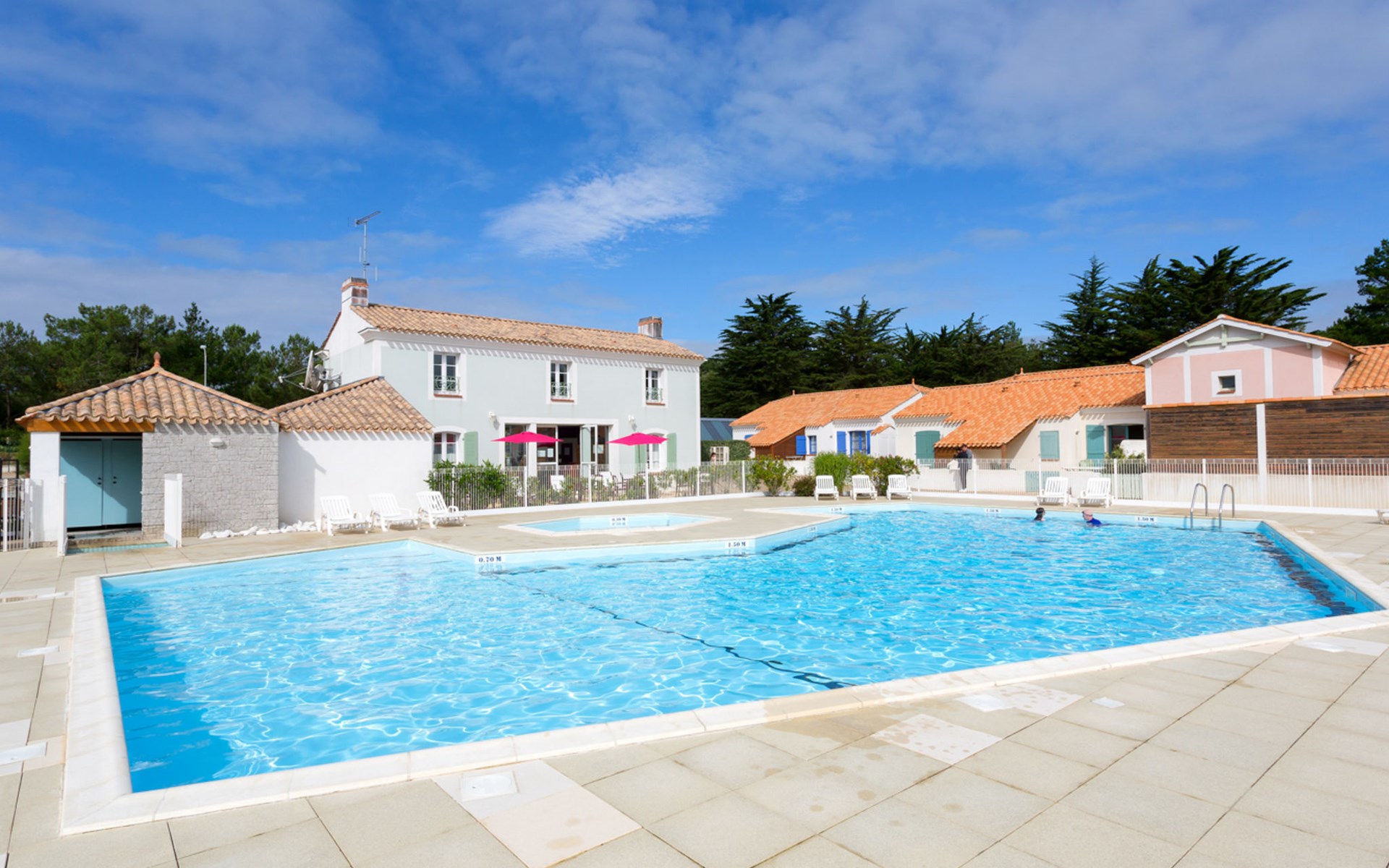 Groot, mooi vakantiecomplex "Les Mas de St. Hilaire", omgeven door bomen. 147 huizen in de plaats. 6 km van het centrum van St. Jean-de-Monts, 9 km van het centrum van St. Hilaire de Riez, buiten de plaats, 55 km van het centrum van Les Sables d'Olonne, 500 m van zee. Voor medegebruik: terrein 3 ha (omheind) met planten en bomen, openluchtzwembad (160 m2, seizoensgebonden beschikbaarheid: 01.Jun. - 15.Sep.). Terras. In het complex: receptie, Internet (WiFi). Broodjesservice. Parkeerplaats op het terrein. Supermarkt 1.5 km, zandstrand 500 m. De afgebeelde foto is slechts een voorbeeld. De huurobjecten kunnen wb. Woonoppervlak, kamerindeling verschillen. Wifi alleen bij de receptie.