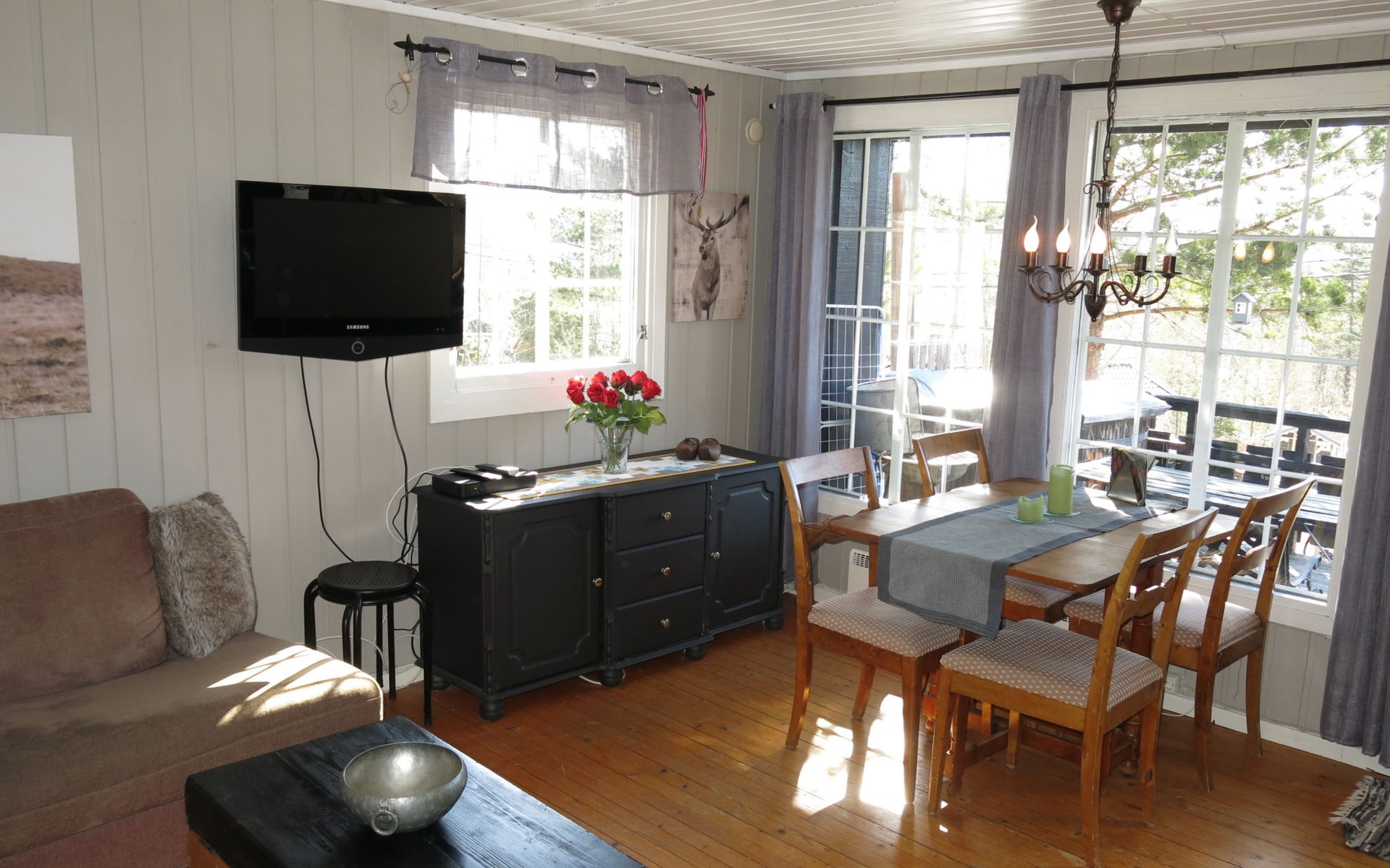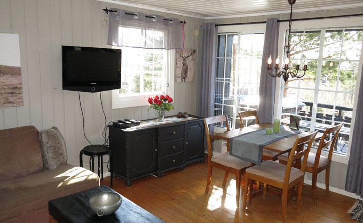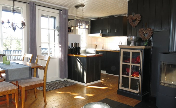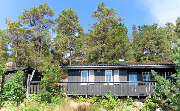 Vakantiepark "Evabu". 11 km van het centrum van Kyrkjebygd, 78 km van het centrum van Mandal, 84 km van het centrum van Kristiansand, 550 m van het meer. Voor alleengebruik: wild terrein 500 m2. 100 m lange rommelige toegangsweg. Parkeerplaats op het terrein. Winkel 11 km, bushalte "Eikerapen" 210 m, veerboot "Kristiansand" 84 km, 2 km.