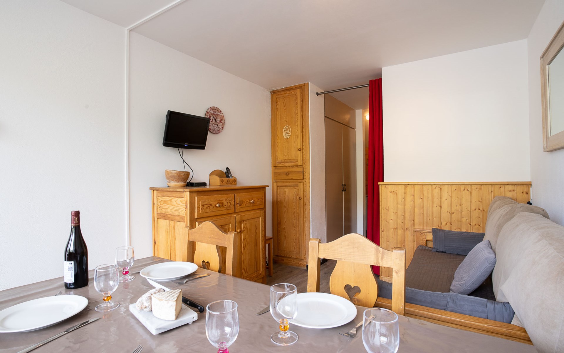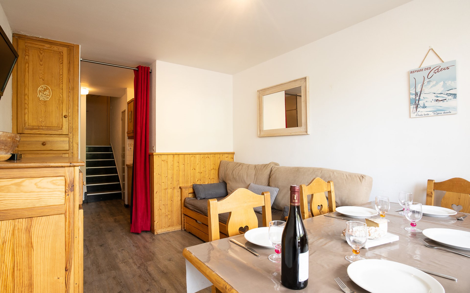 Residentie "Les Lauzes", van 5 verdiepingen. 200 m van het centrum van La Croisette, 200 m van het skigebied. In het complex: restaurant, lift, berging voor ski's, centrale verwarming. Openbare parkeerplaatsen. Winkel, winkelcentrum 200 m, centrum te voet bereikbaar in 5 minuten, bushalte "Gare routière Les Menuires" 500 m. Sportcentrum, ski faciliteiten, skipisten 200 m, skischool 200 m, kinderoppasdienst 500 m. Bekende skigebieden kunnen gemakkelijk worden bereikt: 3 Vallées. De afgebeelde foto is slechts een voorbeeld. Vergelijkbare accommodaties kunnen worden geboekt.