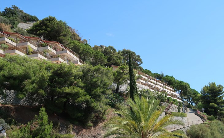 Ventimiglia Ville: Mooi residentie "Le Calandre", van 3 verdiepingen. 16 appartementen in de woning. 400 m van het centrum van Ventimiglia Alta, 3 km van het centrum van Ventimiglia, zonnige ligging, 600 m van zee. Toegangsweg tot aan het huis. Trappenweg (5 treden) naar het huis. Parkeerplaats bij het huis. Levensmiddelenwinkel 400 m, supermarkt 3 km, bar 500 m, bakkerij 400 m, bushalte 100 m, treinstation "Ventimiglia" 3 km, zandstrand "Calandre" 600 m kiezelstrand 500 m. Attracties in de buurt: Hanbury Garden 5 km, Balzi Rossi 8 km, Sanremo 20 km, Mentone 3 km. Auto noodzakelijk.