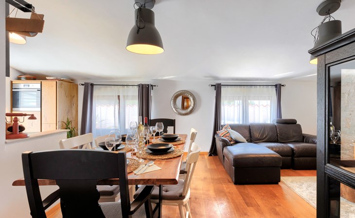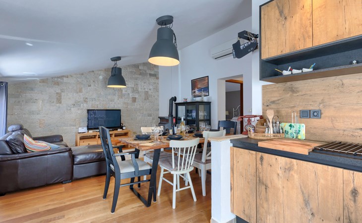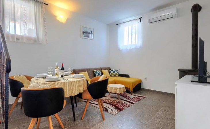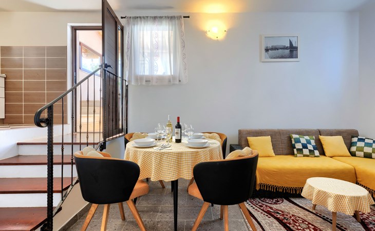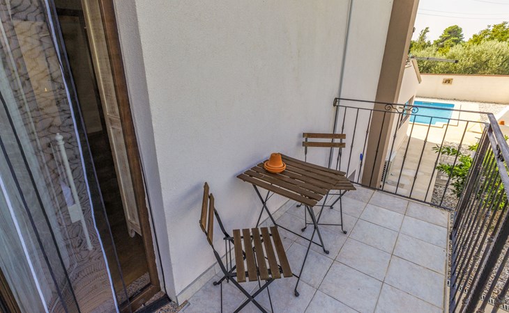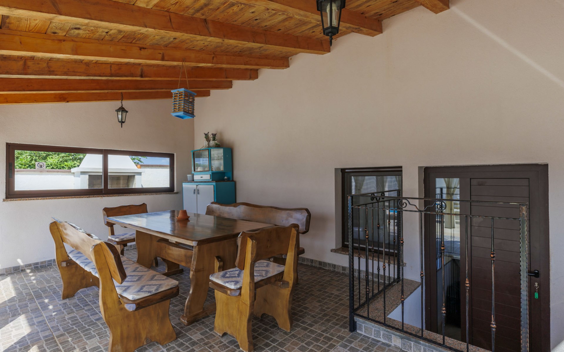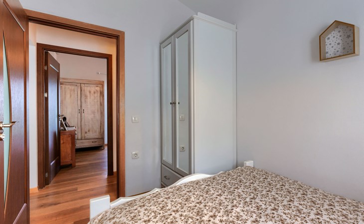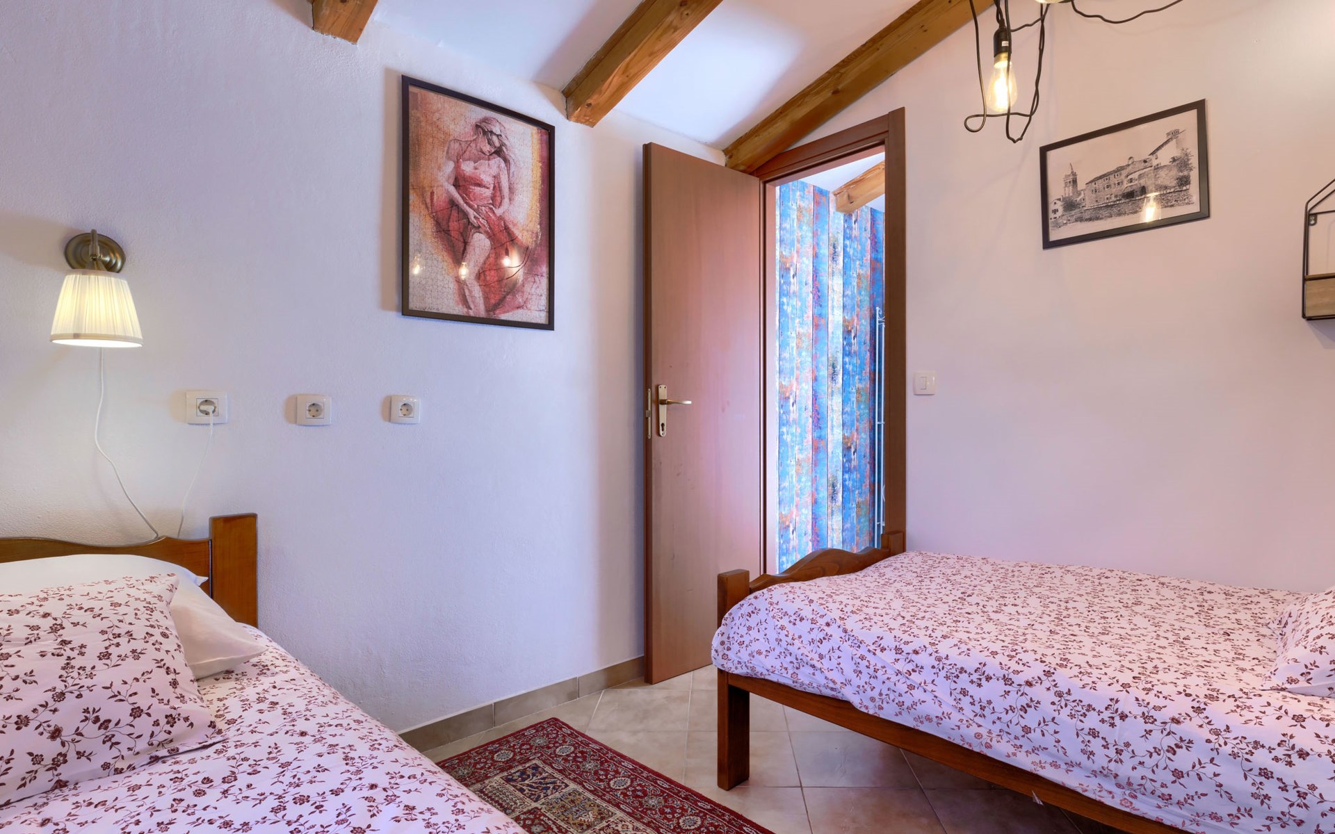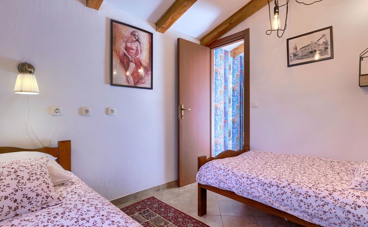 Eengezinswoning "Barbolan", van 2 verdiepingen. 3 km van het centrum van Medulin, rustige, zonnige ligging, direct aan de bosrand, 1.6 km van zee, 2 km van het strand. Voor alleengebruik: terrein 600 m2 (omheind), tuin met gazon, openluchtzwembad hoekig (7 x 3 m, 140 cm diepte, seizoensgebonden beschikbaarheid: 02.Mei. - 10.Okt.). Buitendouche, terras (40 m2), tuinmeubelen, barbecue, kinderspeelplaats (schommel). In het huis: internetaansluiting, trampoline, wasmachine. Toegangsweg tot aan het huis (500 m onverharde weg). Parkeerplaats (voor 3 auto's) bij het huis op het terrein. Winkel 1 km, restaurant 1.5 km, bushalte 2.1 km, zandstrand 3.5 km kiezelstrand 2 km, rotsstrand 2 km. Manege 5 km, wandelroutes 100 m vanaf het huis, fietspad 150 m. Attracties in de buurt: Amphitheater 8 km, Nature park Kamenjak 10 km. De woning bestaat uit 2 appartementen die samen als 1 woning verhuurd worden.