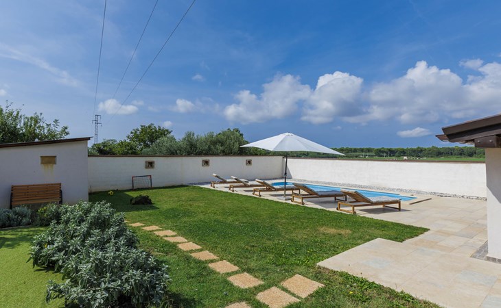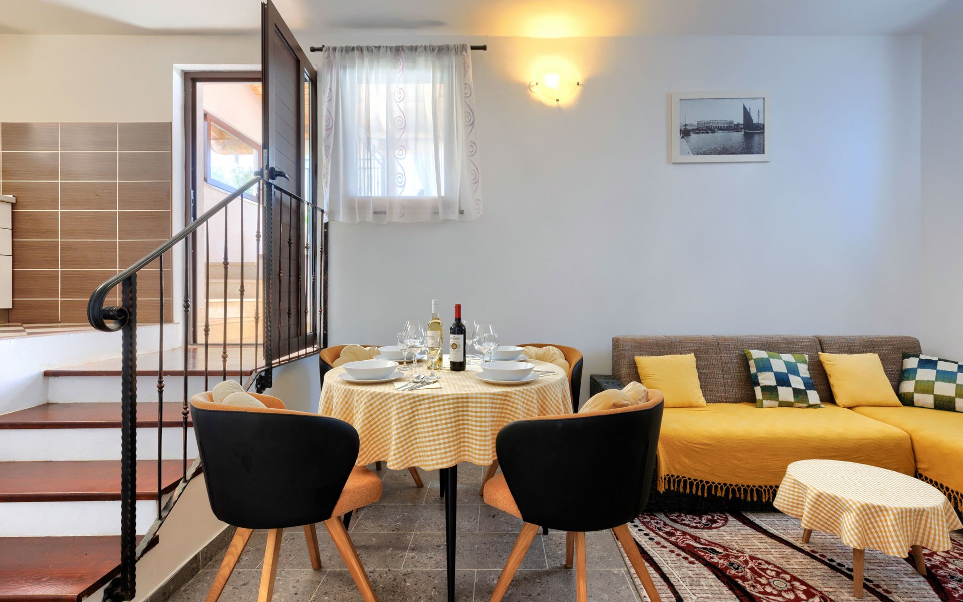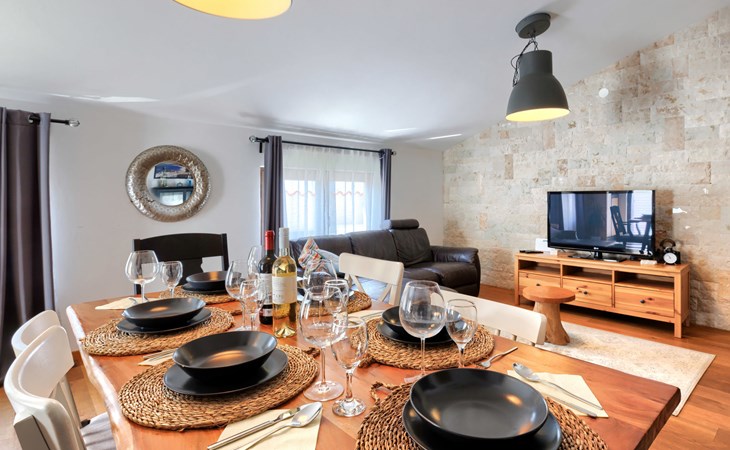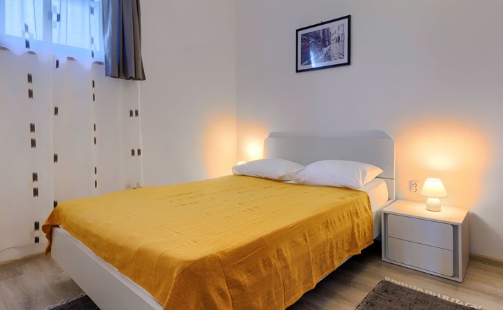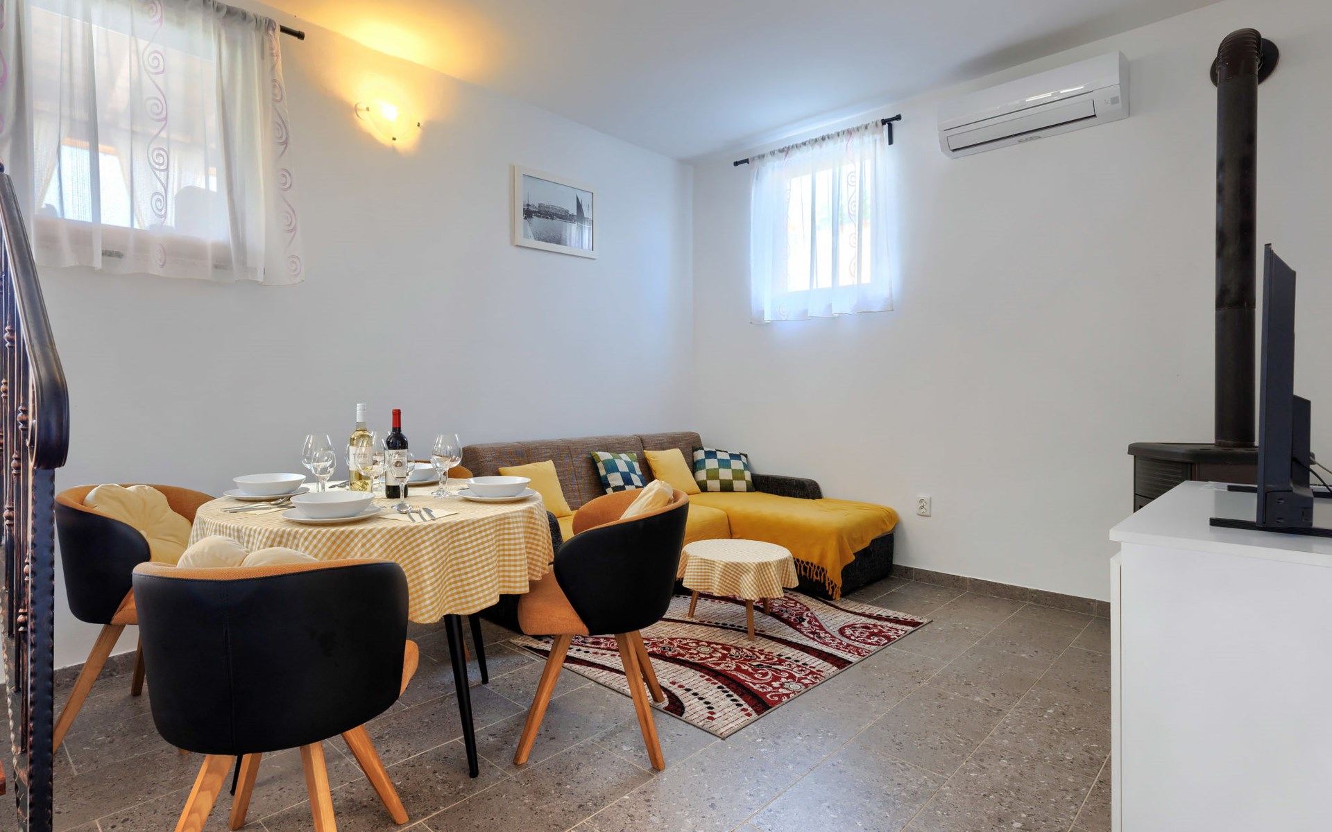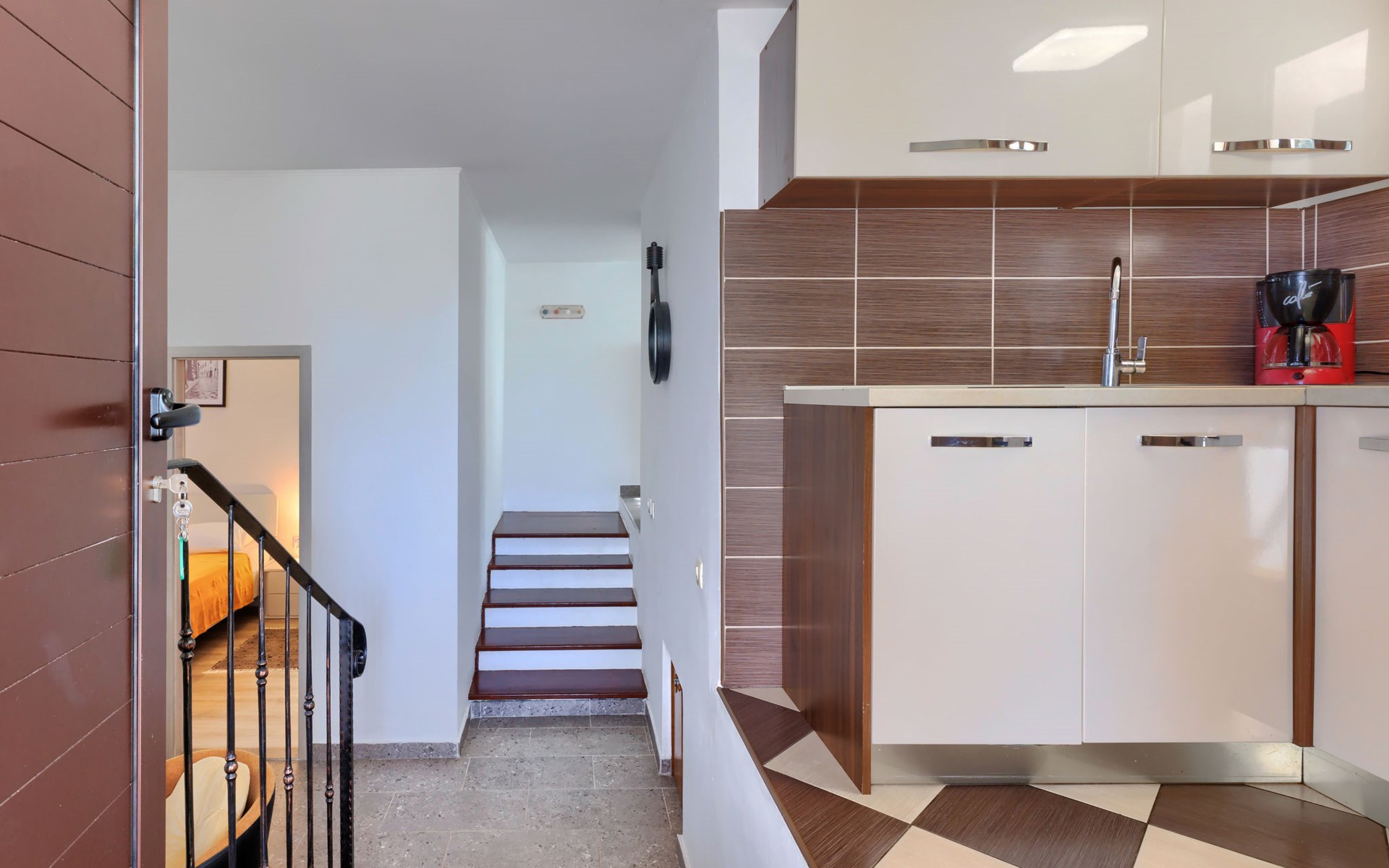 Eengezinswoning "Barbolan", van 2 verdiepingen. 3 km van het centrum van Medulin, rustige, zonnige ligging, direct aan de bosrand, 1.6 km van zee, 2 km van het strand. Voor alleengebruik: terrein 600 m2 (omheind), tuin met gazon, openluchtzwembad hoekig (7 x 3 m, 140 cm diepte, seizoensgebonden beschikbaarheid: 02.Mei. - 10.Okt.). Buitendouche, terras (40 m2), tuinmeubelen, barbecue, kinderspeelplaats (schommel). In het huis: internetaansluiting, trampoline, wasmachine. Toegangsweg tot aan het huis (500 m onverharde weg). Parkeerplaats (voor 3 auto's) bij het huis op het terrein. Winkel 1 km, restaurant 1.5 km, bushalte 2.1 km, zandstrand 3.5 km kiezelstrand 2 km, rotsstrand 2 km. Manege 5 km, wandelroutes 100 m vanaf het huis, fietspad 150 m. Attracties in de buurt: Amphitheater 8 km, Nature park Kamenjak 10 km. De woning bestaat uit 2 appartementen die samen als 1 woning verhuurd worden.