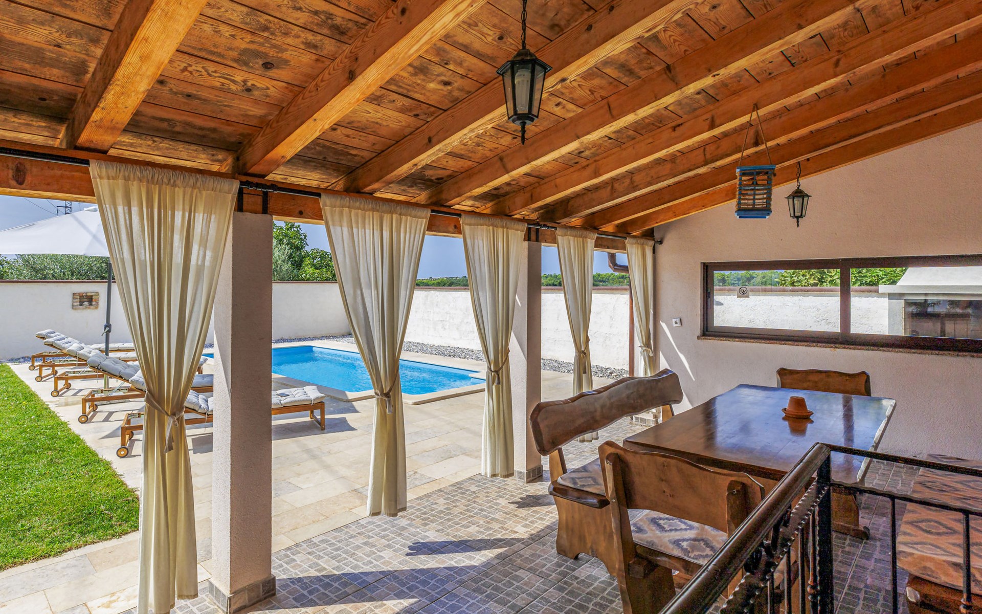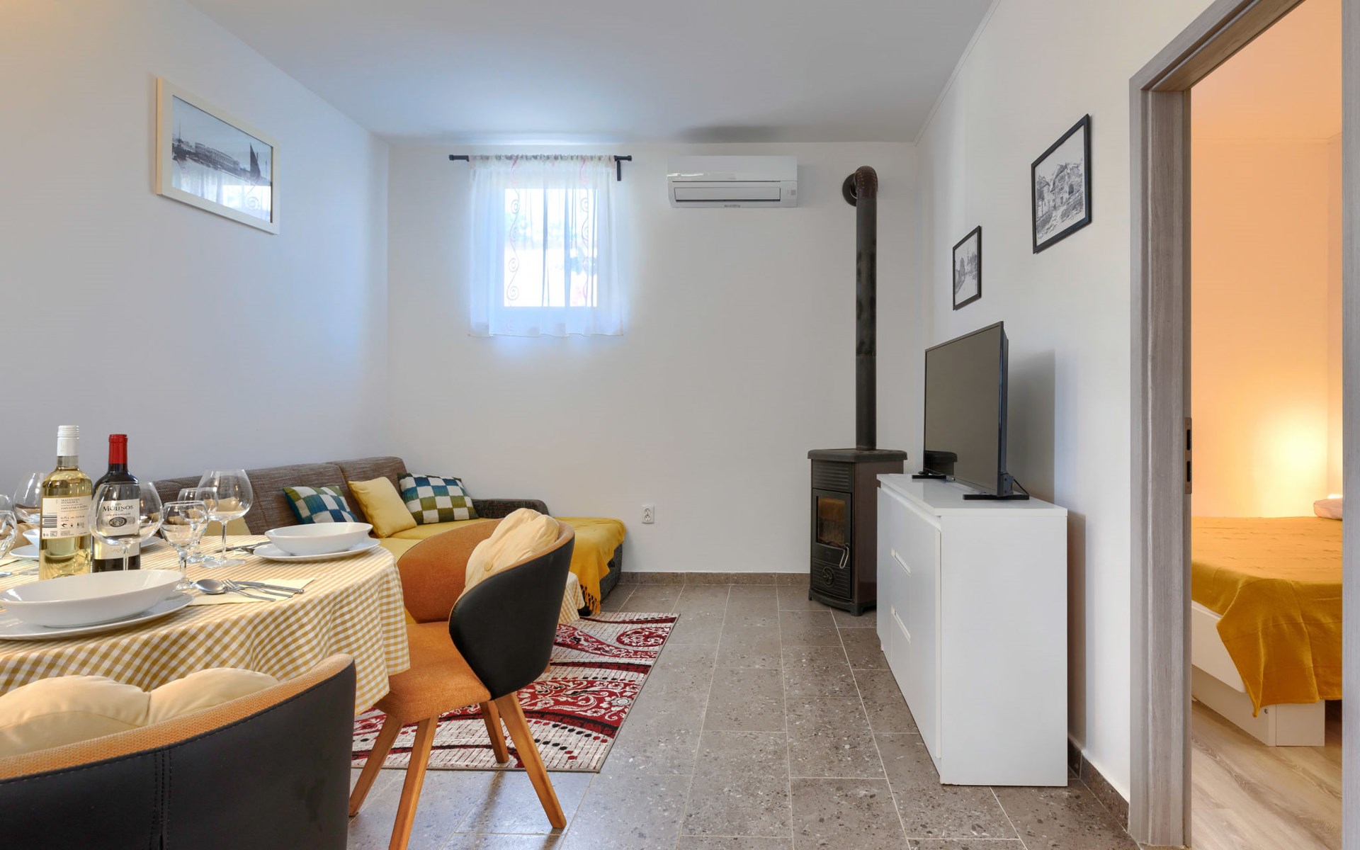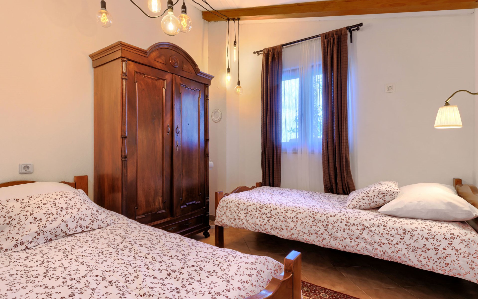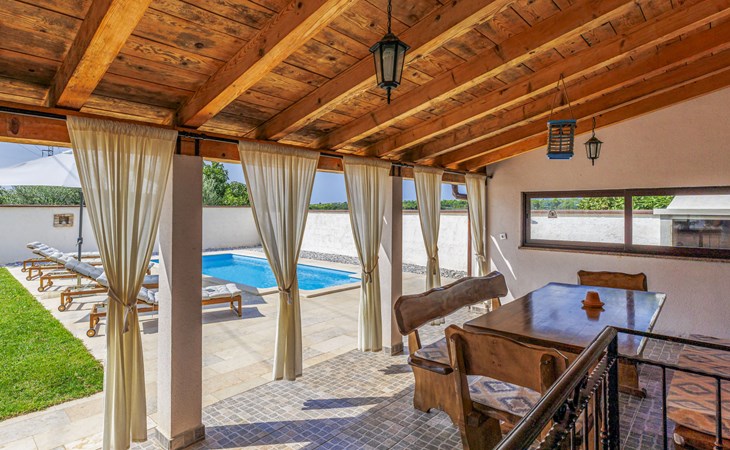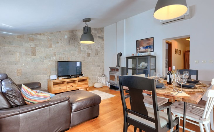 Eengezinswoning "Barbolan", van 2 verdiepingen. 3 km van het centrum van Medulin, rustige, zonnige ligging, direct aan de bosrand, 1.6 km van zee, 2 km van het strand. Voor alleengebruik: terrein 600 m2 (omheind), tuin met gazon, openluchtzwembad hoekig (7 x 3 m, 140 cm diepte, seizoensgebonden beschikbaarheid: 02.Mei. - 10.Okt.). Buitendouche, terras (40 m2), tuinmeubelen, barbecue, kinderspeelplaats (schommel). In het huis: internetaansluiting, trampoline, wasmachine. Toegangsweg tot aan het huis (500 m onverharde weg). Parkeerplaats (voor 3 auto's) bij het huis op het terrein. Winkel 1 km, restaurant 1.5 km, bushalte 2.1 km, zandstrand 3.5 km kiezelstrand 2 km, rotsstrand 2 km. Manege 5 km, wandelroutes 100 m vanaf het huis, fietspad 150 m. Attracties in de buurt: Amphitheater 8 km, Nature park Kamenjak 10 km. De woning bestaat uit 2 appartementen die samen als 1 woning verhuurd worden.