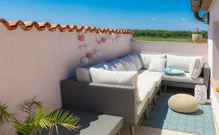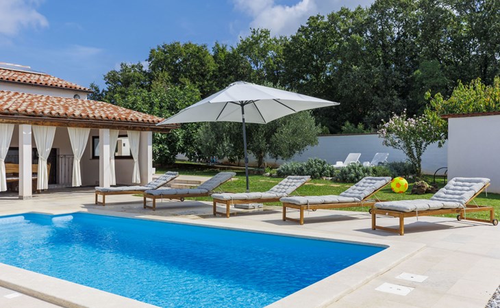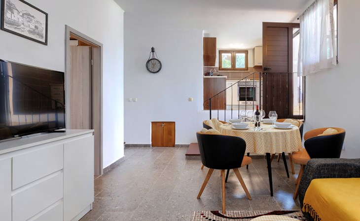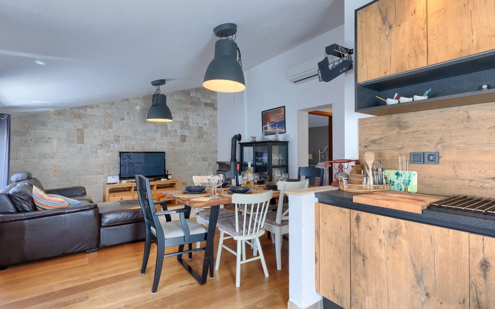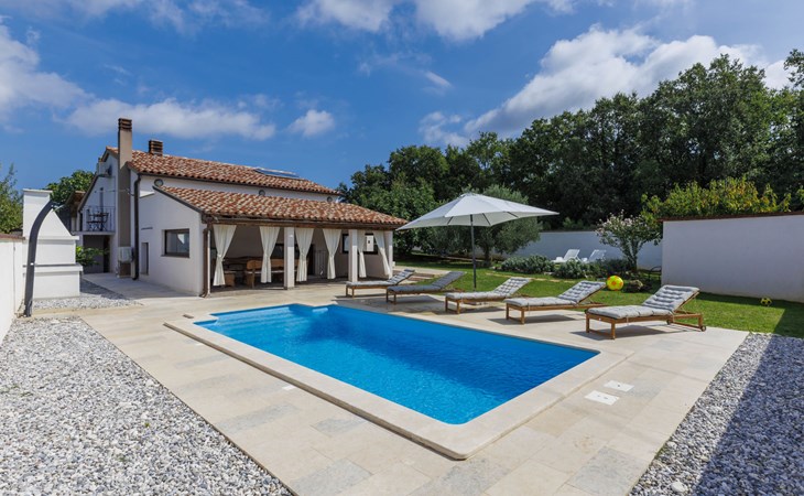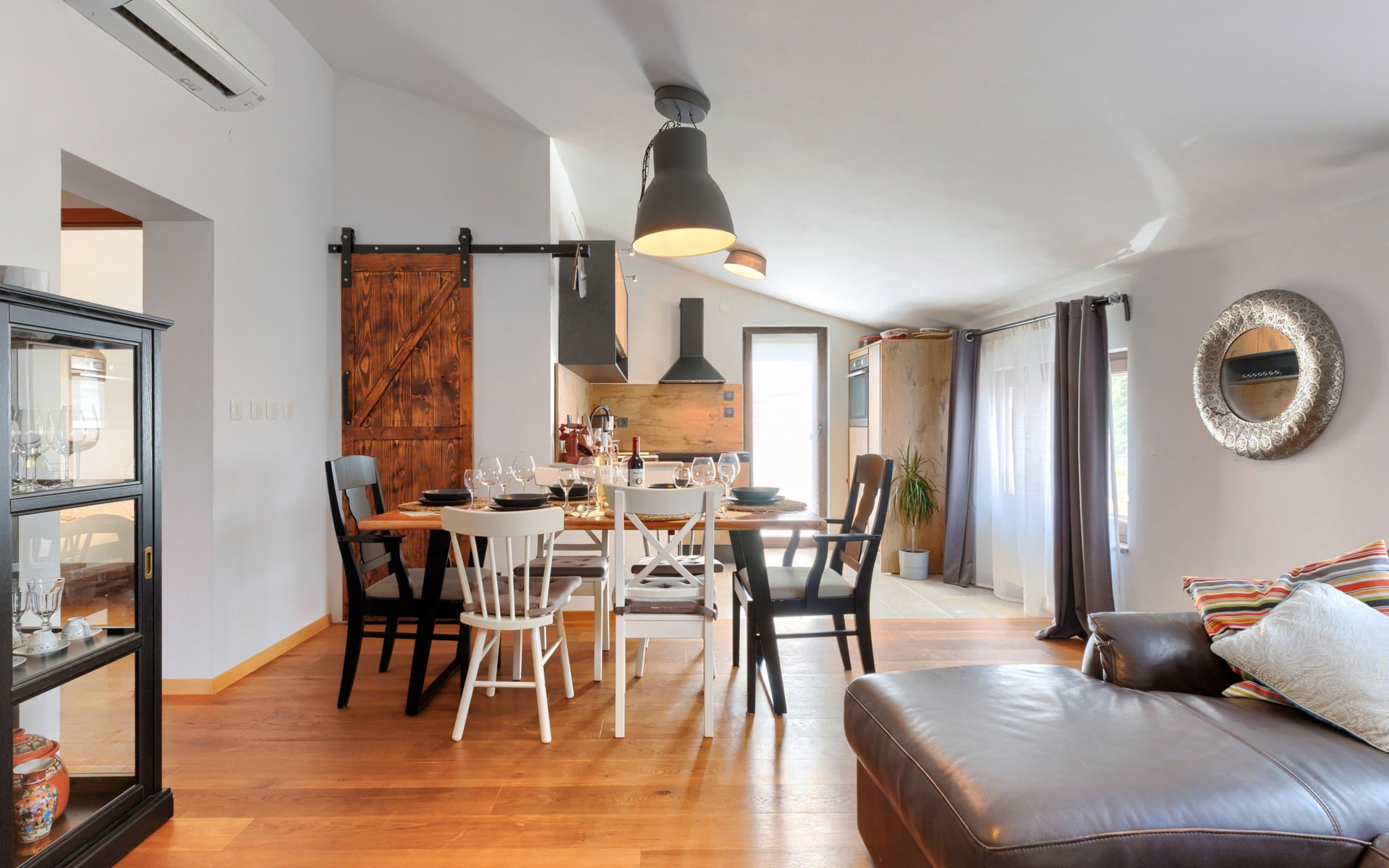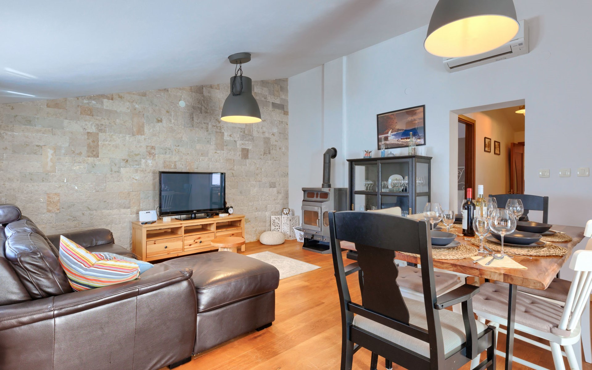 Eengezinswoning "Barbolan", van 2 verdiepingen. 3 km van het centrum van Medulin, rustige, zonnige ligging, direct aan de bosrand, 1.6 km van zee, 2 km van het strand. Voor alleengebruik: terrein 600 m2 (omheind), tuin met gazon, openluchtzwembad hoekig (7 x 3 m, 140 cm diepte, seizoensgebonden beschikbaarheid: 02.Mei. - 10.Okt.). Buitendouche, terras (40 m2), tuinmeubelen, barbecue, kinderspeelplaats (schommel). In het huis: internetaansluiting, trampoline, wasmachine. Toegangsweg tot aan het huis (500 m onverharde weg). Parkeerplaats (voor 3 auto's) bij het huis op het terrein. Winkel 1 km, restaurant 1.5 km, bushalte 2.1 km, zandstrand 3.5 km kiezelstrand 2 km, rotsstrand 2 km. Manege 5 km, wandelroutes 100 m vanaf het huis, fietspad 150 m. Attracties in de buurt: Amphitheater 8 km, Nature park Kamenjak 10 km. De woning bestaat uit 2 appartementen die samen als 1 woning verhuurd worden.
