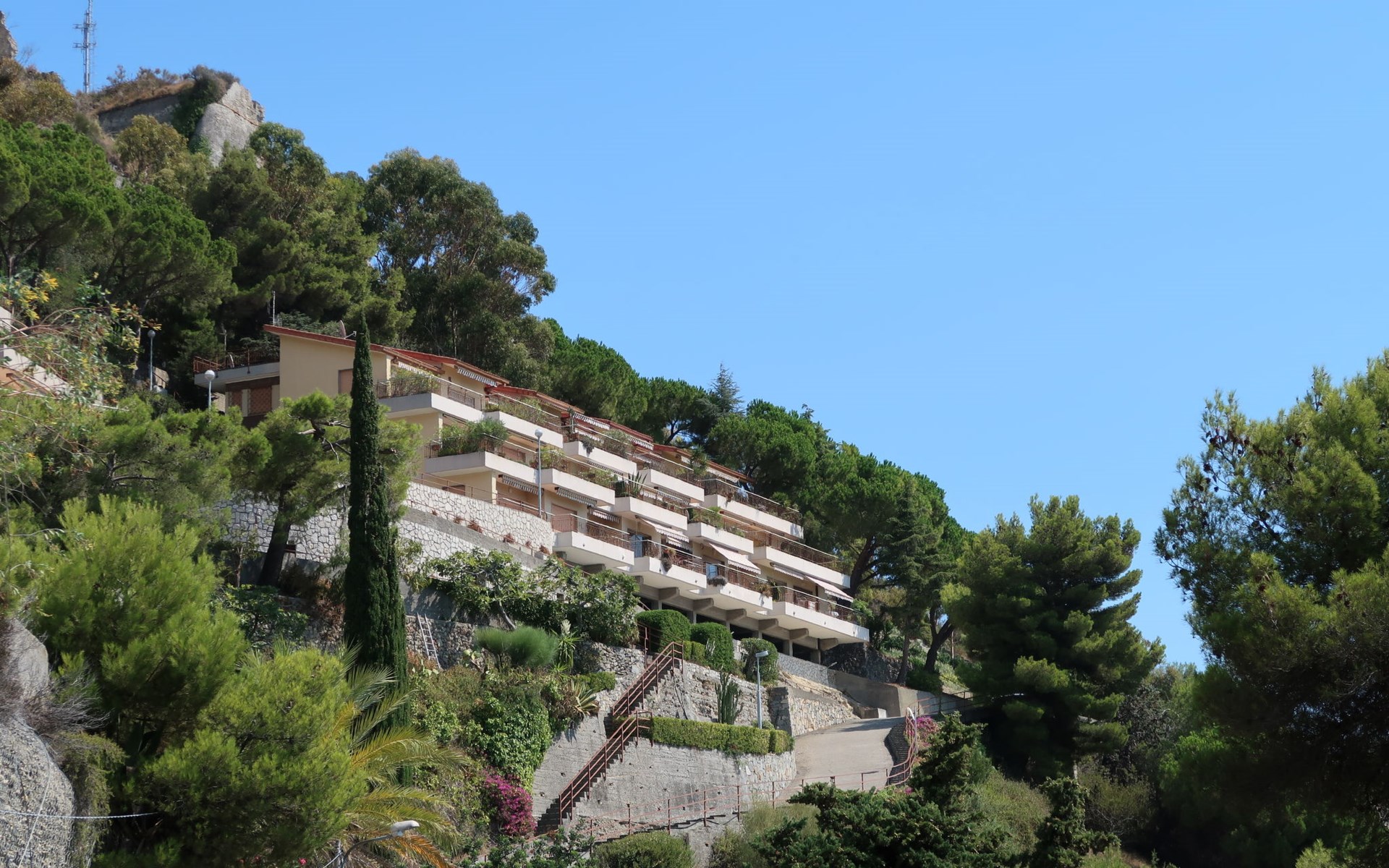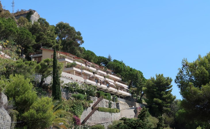 Ventimiglia Ville: Mooi residentie "Le Calandre", van 3 verdiepingen. 16 appartementen in de woning. 400 m van het centrum van Ventimiglia Alta, 3 km van het centrum van Ventimiglia, zonnige ligging, 600 m van zee. Toegangsweg tot aan het huis. Trappenweg (5 treden) naar het huis. Parkeerplaats bij het huis. Levensmiddelenwinkel 400 m, supermarkt 3 km, bar 500 m, bakkerij 400 m, bushalte 100 m, treinstation "Ventimiglia" 3 km, zandstrand "Calandre" 600 m kiezelstrand 500 m. Attracties in de buurt: Hanbury Garden 5 km, Balzi Rossi 8 km, Sanremo 20 km, Mentone 3 km. Auto noodzakelijk.
