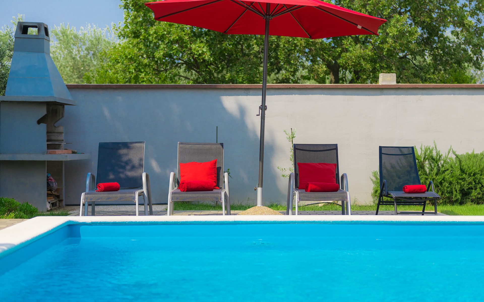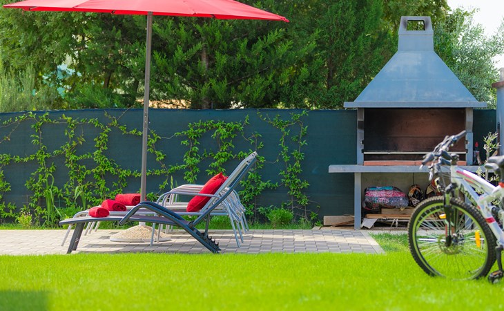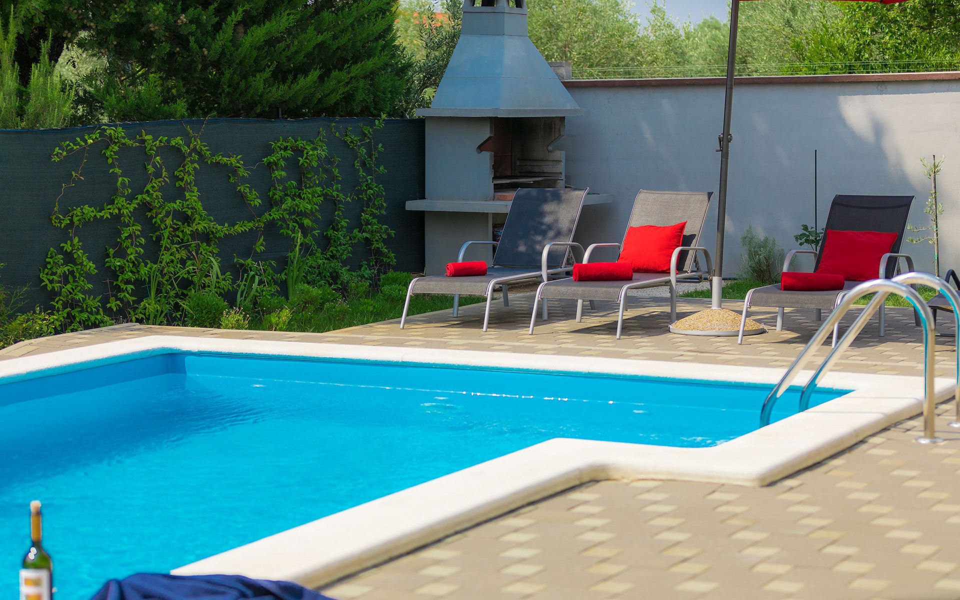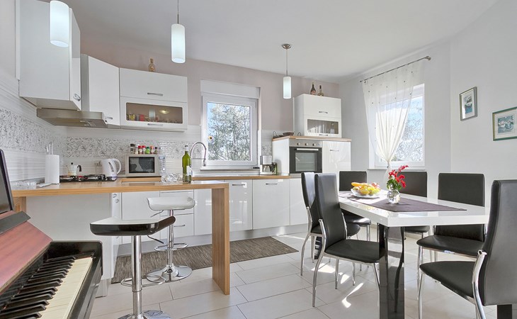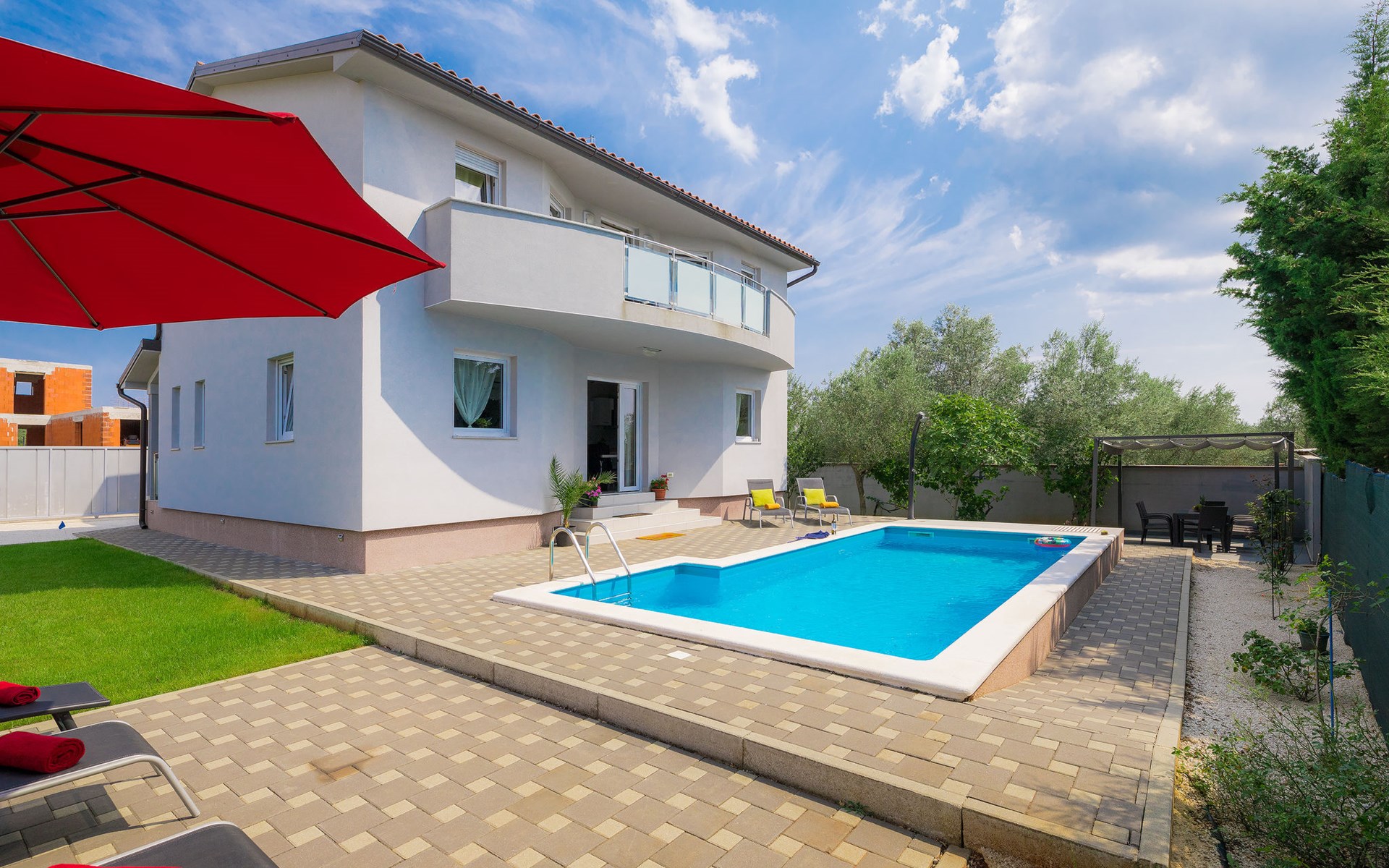 Majmajola 4 km van Vodnjan: Mooi eengezinswoning "Amber", van 2 verdiepingen. Rustige, zonnige ligging, 8 km van zee. Voor alleengebruik: terrein 570 m2 (omheind), tuin, openluchtzwembad hoekig (25 m2, 140 cm diepte, seizoensgebonden beschikbaarheid: 27.Apr. - 28.Sep.). Terras, barbecue (schommel). In het huis: internetaansluiting, wasmachine. Parkeerplaats bij het huis op het terrein. Winkel 4 km, restaurant 4 km, bushalte 3.8 km, kiezelstrand 8 km. Golfterrein (18 holes) 15 km, manege 15 km, wandelroutes, vanaf het huis, fietspad 50 m. De eigenaar accepteert geen jeugdgroepen.