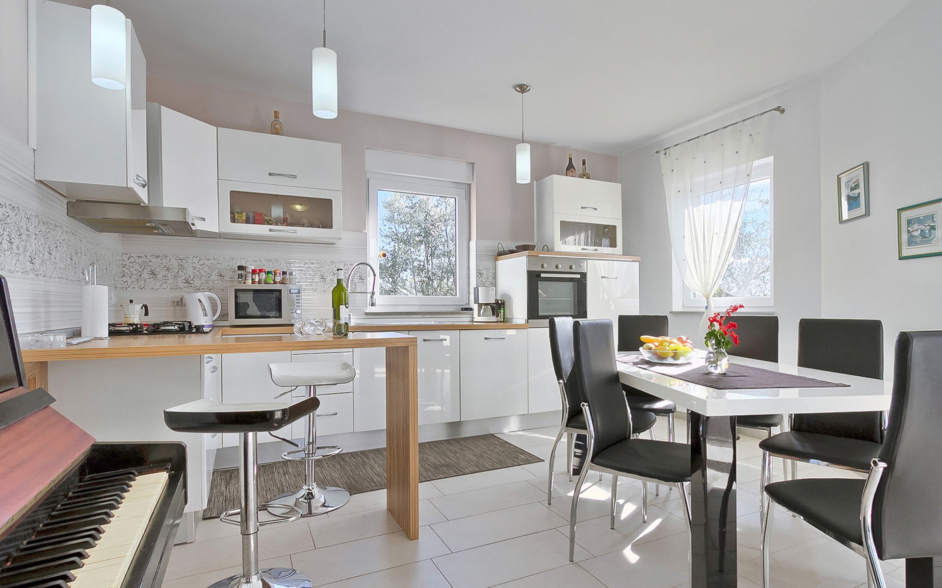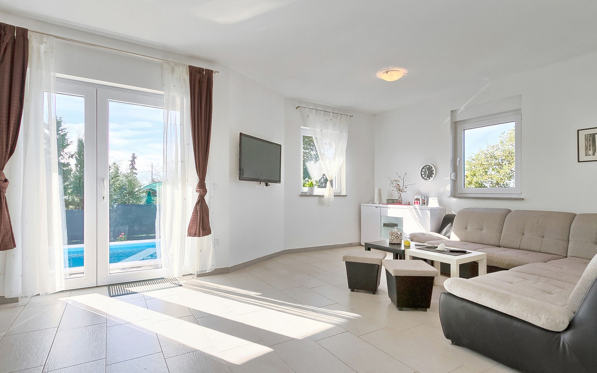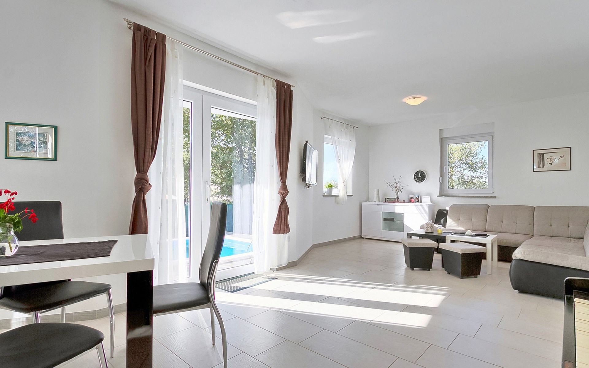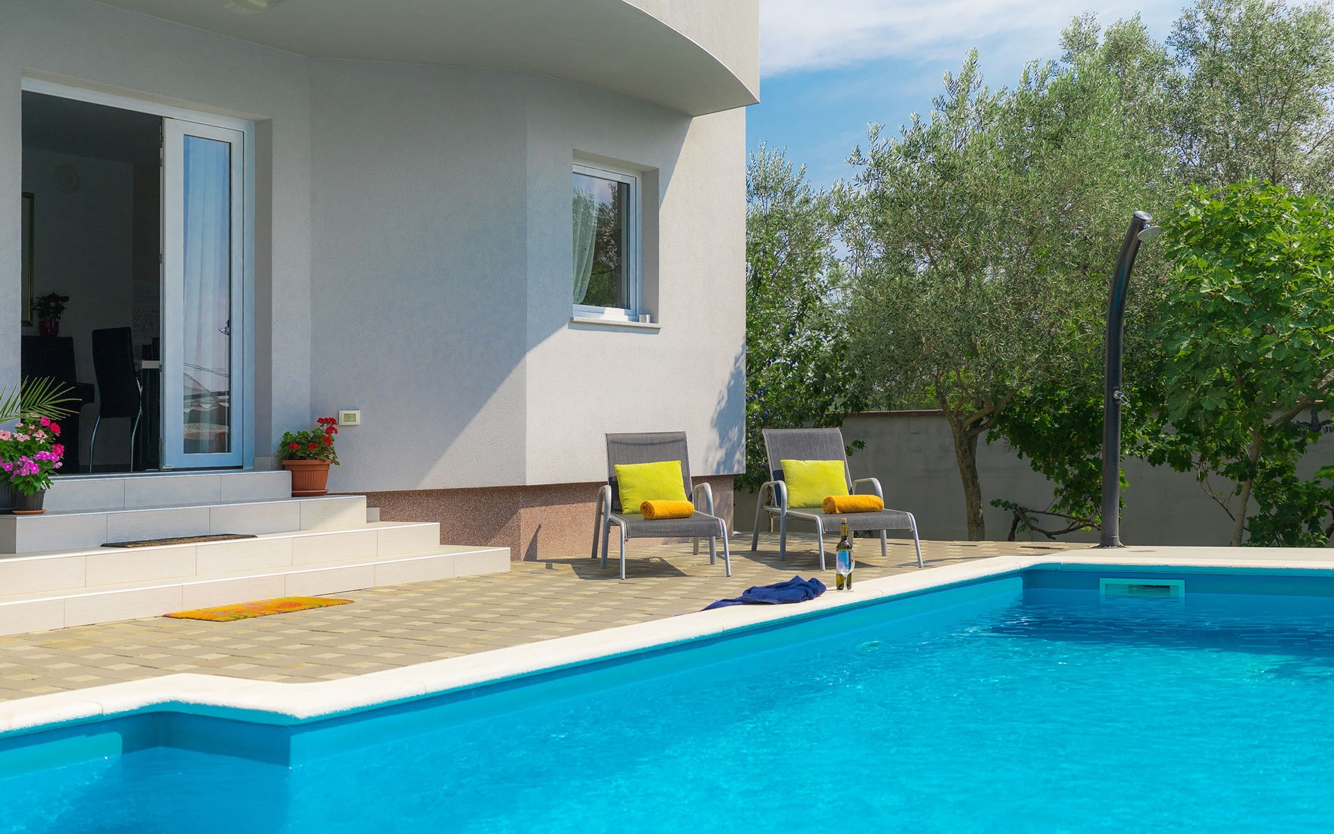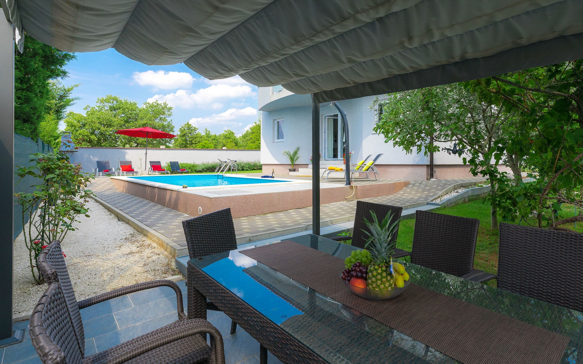 Majmajola 4 km van Vodnjan: Mooi eengezinswoning "Amber", van 2 verdiepingen. Rustige, zonnige ligging, 8 km van zee. Voor alleengebruik: terrein 570 m2 (omheind), tuin, openluchtzwembad hoekig (25 m2, 140 cm diepte, seizoensgebonden beschikbaarheid: 27.Apr. - 28.Sep.). Terras, barbecue (schommel). In het huis: internetaansluiting, wasmachine. Parkeerplaats bij het huis op het terrein. Winkel 4 km, restaurant 4 km, bushalte 3.8 km, kiezelstrand 8 km. Golfterrein (18 holes) 15 km, manege 15 km, wandelroutes, vanaf het huis, fietspad 50 m. De eigenaar accepteert geen jeugdgroepen.