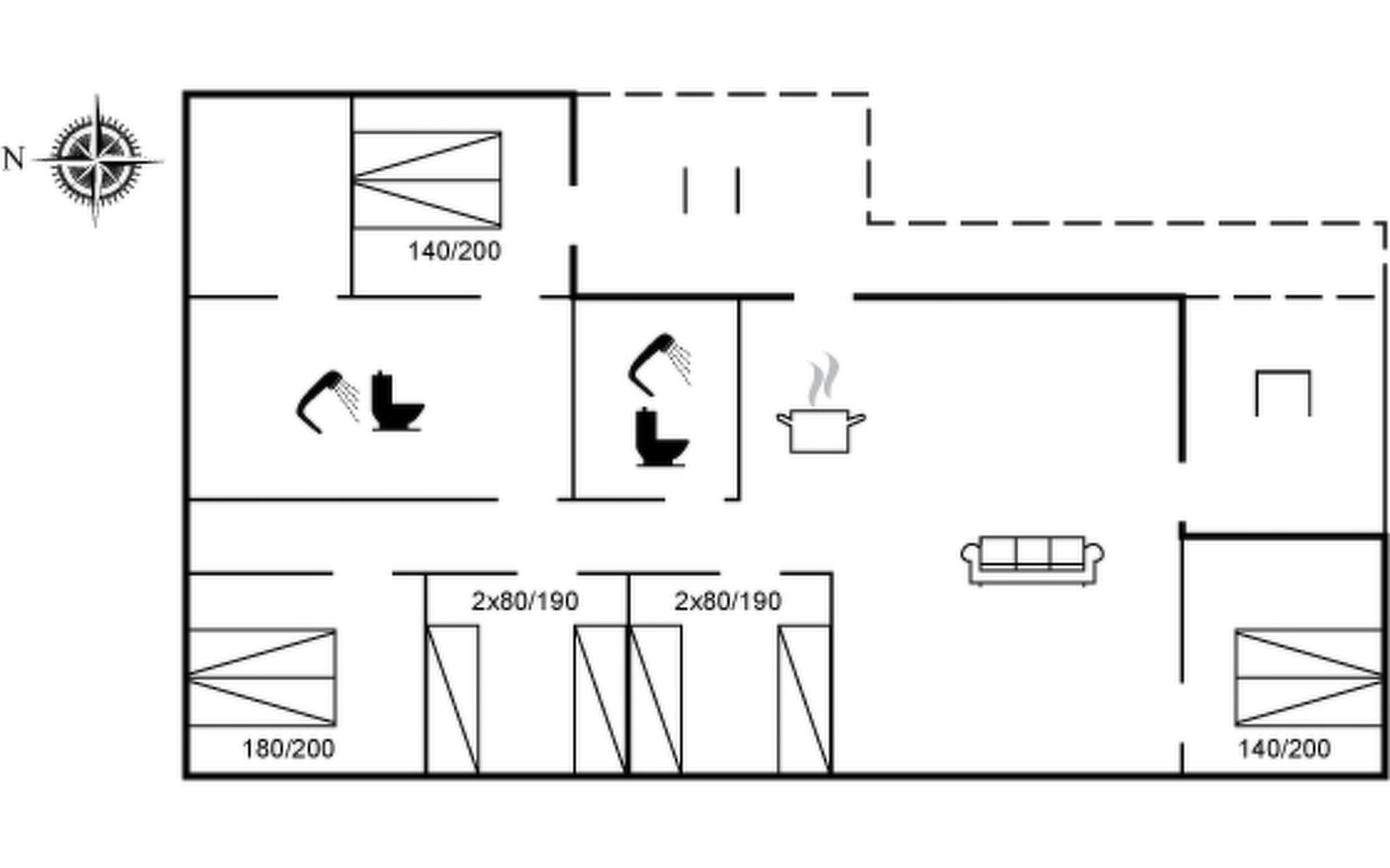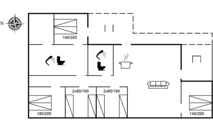 Eengezinswoning, bouwjaar 1974. 200 m van zee. Voor alleengebruik: wild terrein 1.200 m2. Kinderspeelplaats (schommel). In het huis: sauna, wasmachine, droger. Parkeerplaats bij het huis. Levensmiddelenwinkel 900 m. De eigenaar accepteert geen jeugdgroepen.
