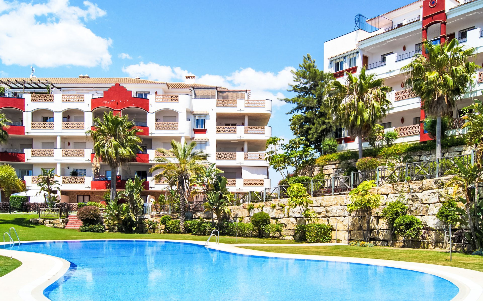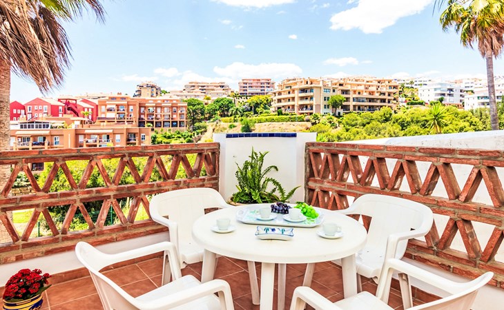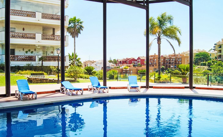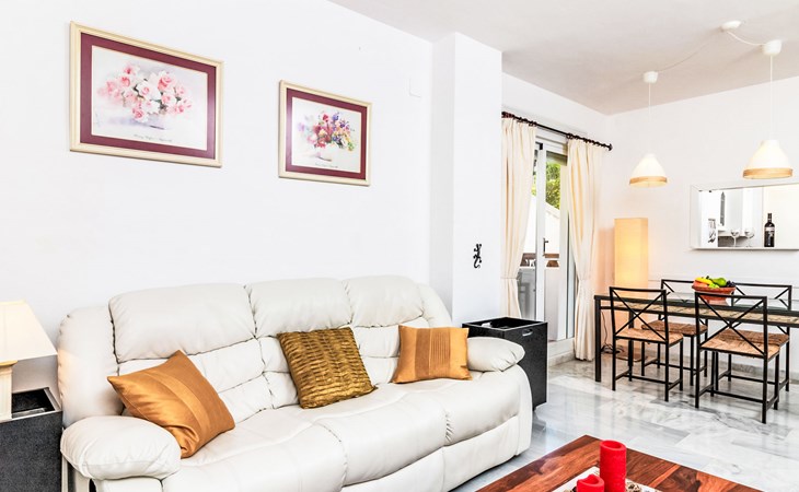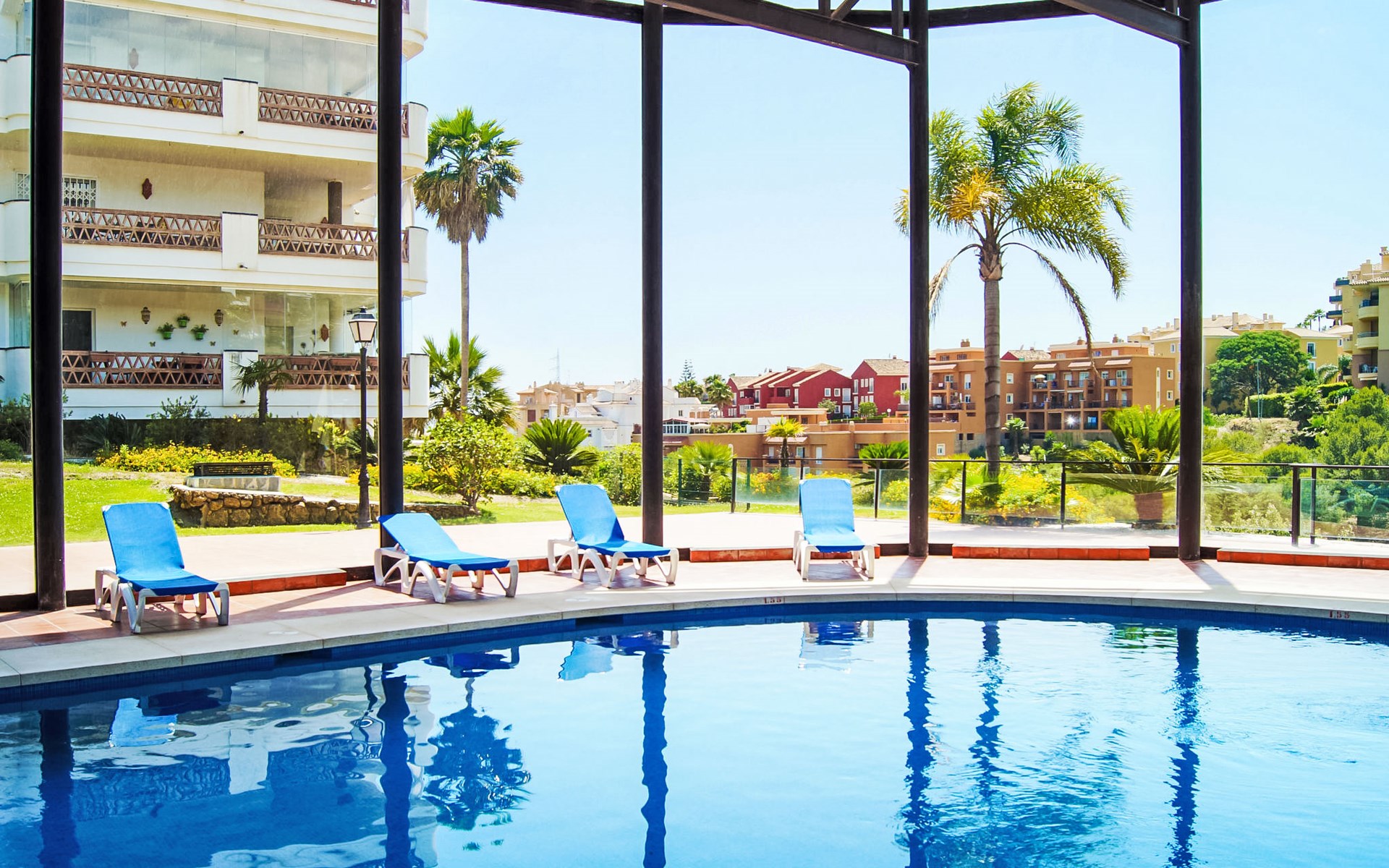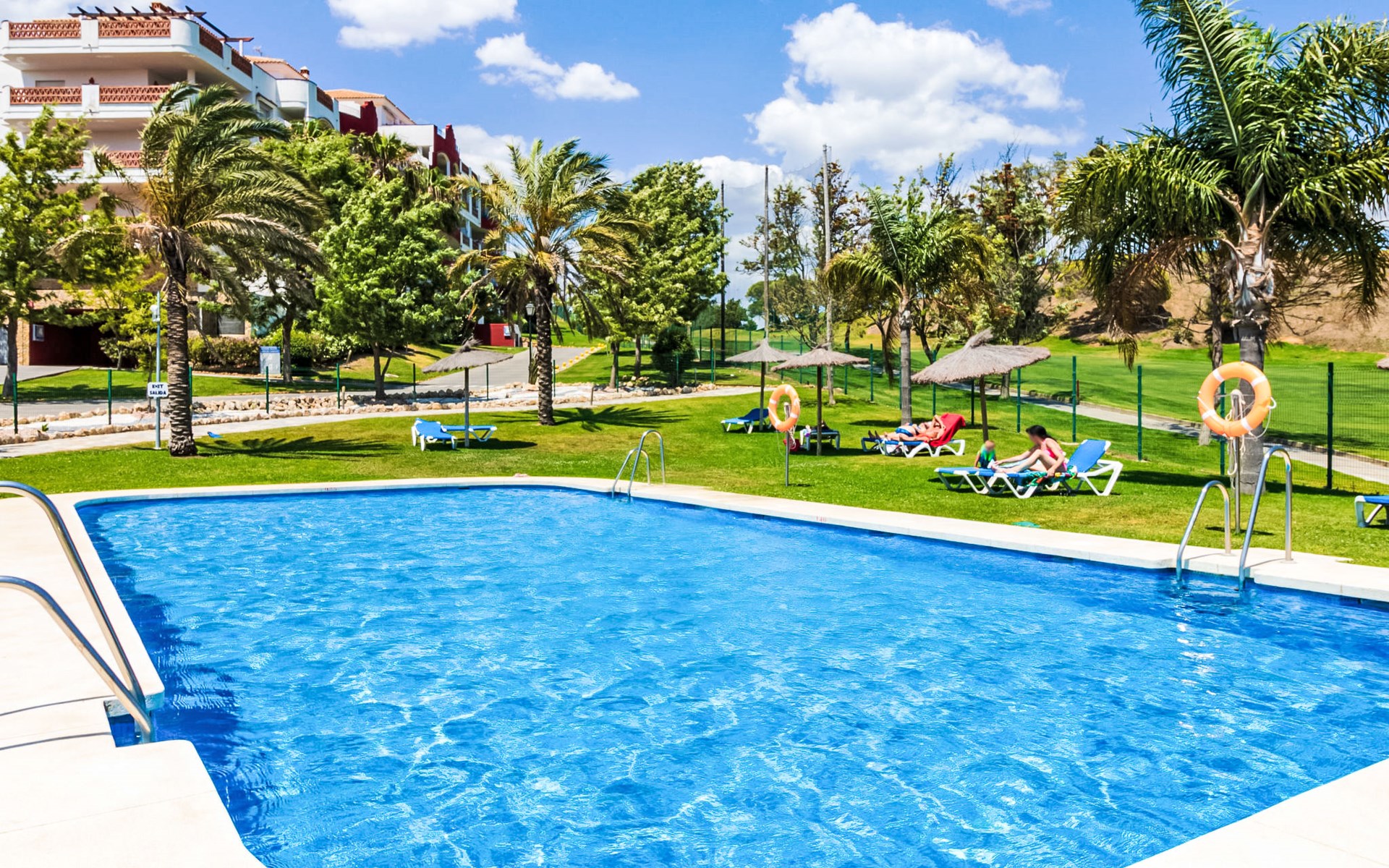 Riviera del sol: Moderne, comfortabel flatgebouw "Island of Riviera Golf", bouwjaar 2008. 800 m van het centrum van Riviera del sol, 17 km van het centrum van Marbella, buiten de plaats, 12 km van het centrum van Fuengirola, zonnige, verhoogde ligging, 1.5 km van zee, aan een doodlopende weg, aan de golfbaan. Voor medegebruik: terrein (omheind), tuin, openluchtzwembad verwarmd (15 x 10 m, seizoensgebonden beschikbaarheid: 01.Jan. - 31.Dec.). Douche/WC bij het zwembad, kinderzwembad, tennisbaan, verlichte tennisbaan. In het complex: lift. Gemeenschappelijke garage. Winkel 800 m, supermarkt 1.8 km, bushalte "Golf Miraflores" 600 m, zandstrand "Cabopino" 5 km, stenenstrand 1.5 km. Jachthaven 5 km, golfterrein (18 holes) 750 m.