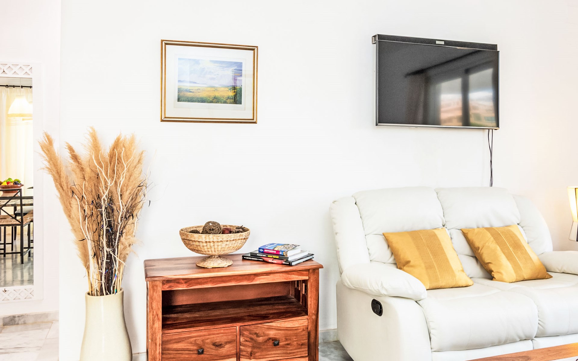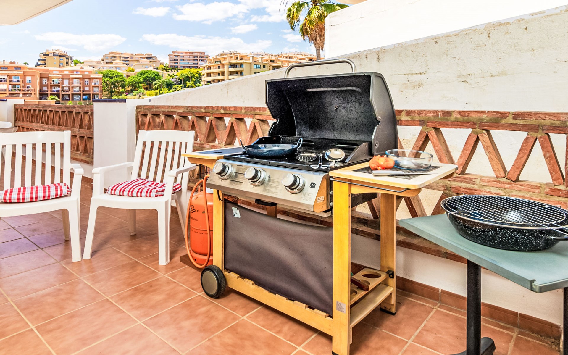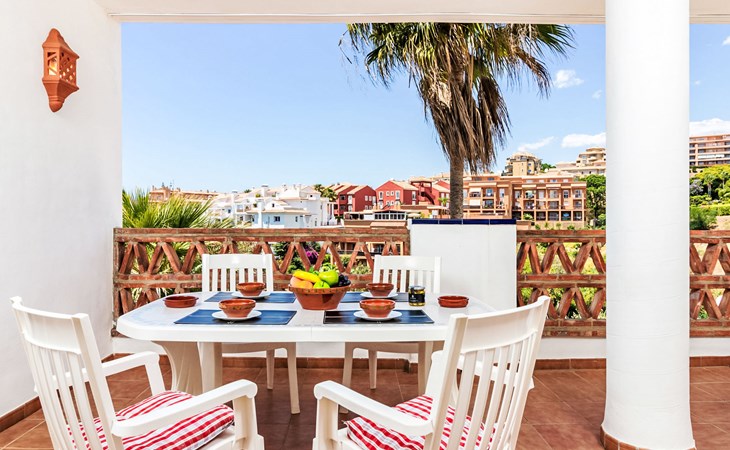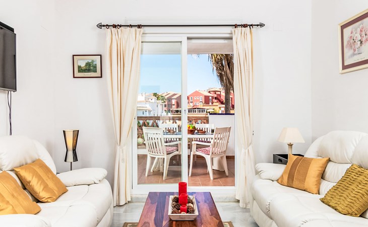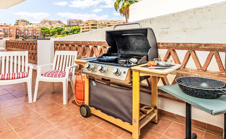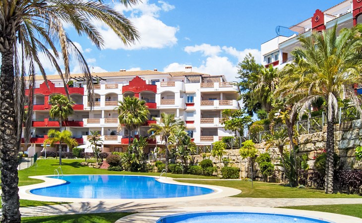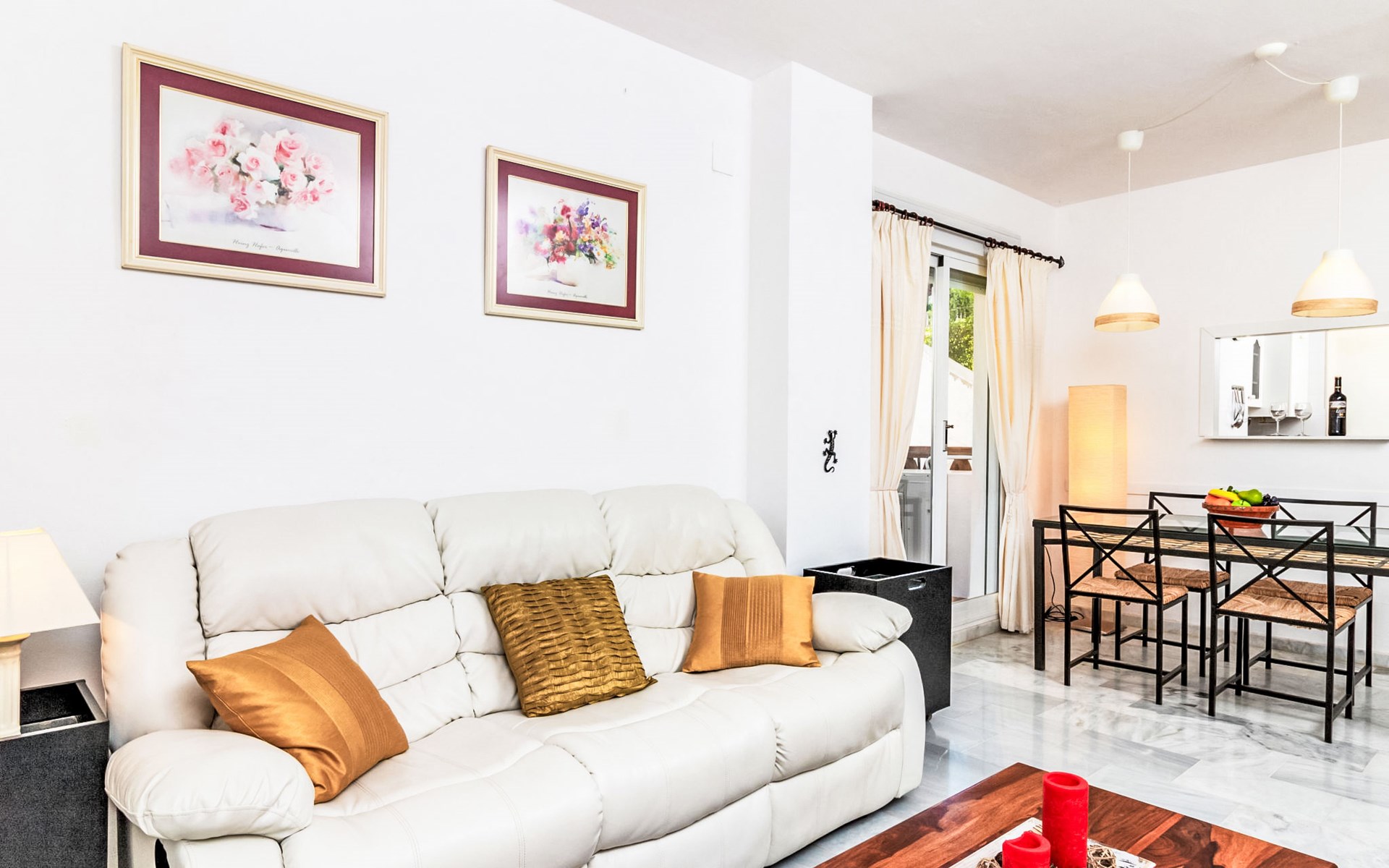 Riviera del sol: Moderne, comfortabel flatgebouw "Island of Riviera Golf", bouwjaar 2008. 800 m van het centrum van Riviera del sol, 17 km van het centrum van Marbella, buiten de plaats, 12 km van het centrum van Fuengirola, zonnige, verhoogde ligging, 1.5 km van zee, aan een doodlopende weg, aan de golfbaan. Voor medegebruik: terrein (omheind), tuin, openluchtzwembad verwarmd (15 x 10 m, seizoensgebonden beschikbaarheid: 01.Jan. - 31.Dec.). Douche/WC bij het zwembad, kinderzwembad, tennisbaan, verlichte tennisbaan. In het complex: lift. Gemeenschappelijke garage. Winkel 800 m, supermarkt 1.8 km, bushalte "Golf Miraflores" 600 m, zandstrand "Cabopino" 5 km, stenenstrand 1.5 km. Jachthaven 5 km, golfterrein (18 holes) 750 m.