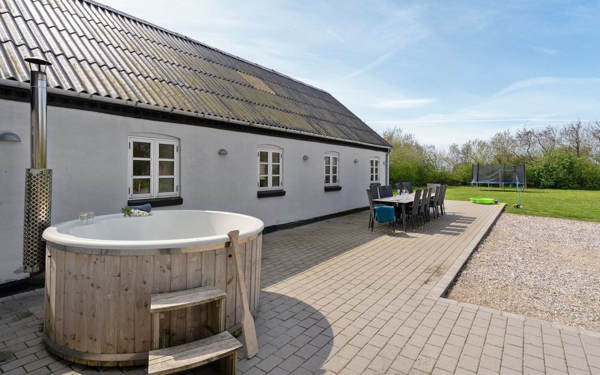 Huis, bouwjaar 1900. Voor alleengebruik: wild terrein 5.000 m2. Terras (75 m2), kinderspeelplaats (schommel). In het huis: tafelvoetbal, trampoline, wasmachine, droger. Parkeerplaats bij het huis. Levensmiddelenwinkel 3 km. Golfterrein 15 km.