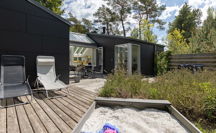 Eengezinswoning, bouwjaar 2007. 150 m van zee. Voor alleengebruik: wild terrein 990 m2. Terras (50 m2), kinderspeelplaats (schommel). In het huis: wasmachine, droger. Parkeerplaats bij het huis. Levensmiddelenwinkel 900 m.