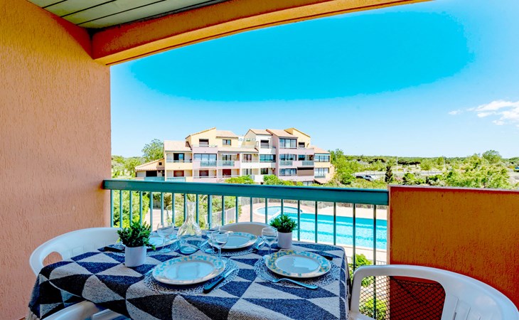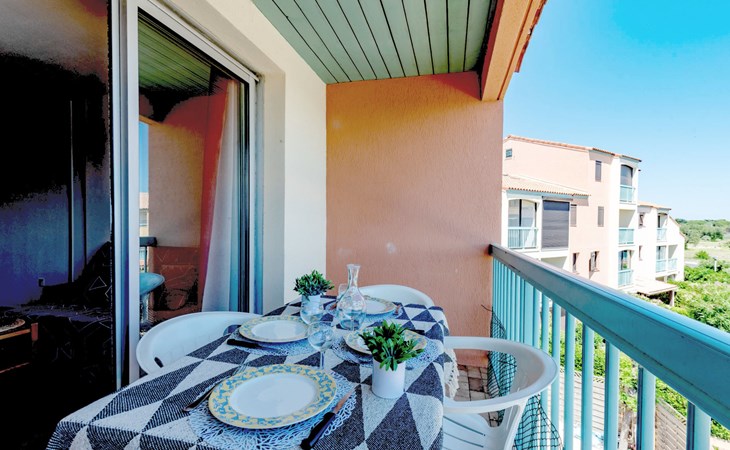 Residentie "Les Barcarelles", van 3 verdiepingen. Aan de rand van de plaats, 6 km van het centrum van Barcares, 1.5 km van zee, 50 m van het meer, 1.5 km van het strand. Voor medegebruik: openluchtzwembad (18 x 8 m, seizoensgebonden beschikbaarheid: 15.Jun. - 15.Sep.). In het complex: parkeerplaats. Winkelcentrum 2 km, bushalte "La Coudalère" 200 m. Attracties in de buurt: Aqualand Port Leucate 7 km, Réserve Africaine de Sigean 41 km, parcours aventure 7 km, cinéma 7 km, site des dosses 7 km. Bekende meren kunnen gemakkelijk worden bereikt: Lac de villeneuve de la Raho 34 km, Lac de leucate ou de salses 11 km. Wandelgebied Sentier du guetteur 8 km, la forteresse de salses 15 km, Sentier du littoral Collioure 40 km.