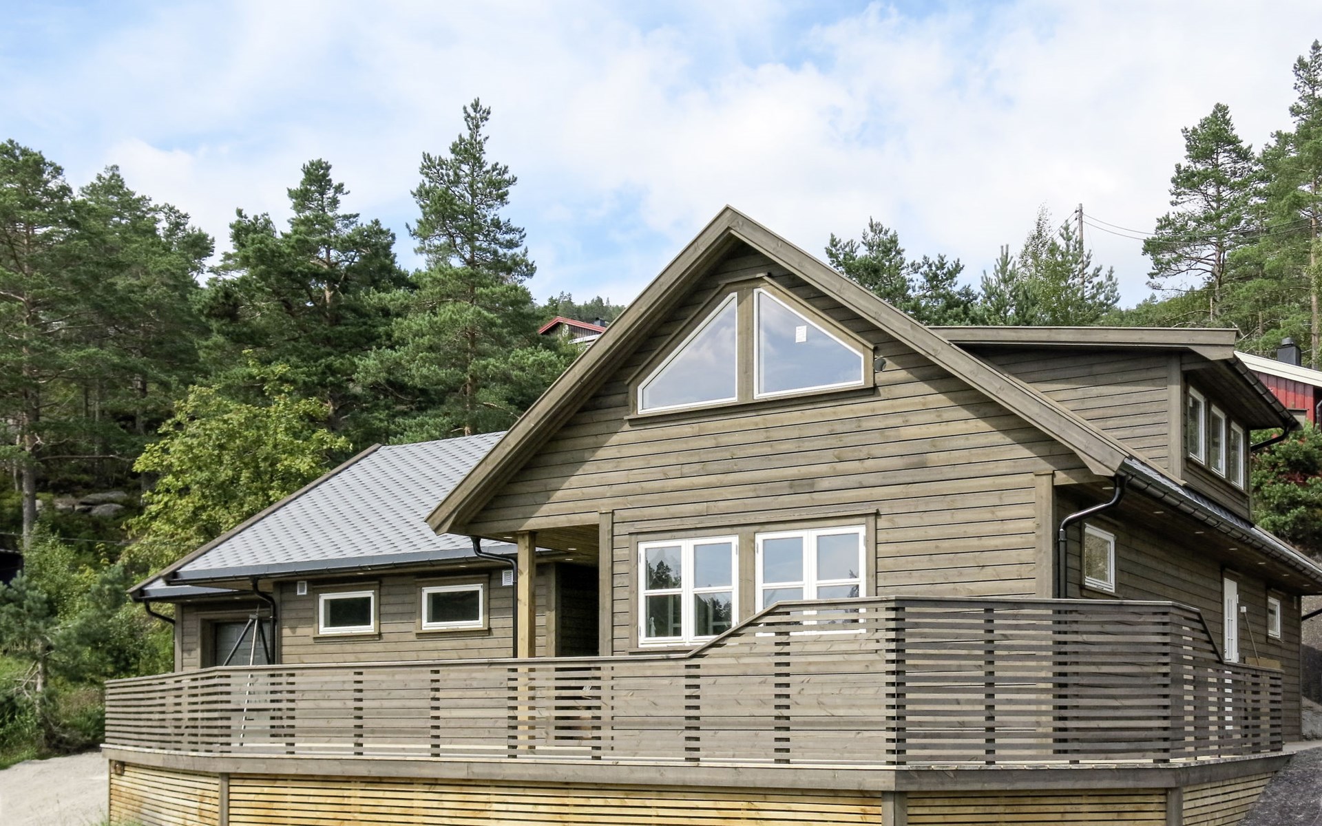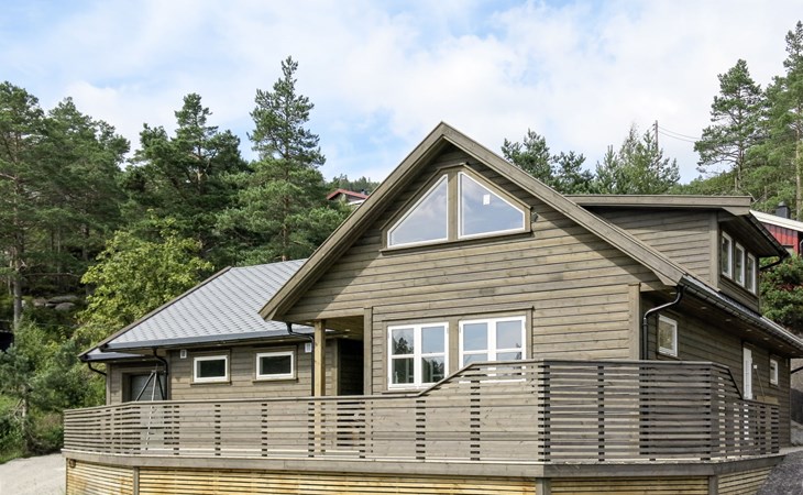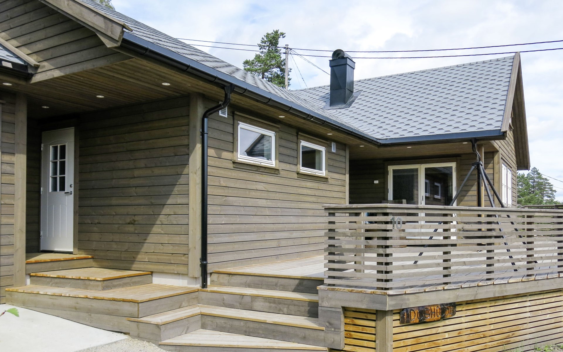 Moderne, gezellige, comfortabele houten huis "Doghouse", 360 m boven zeeniveau, bouwjaar 2019, omgeven door bomen. 12 km van het centrum van Åseral, 45 km van het centrum van Evje, 85 km van het centrum van Kristiansand, in het district Eikerapen, 250 m van het meer, te midden van groen. Voor alleengebruik: wild terrein 400 m2. 60 m lange rommelige toegangsweg. Trappenweg (3 treden) naar het huis. Parkeerplaats (voor 2 auto's) bij het huis. Winkel 12 km, bushalte "Eikerapen" 160 m, veerboot "Kristiansand" 83 km, baai 2 km. Midgetgolf 5 km, kinderspeelplaats 5 km, Vismogelijkheden 2 km.
