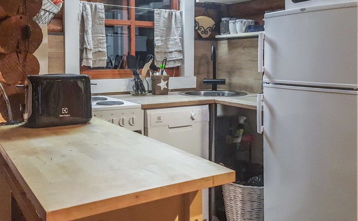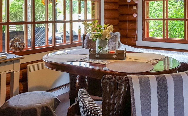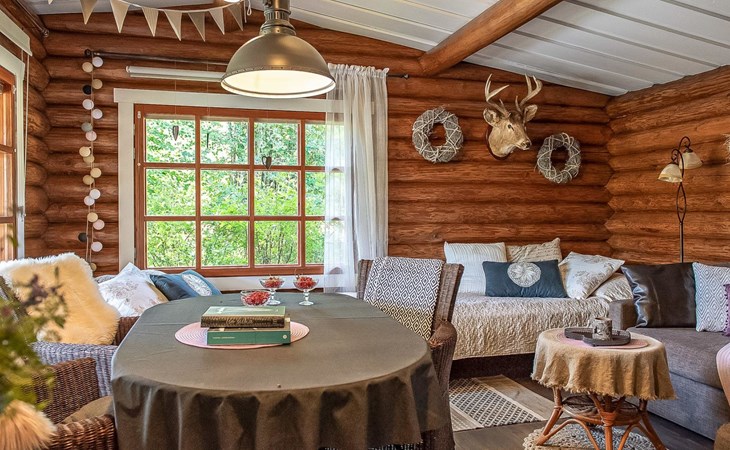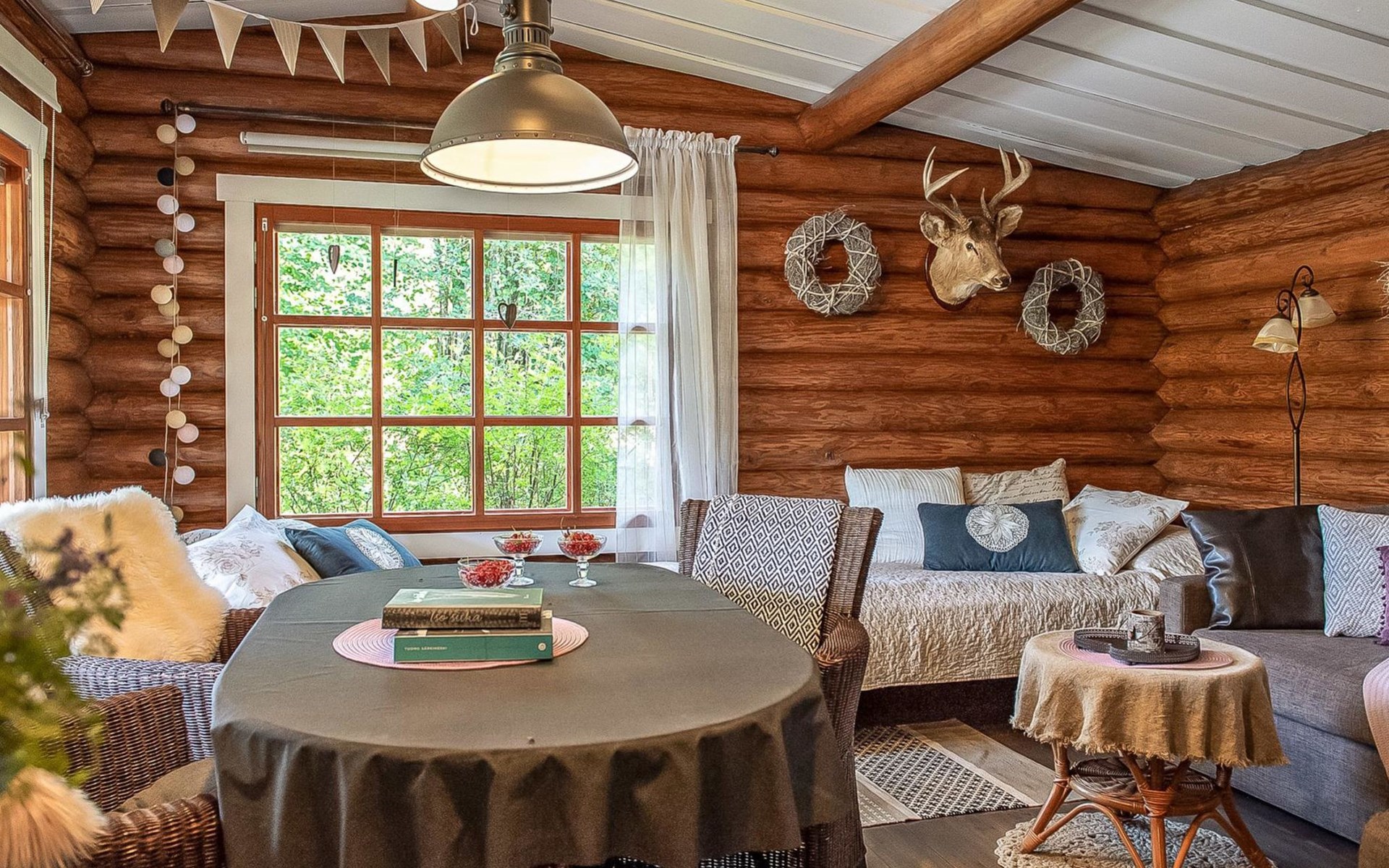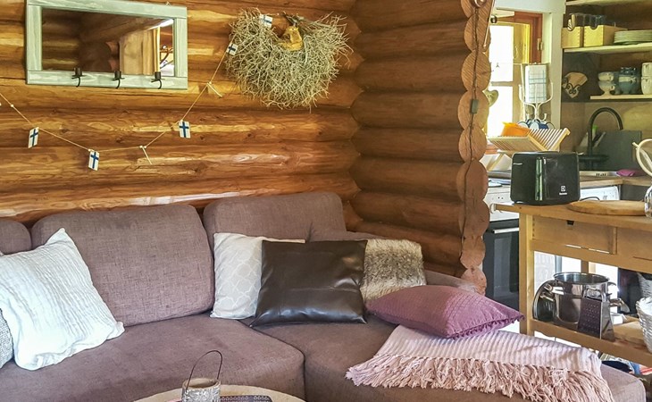 Log cabin 1978, living room/kitchen with 2 beds + convertible sofabed, dressing room, sauna, open veranda. Note! Only 1 small pet allowed. No big dogs.