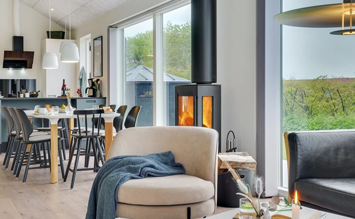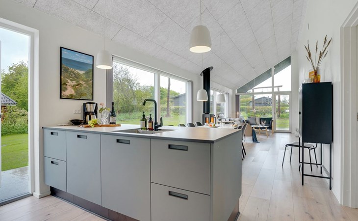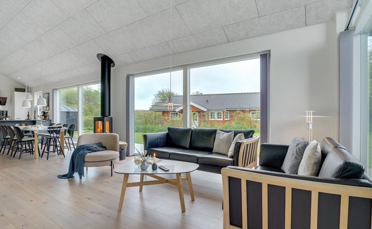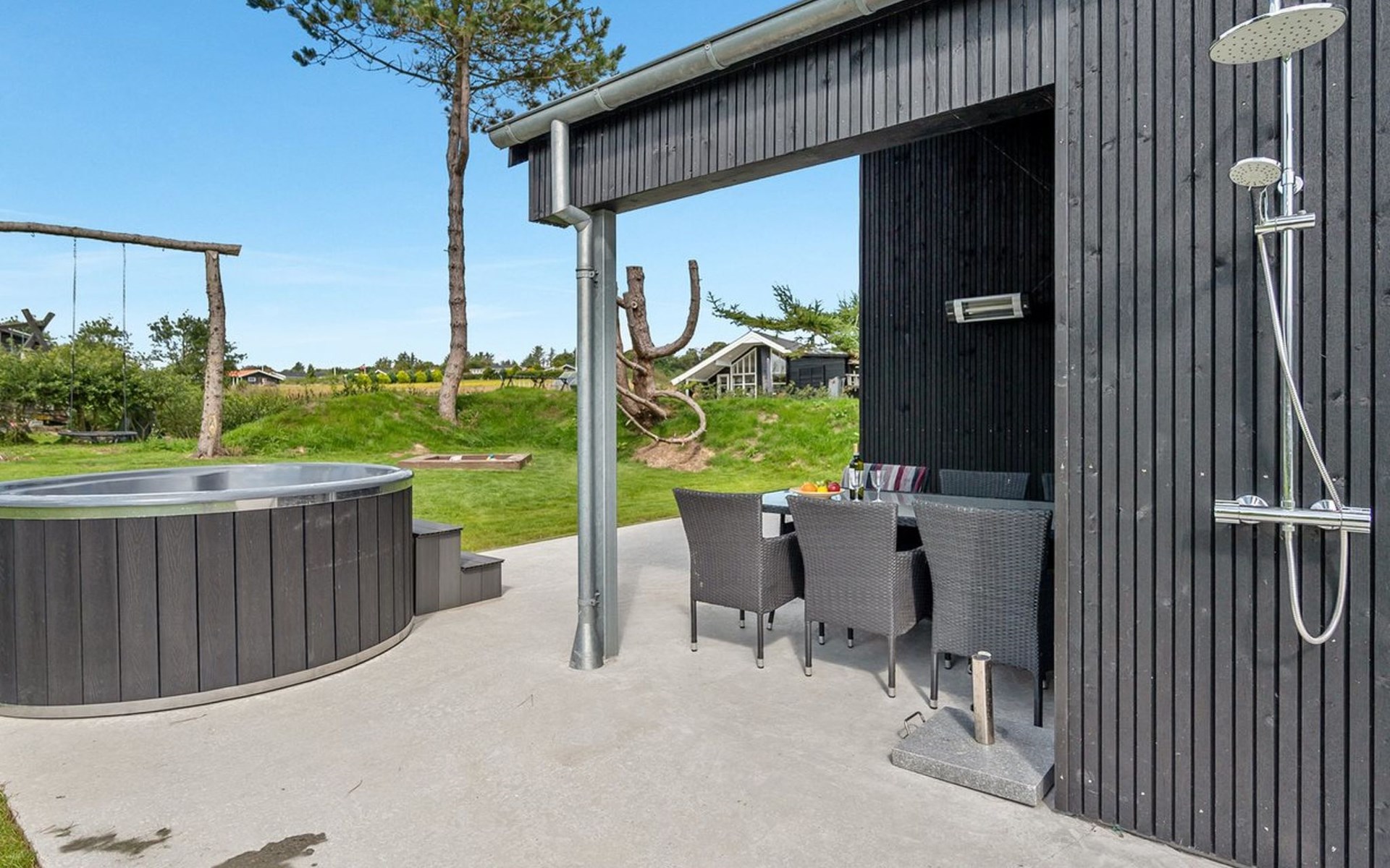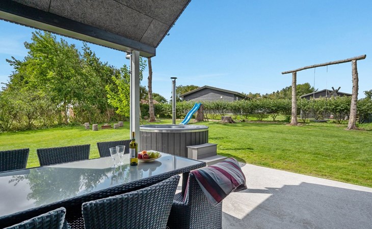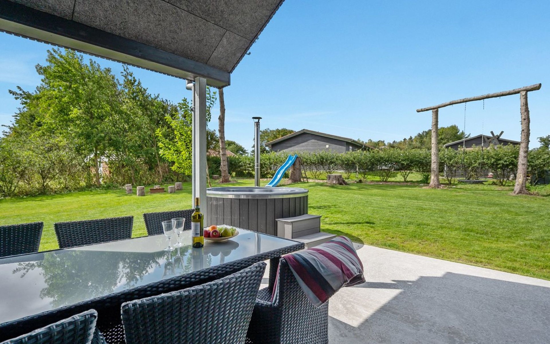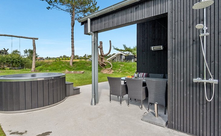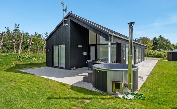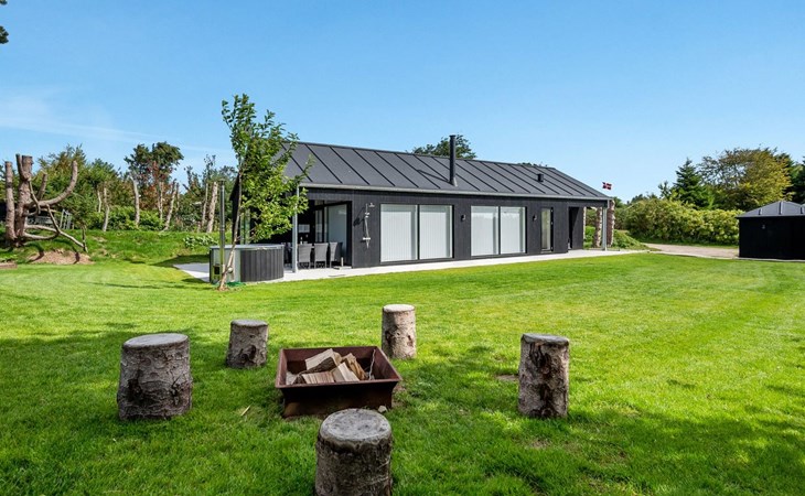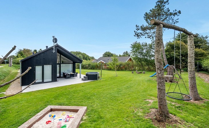 Eengezinswoning, bouwjaar 2021. Voor alleengebruik: wild terrein 1.070 m2. Buitendouche, terras (75 m2), kinderspeelplaats (glijbaan, schommel). In het huis: wasmachine, droger. Parkeerplaats bij het huis. Oplaadstation. Levensmiddelenwinkel 1.5 km. Golfterrein 1.5 km. De eigenaar accepteert geen jeugdgroepen.