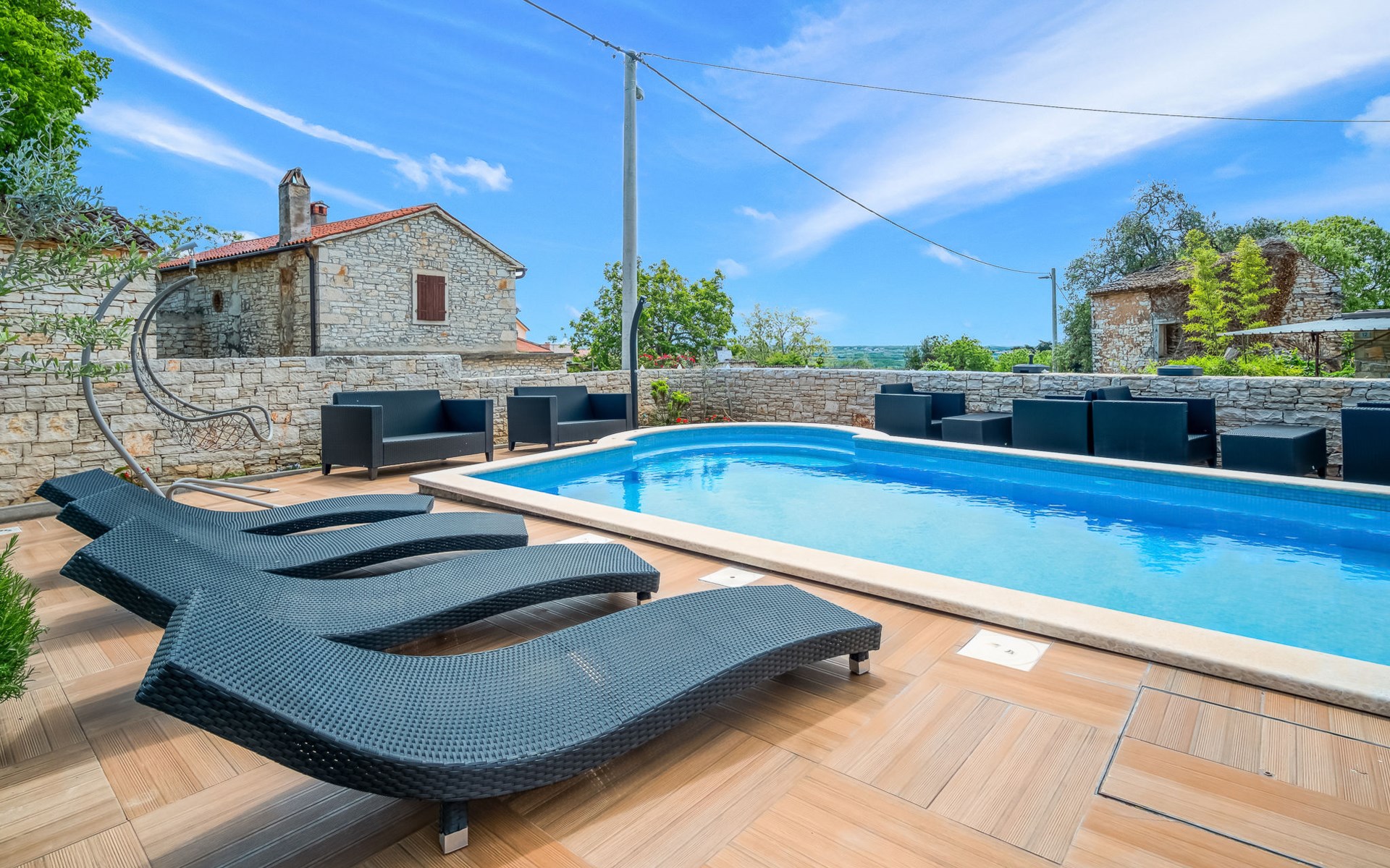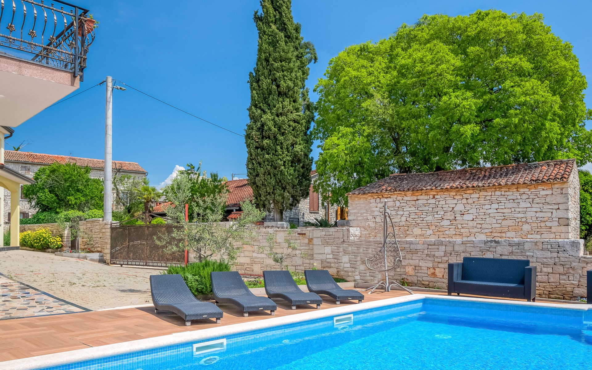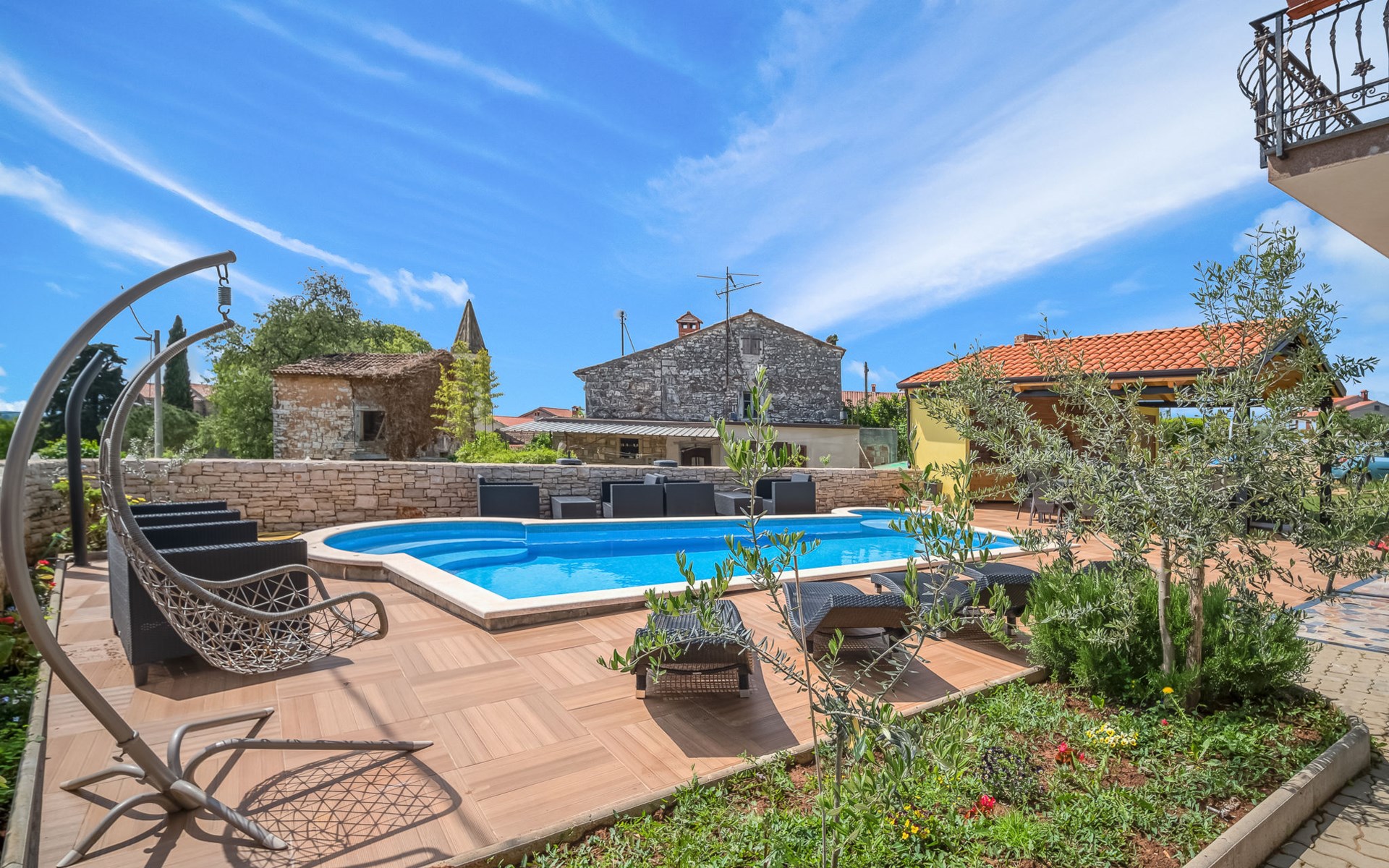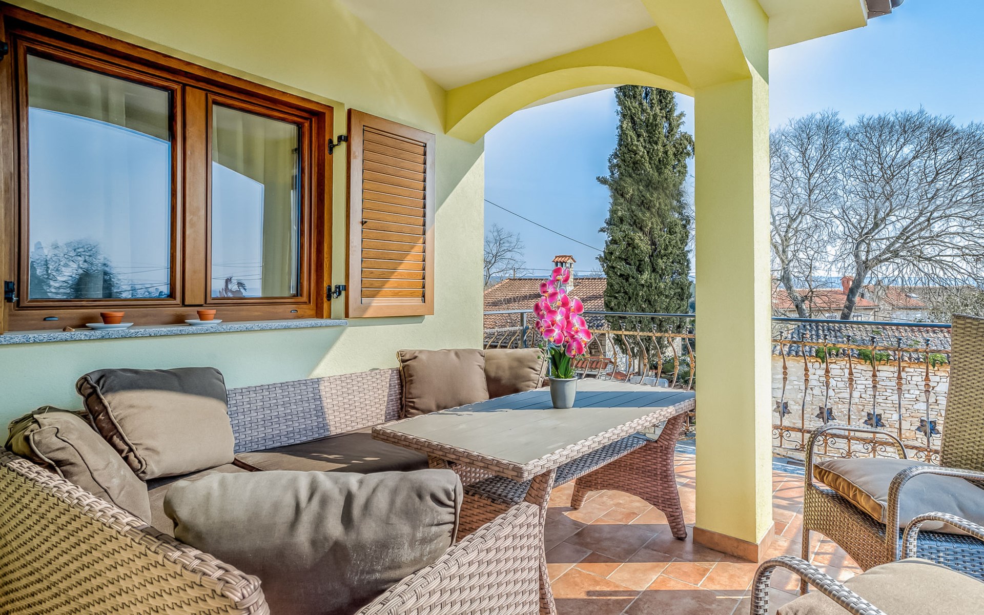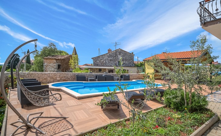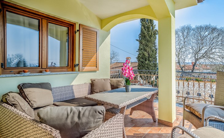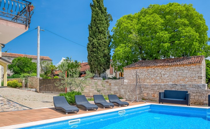 Tar 7 km van Poreč: Mooi appartementencomplex "Ulika". 200 m van het centrum van Tar, rustige, zonnige ligging, 3 km van zee, 3 km van het strand. Voor medegebruik: terrein 700 m2, tuin met gazon, openluchtzwembad (32 m2, 110 - 140 cm diepte, seizoensgebonden beschikbaarheid: 15.Apr. - 15.Okt.) met trap. Onregelmatig zwembad. Kinderzwembad, buitendouche, barbecue. In het huis: internetaansluiting, centrale verwarming. Parkeerplaats bij het huis op het terrein. Supermarkt 500 m, restaurant 50 m, bushalte 300 m, kiezelstrand 3 km, rotsstrand 3 km, strandbad 3 km. Tennis 3 km, wandelroutes 100 m vanaf het huis, fietspad 150 m. Zwembad met hydromassage.
