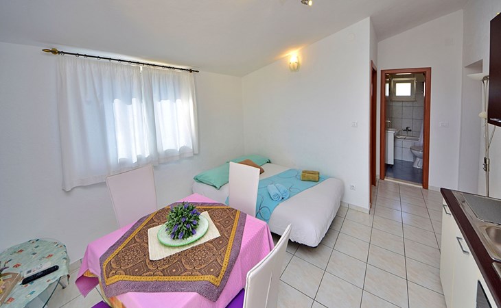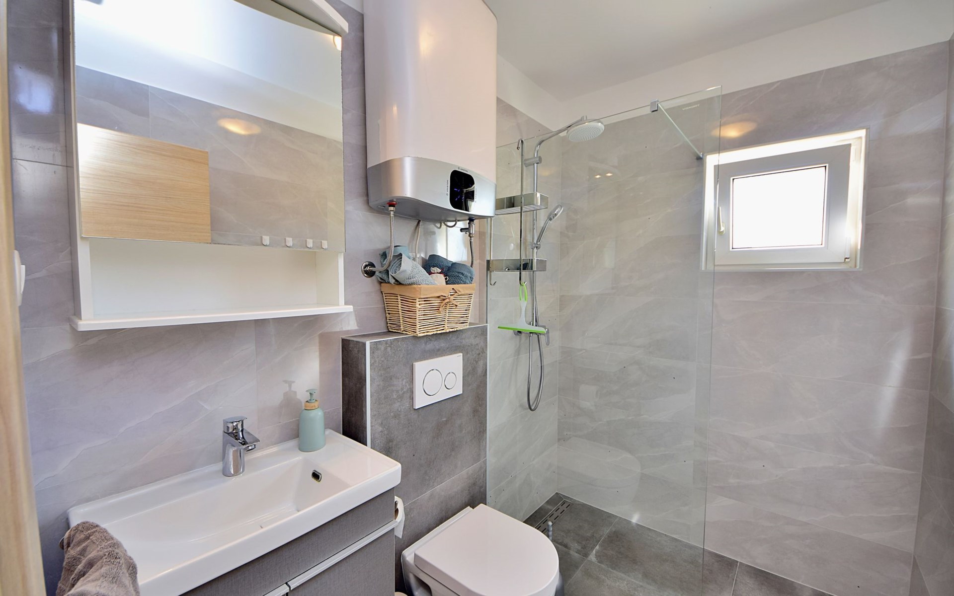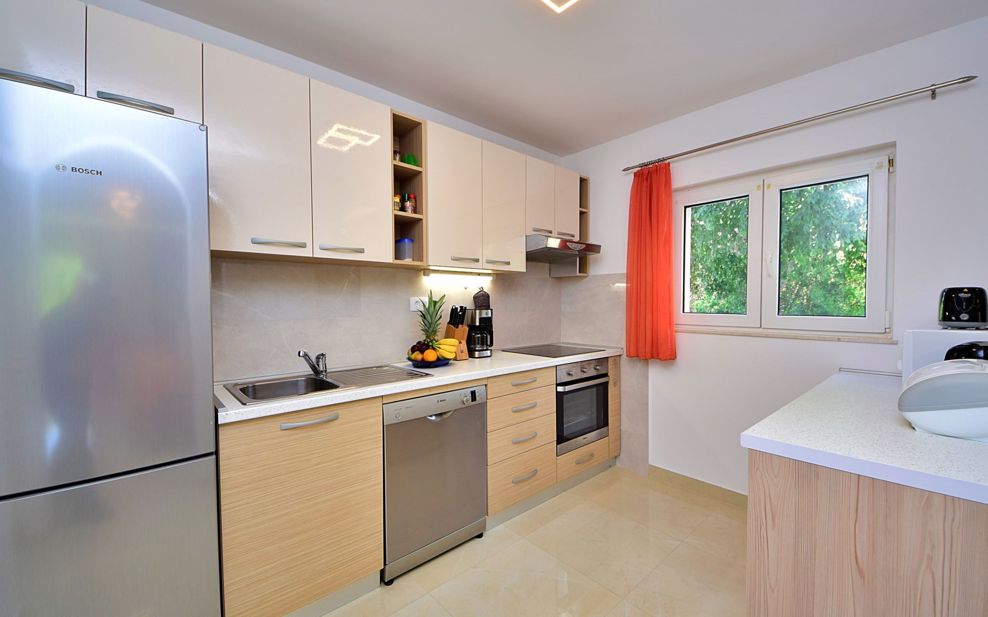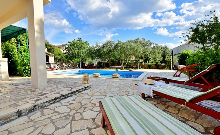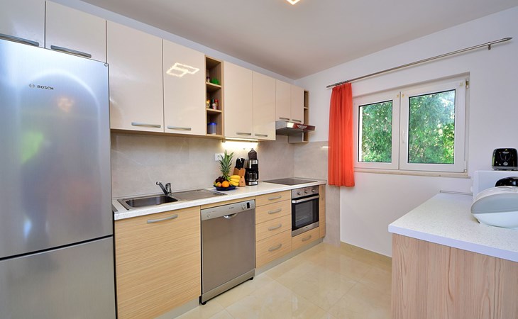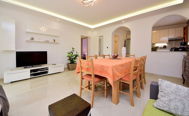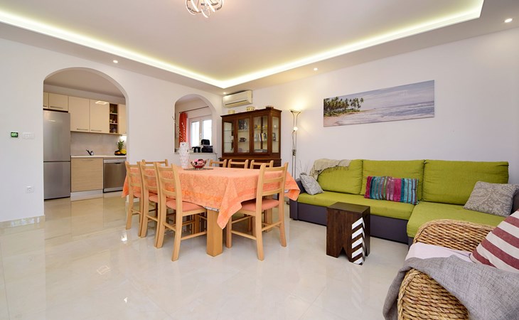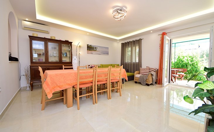 Eengezinswoning "Neka", van 2 verdiepingen. In het gehucht Ljubljeva, 4 km van het centrum van Vinišće, 25 km van het centrum van Trogir, 300 m van zee, 500 m van het strand. Voor alleengebruik: terrein 600 m2 (omheind), bomen, openluchtzwembad hoekig, verwarmd (8 x 4 m, 150 cm diepte, seizoensgebonden beschikbaarheid: 01.Jan. - 31.Dec.) met trap en zout-elektrolyse. Terras, tuinmeubelen, barbecue. In het huis: internetaansluiting, wasmachine. Parkeerplaats (voor 4 auto's) op het terrein. Oplaadstation. Winkel 4 km, bushalte "Dubrave 1" 2.3 km, kiezelstrand 500 m. De eigenaar accepteert geen jeugdgroepen. De woning bestaat uit 3 appartementen die samen als 1 woning verhuurd worden: een appartement op de begane grond en 2 appartementen op de eerste verdieping. Openluchtzwembad verwarmd (extra).