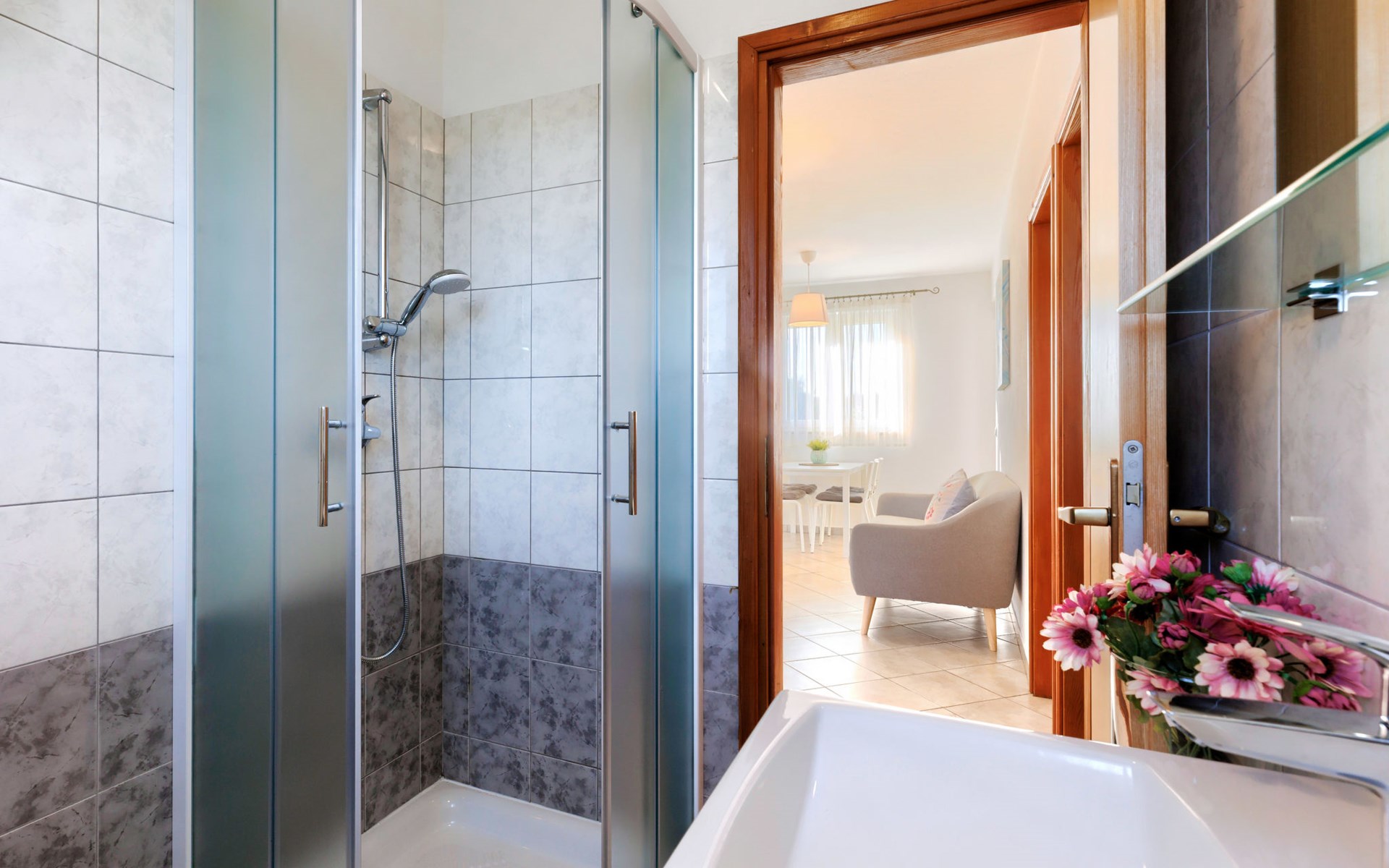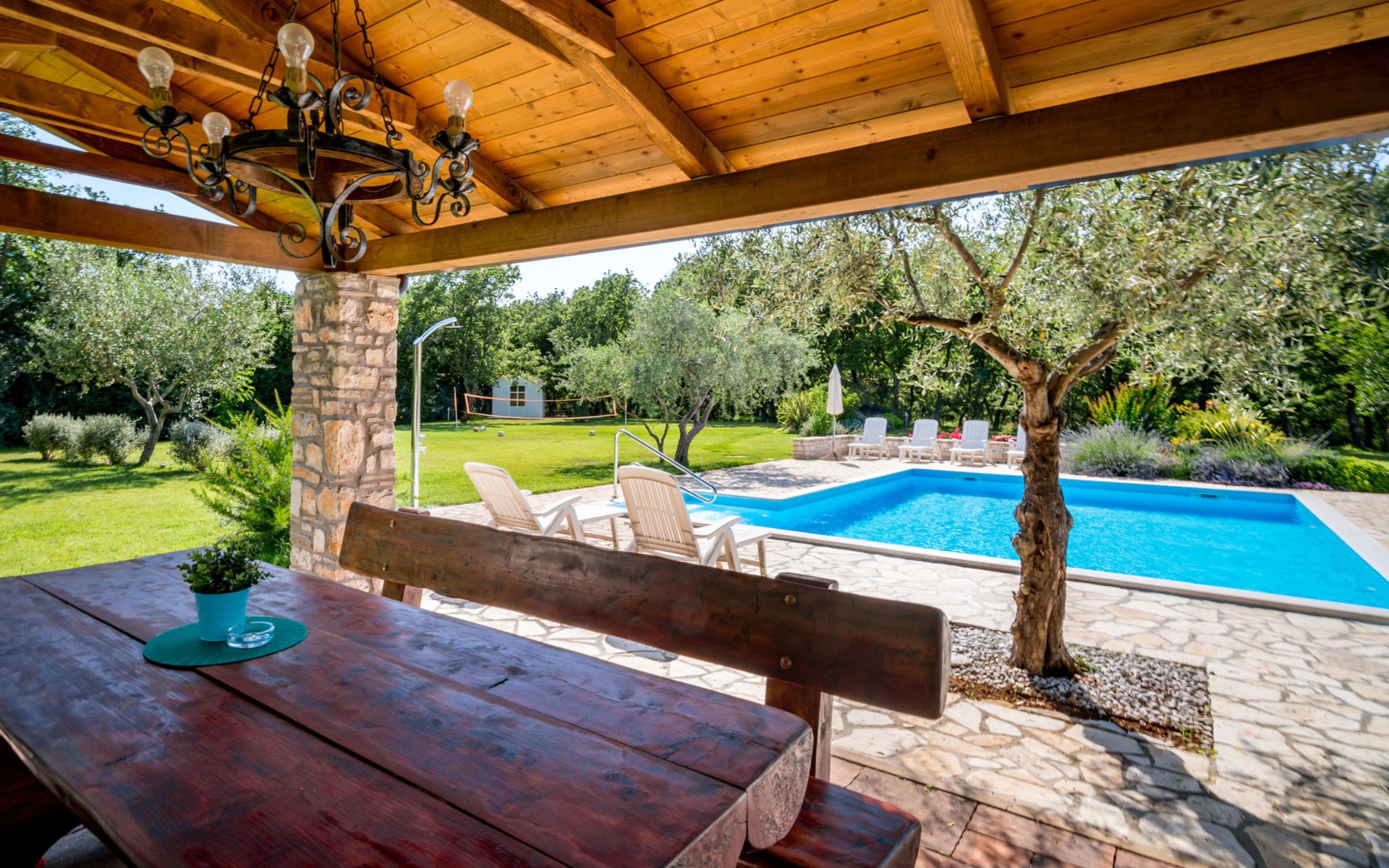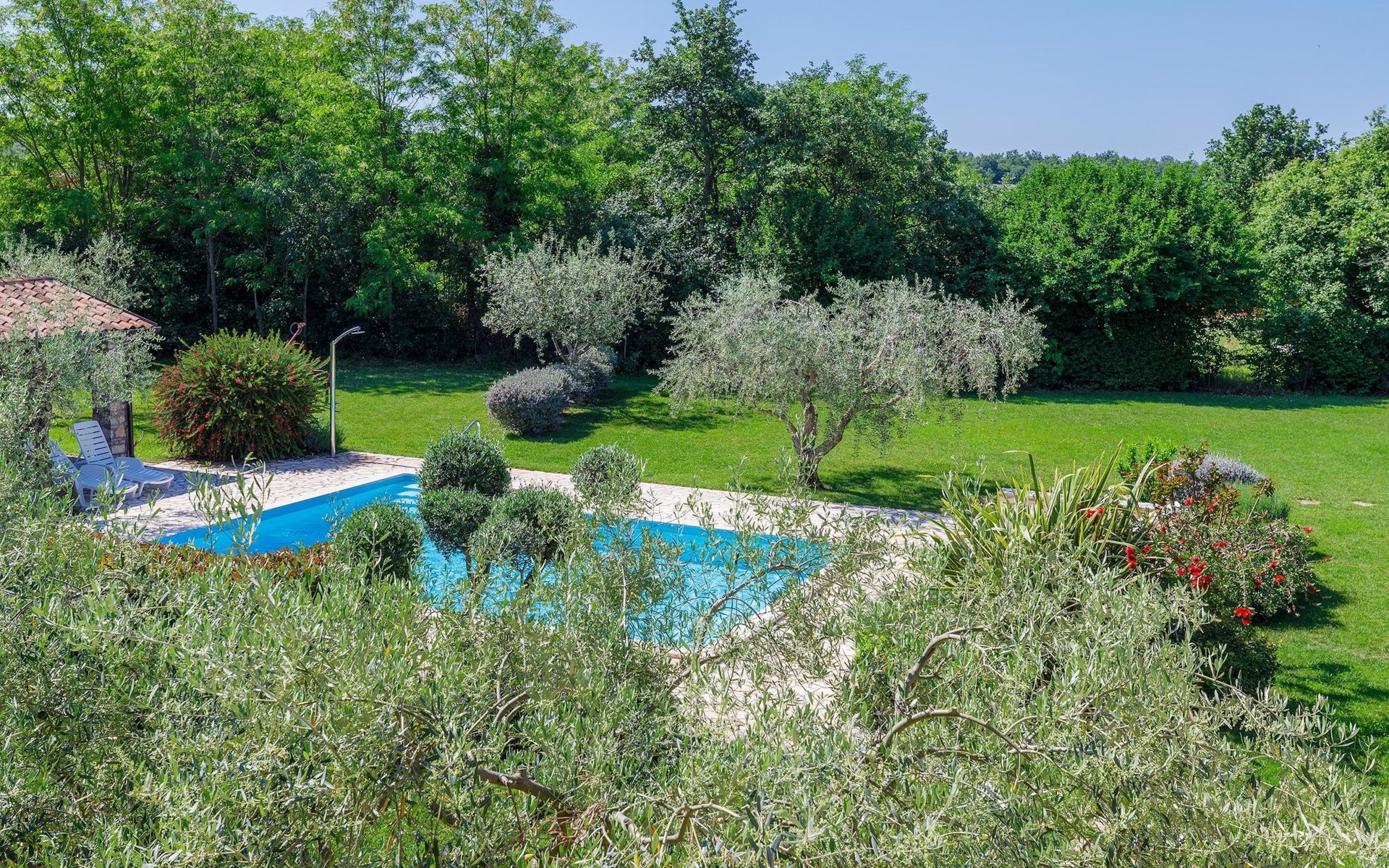 Huis met 3 woningen "Fiore". In het gehucht Gedići, 1 km van het centrum van Nova Vas, 5 km van het centrum van Poreč, zonnige ligging, 5 km van zee. Voor medegebruik: terrein 2.000 m2 (omheind), tuin met gazon, openluchtzwembad hoekig (8 x 6 m, 140 cm diepte, seizoensgebonden beschikbaarheid: 15.Apr. - 15.Okt.) met trap. Buitendouche, terras (20 m2), tuinmeubelen, barbecue, kinderspeelplaats (schommel). In het huis: internetaansluiting, wasmachine (voor medegebruik, extra). Parkeerplaats bij het huis op het terrein. Winkel 2 km, restaurant 2 km, bushalte 3.1 km, kiezelstrand 5 km, rotsstrand 5 km. Tennis 6 km, manege 3 km, wandelroutes 100 m vanaf het huis, fietspad 150 m. Attracties in de buurt: aquapark 11 km. Object referentie: HR2406.200 is gelegen op hetzelfde terrein.