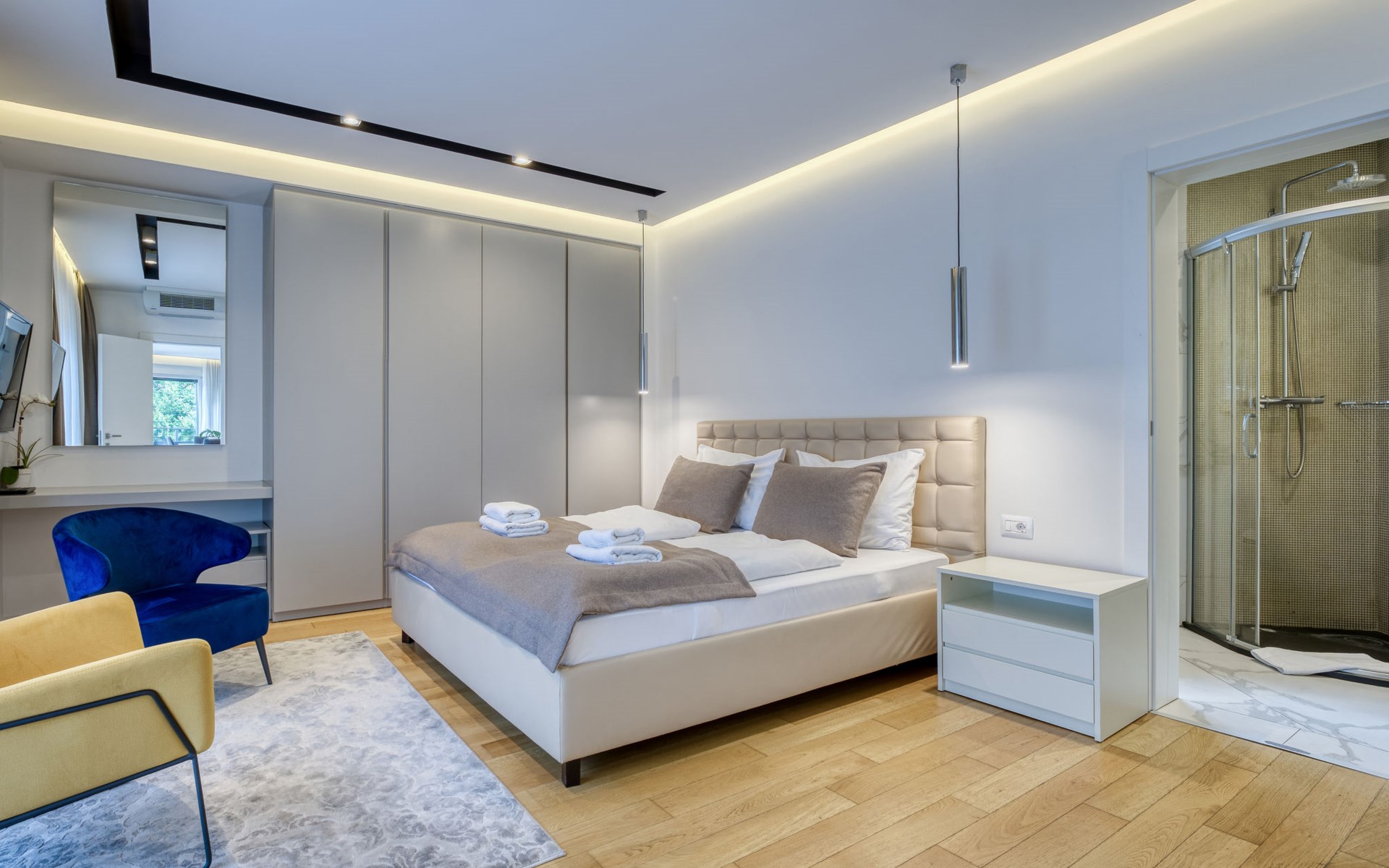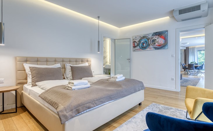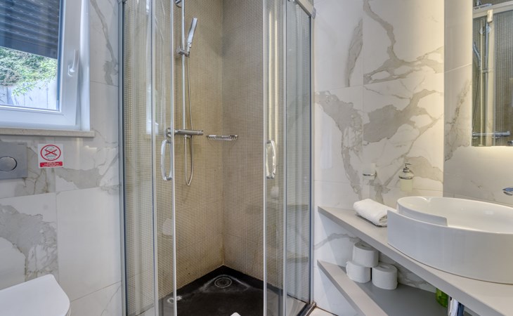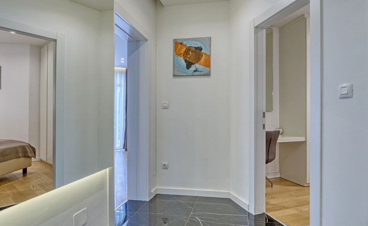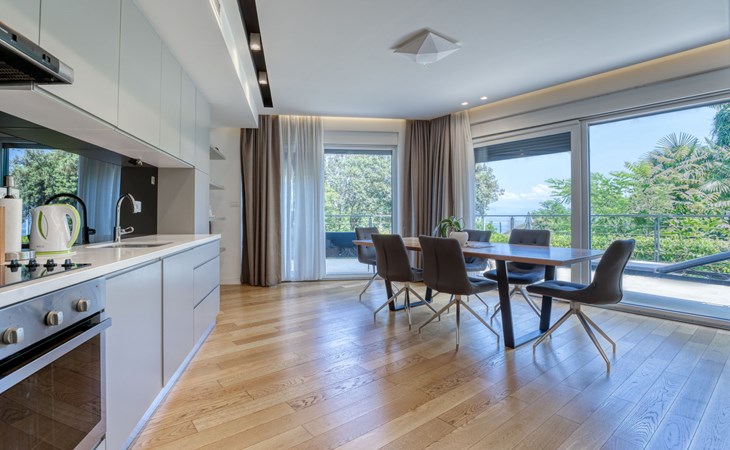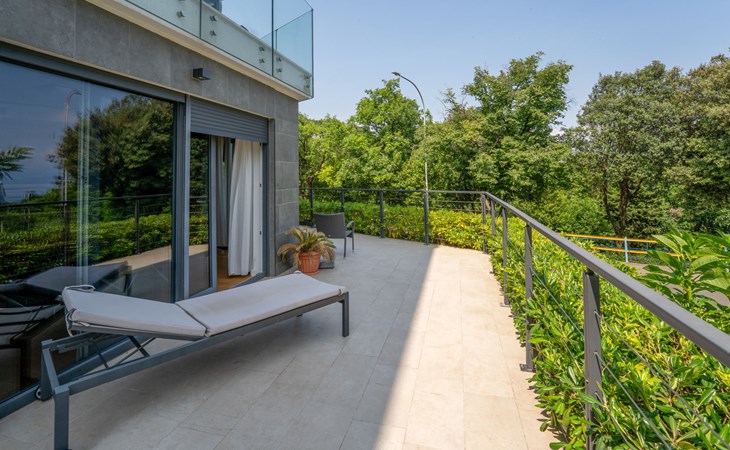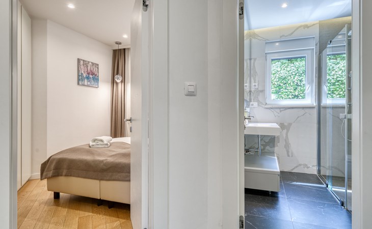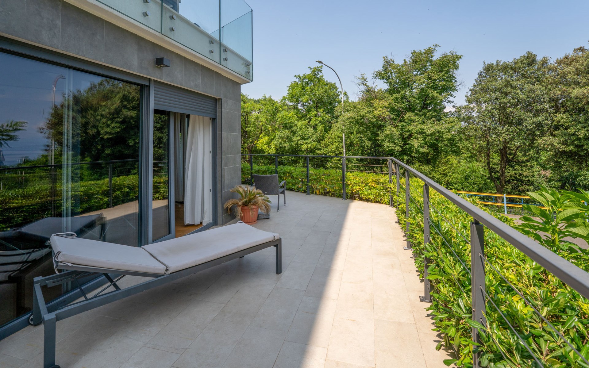 Moderne, gezellig appartementencomplex "Villa Ziza". 250 m van het centrum van Opatija, 600 m van zee, 600 m van het strand, aan een weg. Voor medegebruik: terrein 900 m2 met planten, openluchtzwembad (verhoogd) verwarmd (5 x 5 m, 85 cm diepte, seizoensgebonden beschikbaarheid: 01.Jan. - 31.Dec.). Onregelmatig zwembad. Buitendouche. In het huis: internetaansluiting, dakterras. Oplaadstation. Supermarkt, winkelcentrum 650 m, restaurant, café, bushalte 500 m, betonnen strand 600 m. Wandelroutes 100 m vanaf het huis. Groepen jongeren uitsluitend op aanvraag. Het zwembad bevind zich op het dakterras (50m2 met terrasmeubelen).