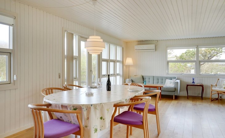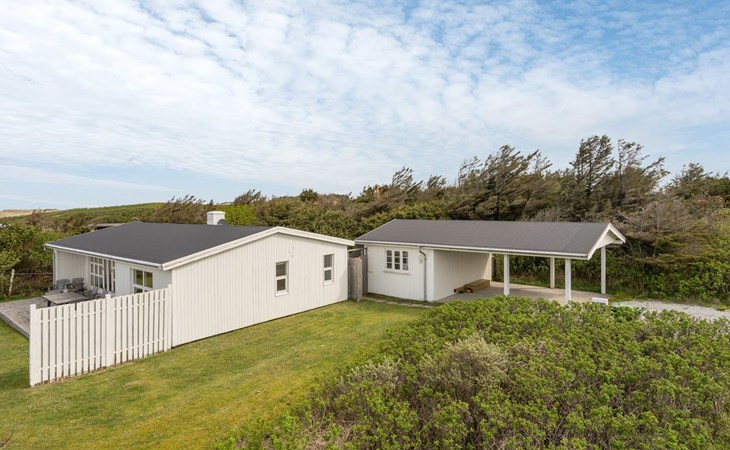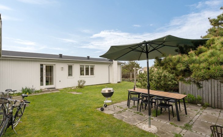 Eengezinswoning, bouwjaar 1975. 150 m van zee. Voor alleengebruik: terrein 1.400 m2, verzorgde tuin. Terras (48 m2). In het huis: wasmachine, droger. Parkeerplaats bij het huis. Carport. Levensmiddelenwinkel 1 km. De eigenaar accepteert geen jeugdgroepen.