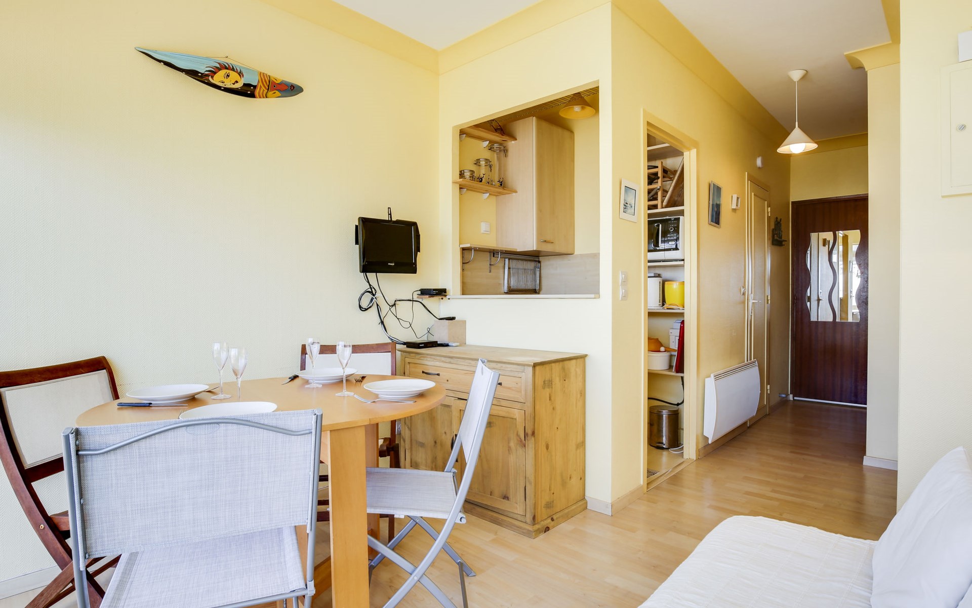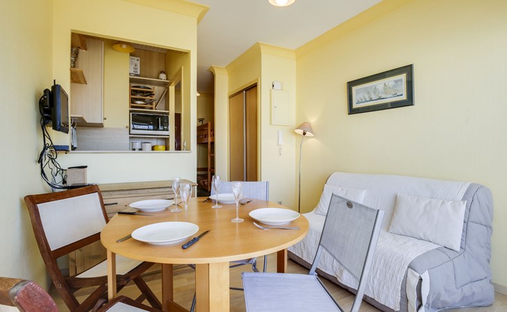 Arcachon: Residentie "La Houle". In het centrum van Arcachon, centrale, drukke ligging, 50 m van zee, 50 m van het strand. In het complex: lift, bergruimte voor fietsen. Winkel 100 m, levensmiddelenwinkel 200 m, supermarkt 550 m, winkelcentrum 8.3 km, restaurant, bar 100 m, bakkerij 150 m, café 50 m, voetgangersgebied 10 m, fietsverhuur 120 m, bushalte "Casino d'Arcachon" 700 m, station "Arcachon" 1.3 km, zandstrand "Thiers" 50 m, park "Mauresque" 500 m, openluchtzwembad 2.5 km, thermaalbad "Thalazur" 2.6 km. Jachthaven 3.6 km, golfterrein (18 holes) 3.9 km, surfschool 3.6 km, zeilschool 3.7 km, fietspad 10 m. Attracties in de buurt: Dune du Pyla 9 km, Eratopia 9.3 km, Navette Maritime pour le Cap Ferret 450 m, Observatoire Sainte Cécile 700 m, Casino 700 m, Marché Municipal 300 m. Bekende meren kunnen gemakkelijk worden bereikt: Lac de la Magdeleine 10.3 km, Lac de Cazaux 16.8 km. De sleuteloverdracht vindt plaats bij het agentschap Interhome in Arcachon. Vergelijkbare accommodaties kunnen worden geboekt.