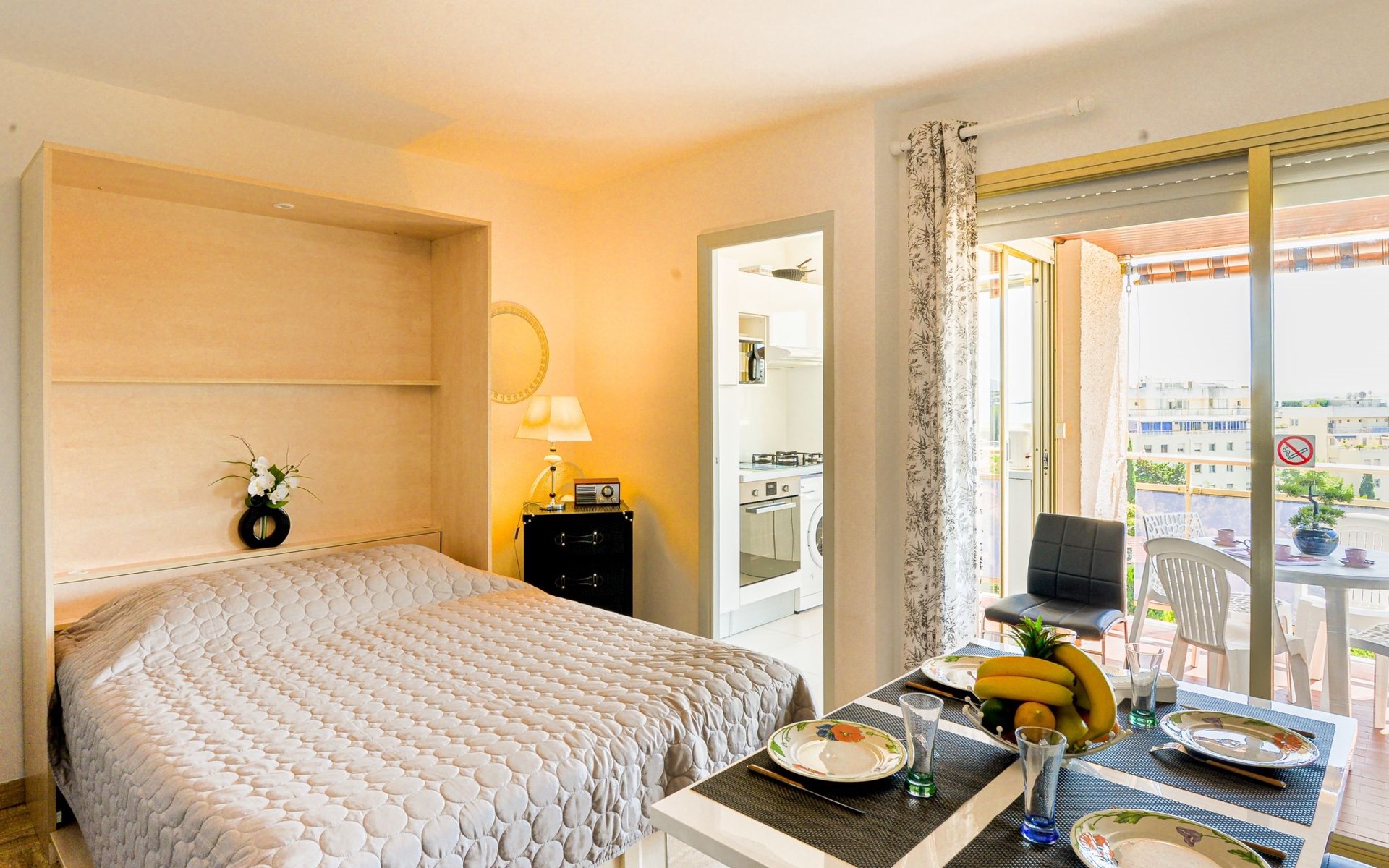 Appartementencomplex "Le Baccara". 200 m van zee, 150 m van het strand, de straat oversteken. In het complex: lift. Levensmiddelenwinkel 500 m, supermarkt, restaurant 150 m, bakkerij 400 m, café 150 m, centrum te voet bereikbaar in 20 minuten, bushalte "La pinède" 180 m, station "Cagnes sur Mer" 1 km. Golfterrein (18 holes) 9 km. Attracties in de buurt: Hippodrome 1.4 km, Chateau Grimaldi 3 km, Musée Renoir 2 km, Saint Paul de Vence 8 km, Marineland Antibes 7 km. Bekende meren kunnen gemakkelijk worden bereikt: St Cassien 50 km. Wandelgebied Col de Vence 20 km, Mercantour 67 km.