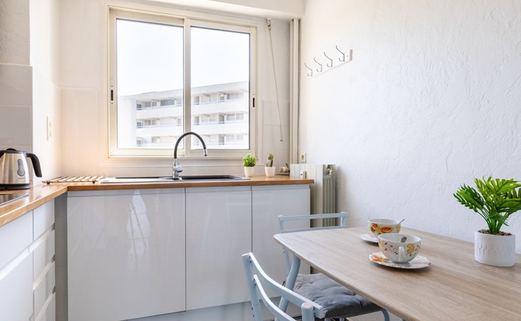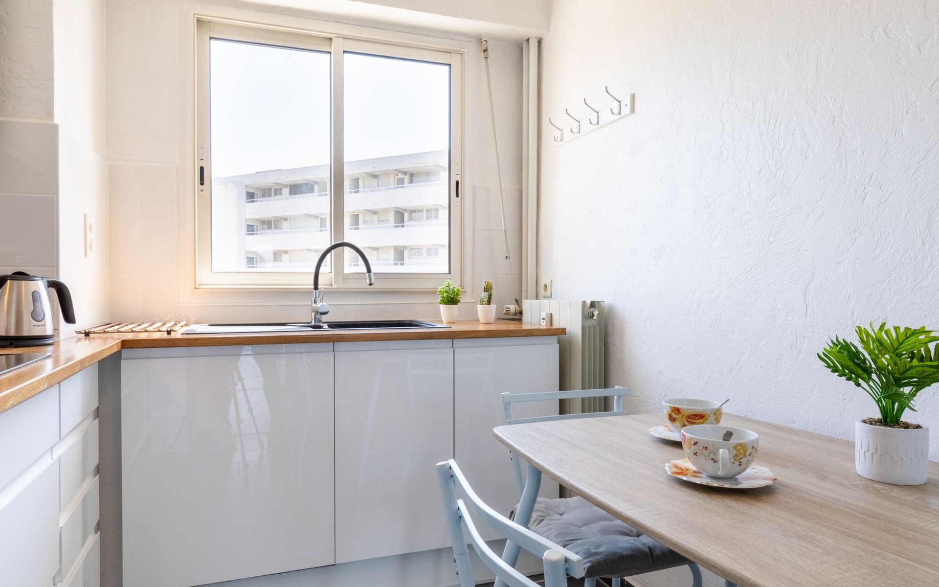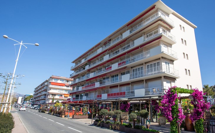 Residentie "L'Auteuil", van 5 verdiepingen. In de wijk Hippodrome Côte d'Azur, drukke ligging in een woonwijk, 200 m van zee, van het strand. In het huis: lift. Parkeerplaats (beperkt aantal). Levensmiddelenwinkel 700 m, supermarkt, winkelcentrum 4.3 km, restaurant 20 m, bar, bakkerij 20 m, fietsverhuur, bushalte 140 m, station "CENTRE VILLE" 1.2 km, stenenstrand "PLAGE DES GALETS" 30 m. Jachthaven 4.2 km.