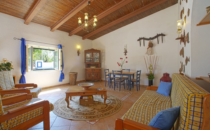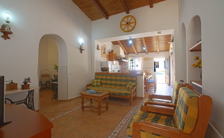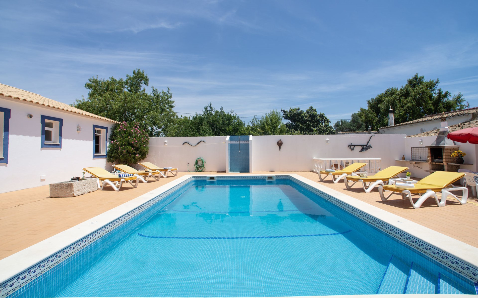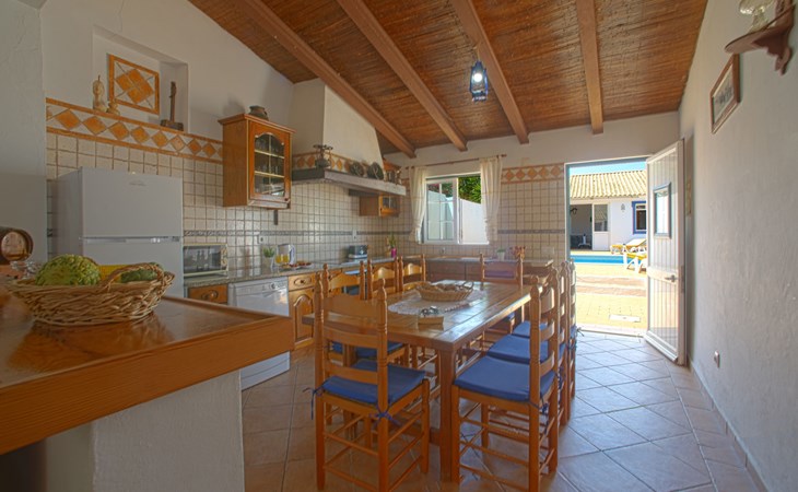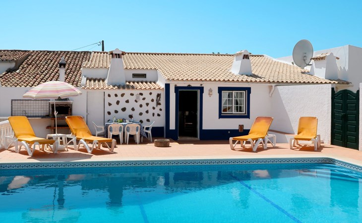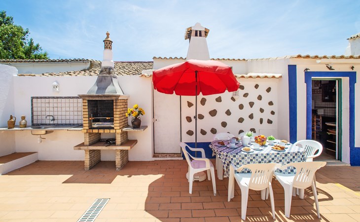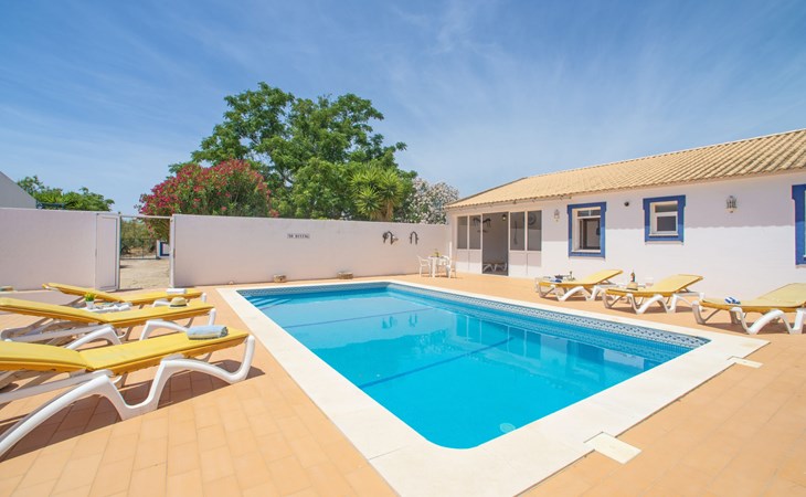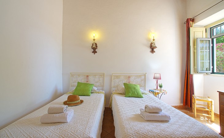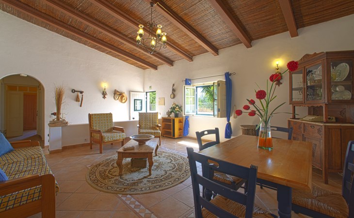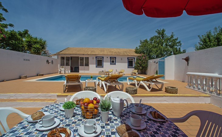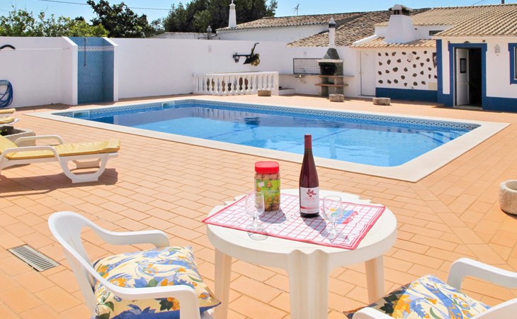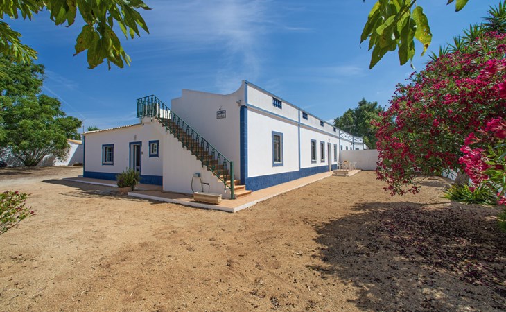 Huis "Monte da Calma". Huurobject bestaande uit hoofd-/ bijgebouw, Cerro de Ouro, 3.7 km van het centrum van Paderne, buiten de plaats, 9 km van het centrum van Albufeira, 9.5 km van zee. Voor alleengebruik: wild terrein 1.200 m2 (omheind), openluchtzwembad (8 x 4 m, 100 - 200 cm diepte, seizoensgebonden beschikbaarheid: 01.Jan. - 31.Dec.). Buitendouche, tafeltennis. In het huis: biljart, dakterras. 600 m lange smalle toegangsweg. Parkeerplaats op het terrein. Winkel 1.5 km, supermarkt 9 km, restaurant 1.8 km, bakkerij, bushalte 600 m, treinstation "Tunes" 6.6 km, zandstrand "Albufeira" 9.5 km. Jachthaven 10.5 km. Attracties in de buurt: Krazy World 12.5 km. Dieren in de buurt.