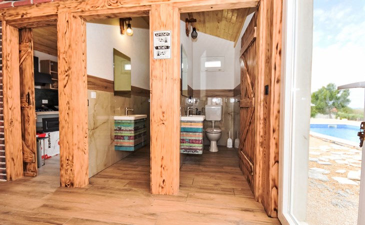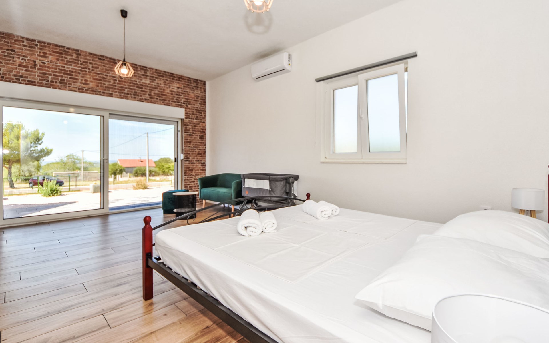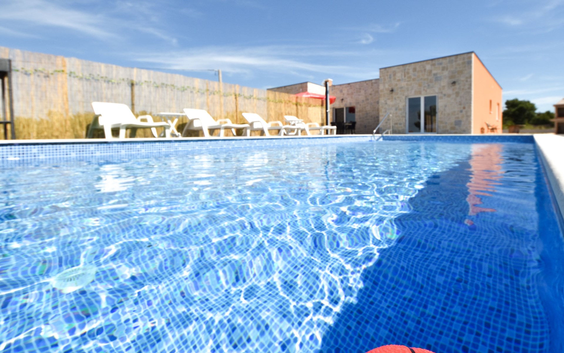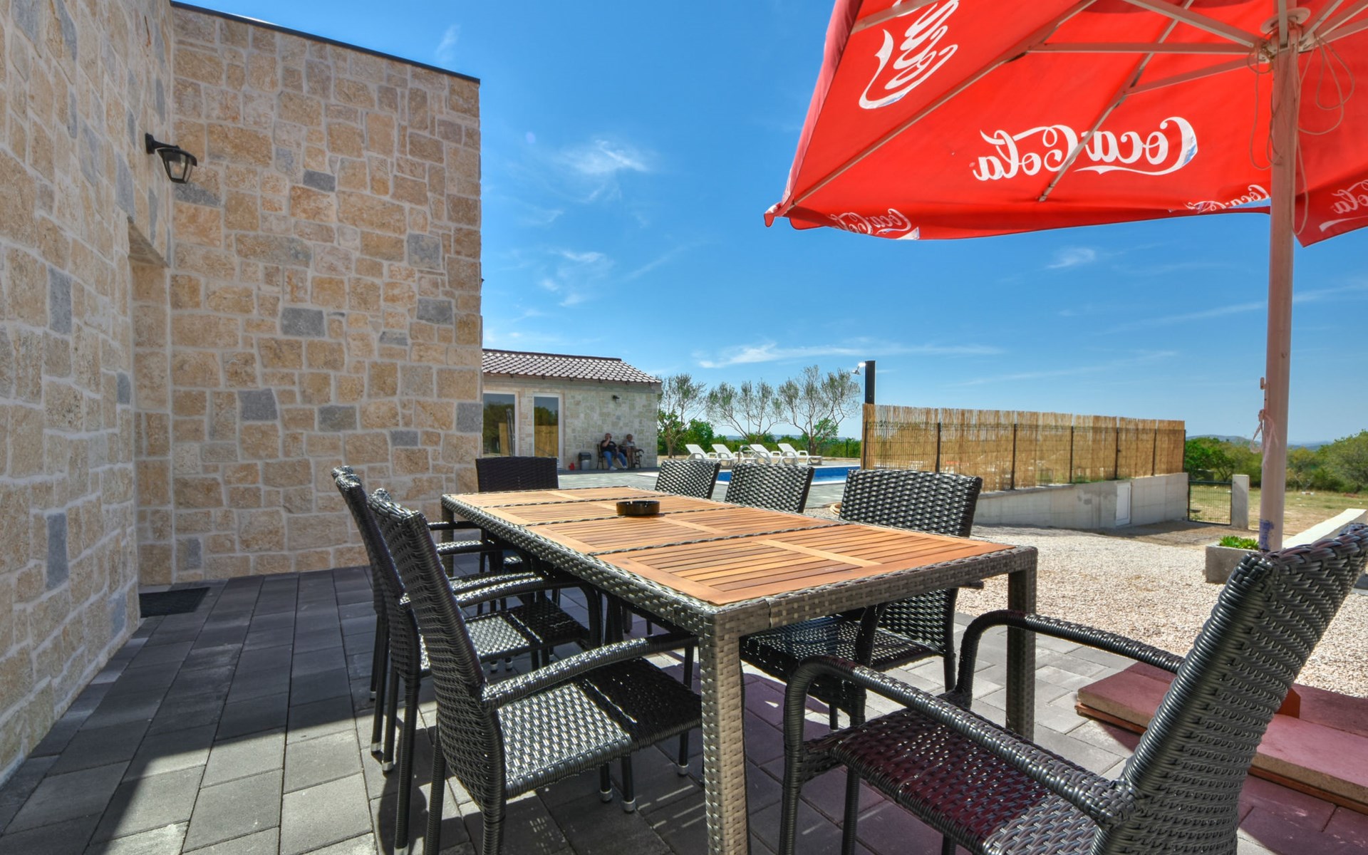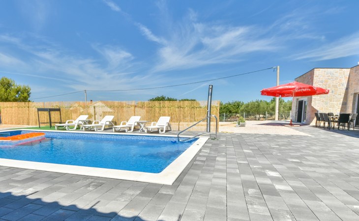 Korlat 13 km van Novigrad: Moderne eengezinswoning "Vulelija Holiday Home", bouwjaar 2024. 11 km van het centrum van Benkovac, 100 m van de bosrand, 16 km van zee. Voor alleengebruik: wild terrein 5.000 m2, openluchtzwembad hoekig, verwarmd (8 x 4 m, 145 cm diepte, seizoensgebonden beschikbaarheid: 01.Mei. - 01.Okt.). Buitendouche, terras (20 m2), tuinmeubelen, barbecue, grill. In het huis: internetaansluiting, wasmachine. Parkeerplaats (voor 4 auto's) op het terrein. Winkel 11 km, restaurant 13 km, bushalte 16.6 km, kiezelstrand 16 km.