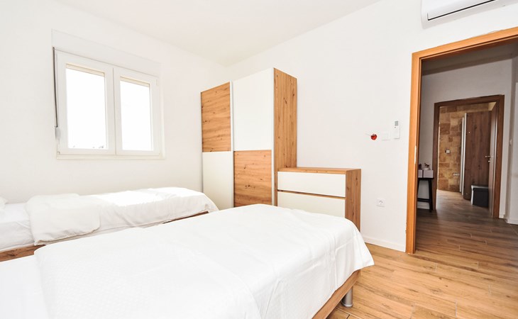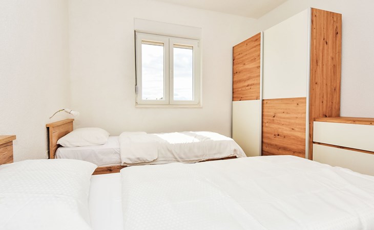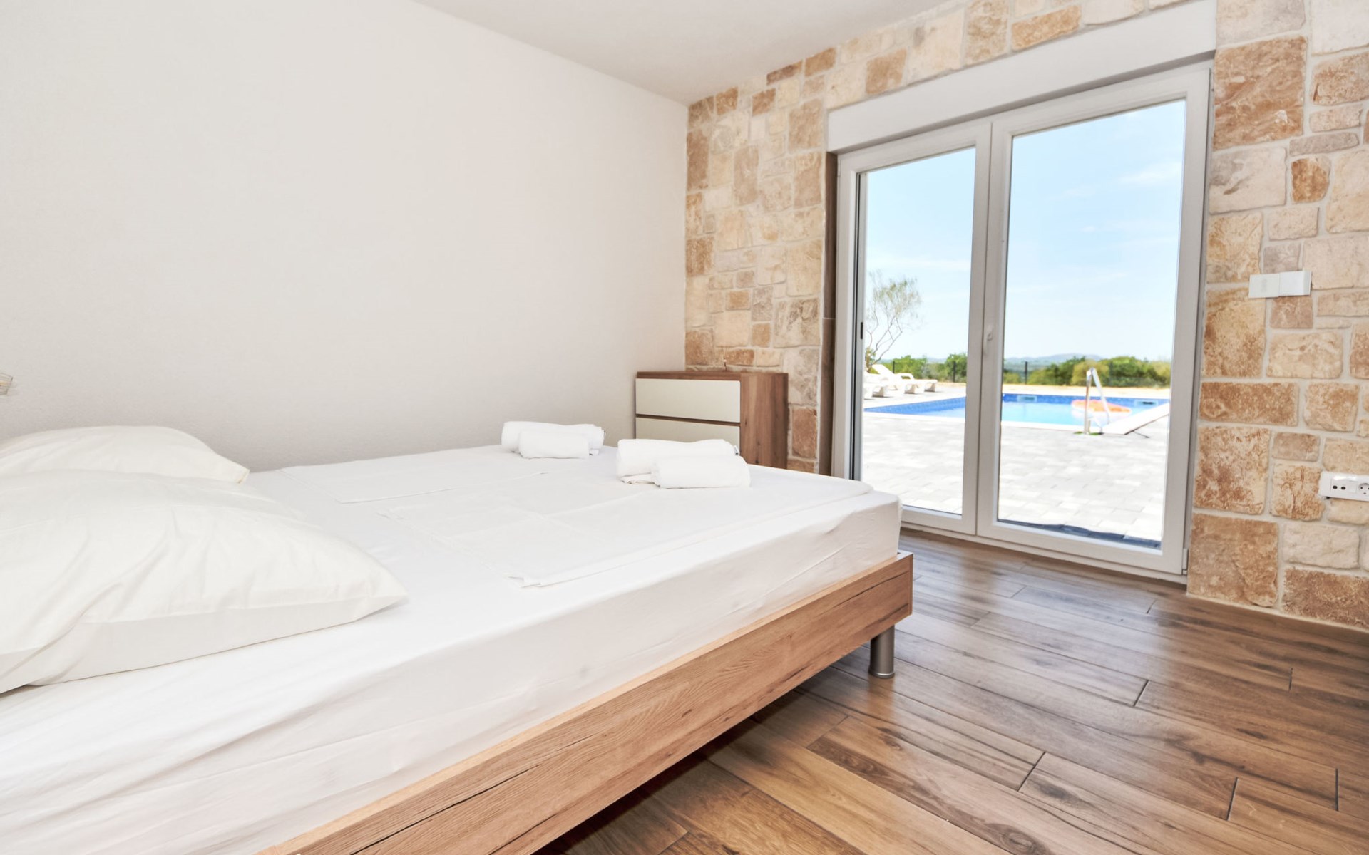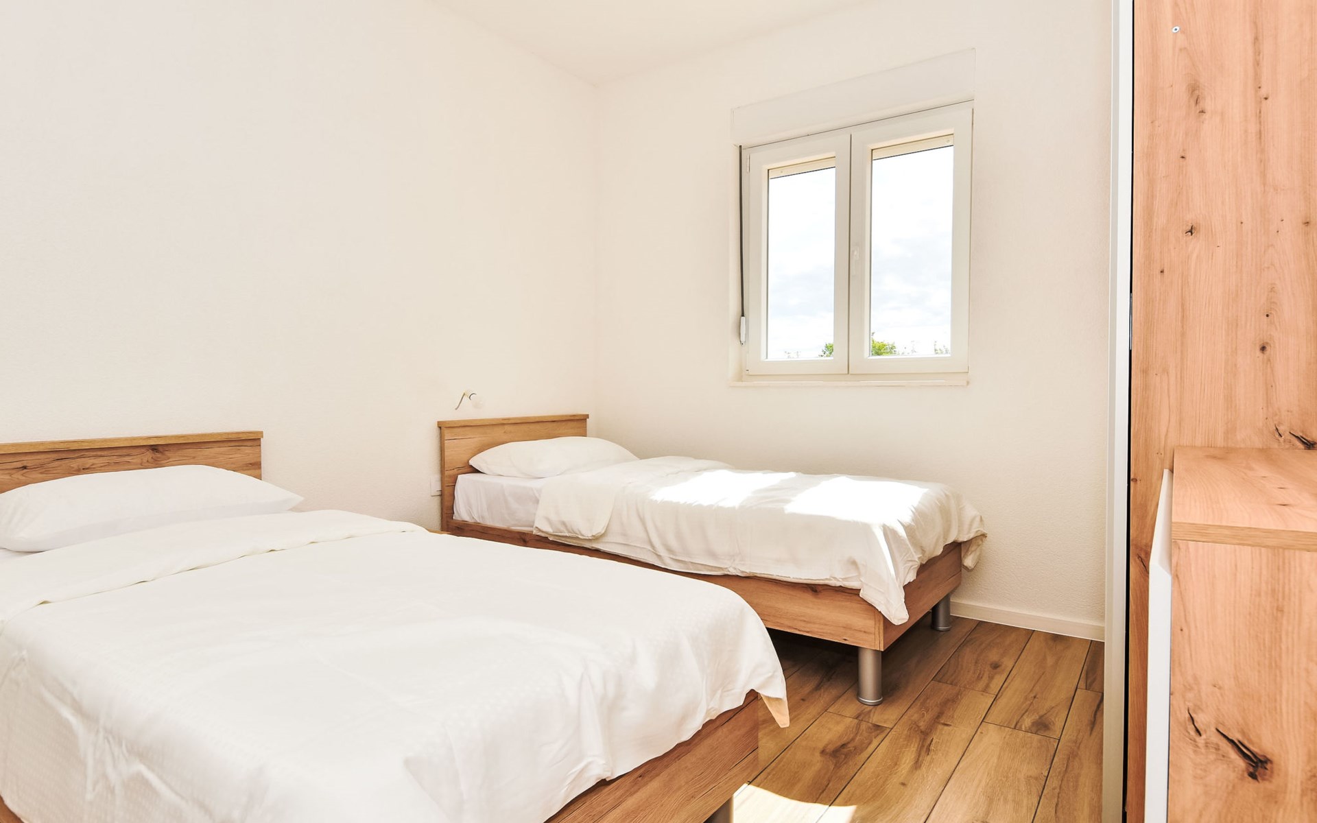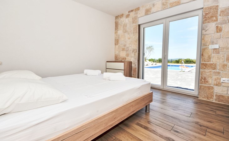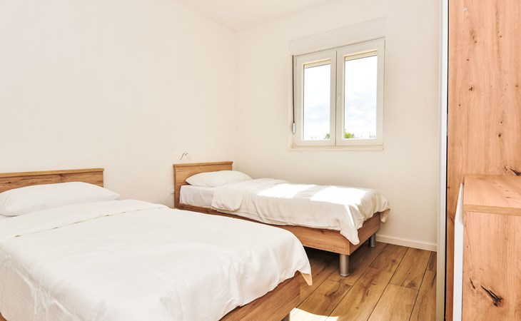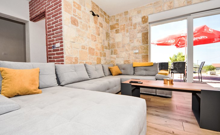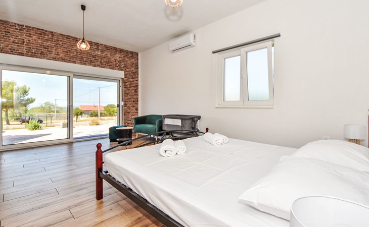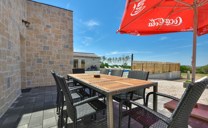 Korlat 13 km van Novigrad: Moderne eengezinswoning "Vulelija Holiday Home", bouwjaar 2024. 11 km van het centrum van Benkovac, 100 m van de bosrand, 16 km van zee. Voor alleengebruik: wild terrein 5.000 m2, openluchtzwembad hoekig, verwarmd (8 x 4 m, 145 cm diepte, seizoensgebonden beschikbaarheid: 01.Mei. - 01.Okt.). Buitendouche, terras (20 m2), tuinmeubelen, barbecue, grill. In het huis: internetaansluiting, wasmachine. Parkeerplaats (voor 4 auto's) op het terrein. Winkel 11 km, restaurant 13 km, bushalte 16.6 km, kiezelstrand 16 km.