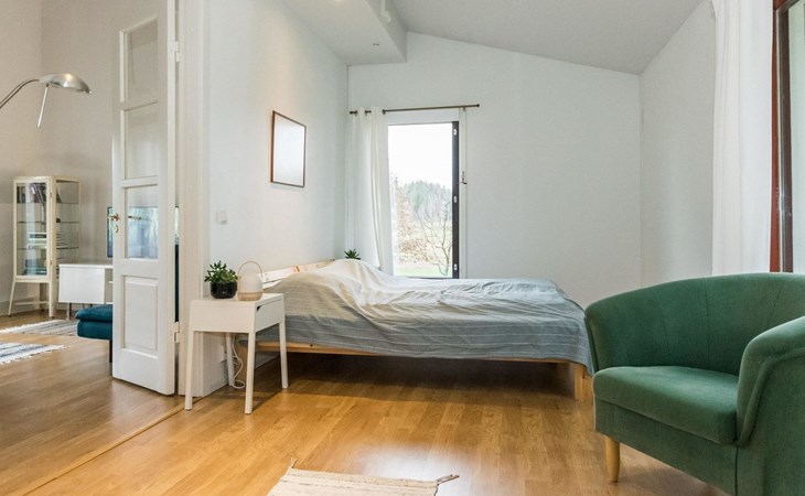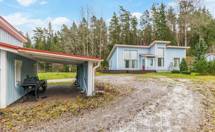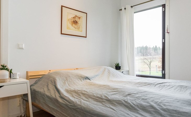 Wooden cabin 85 m² (built in 2011), situated 50 km to the southeast from Turku in the village of Hulta. The cabin comprises a kitchen, a living room with one bed and a sofa bed (with a smaller-sized bed, 120 x 185 cm), and a bedroom with two beds. WC, bathroom, electric sauna. The spacious terrace is equipped with garden furniture and a charcoal grill. The carport in the yard is available for the tenant's use.