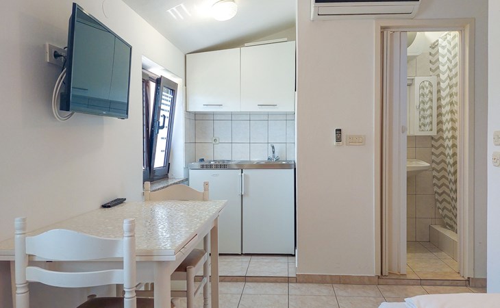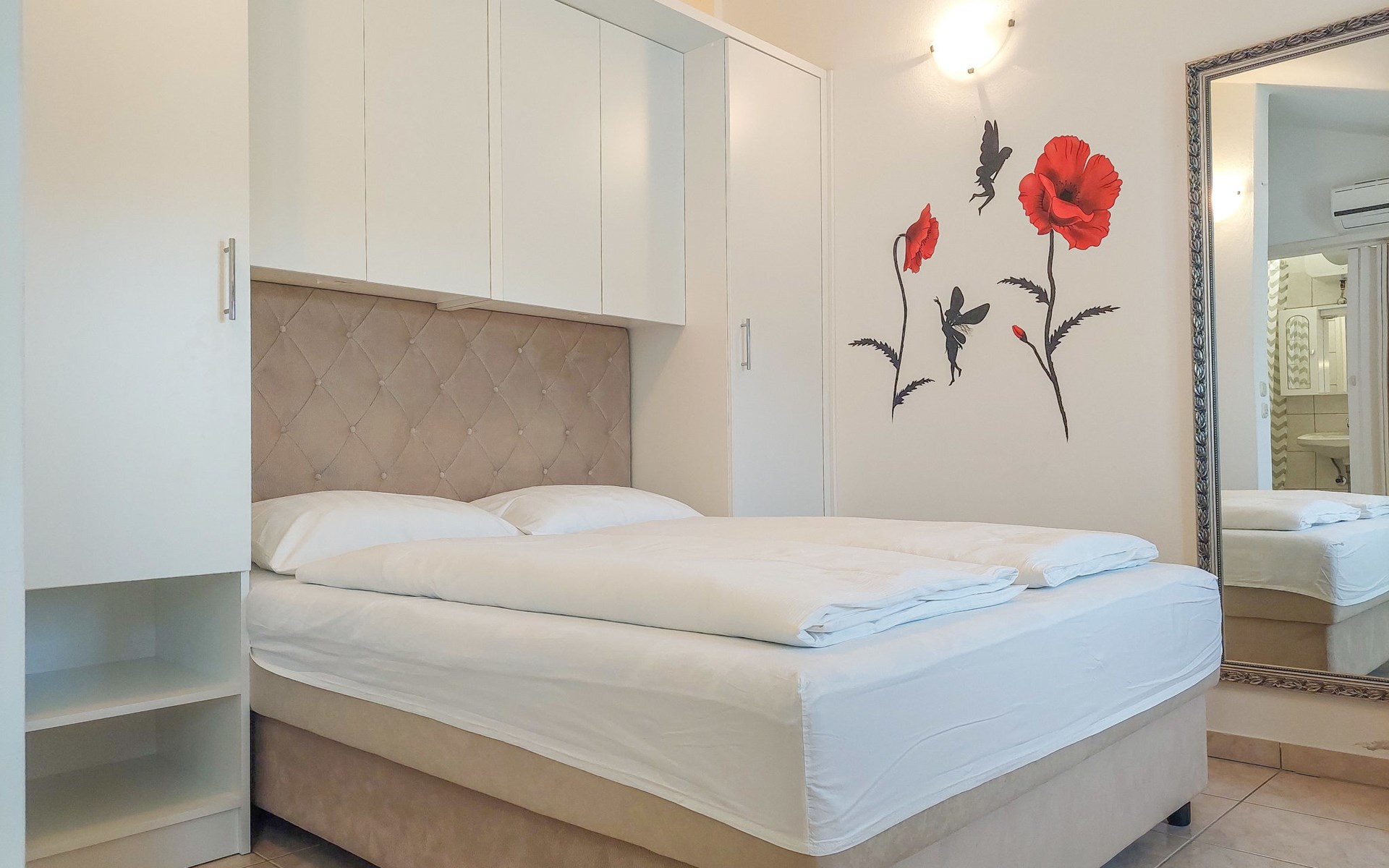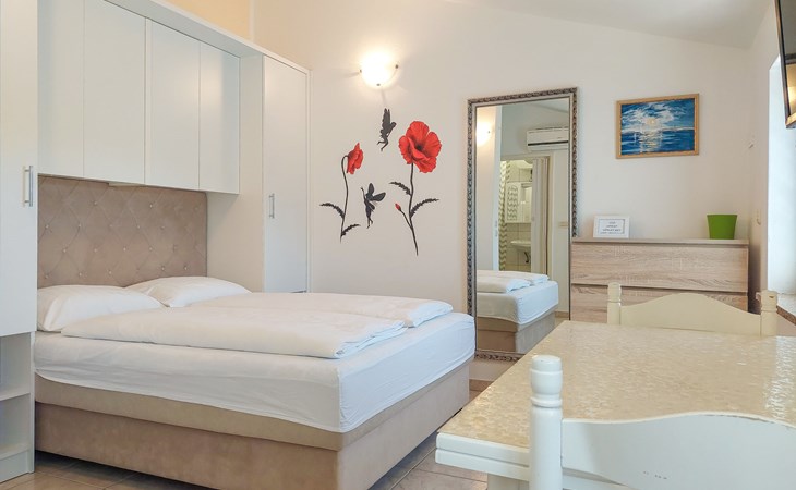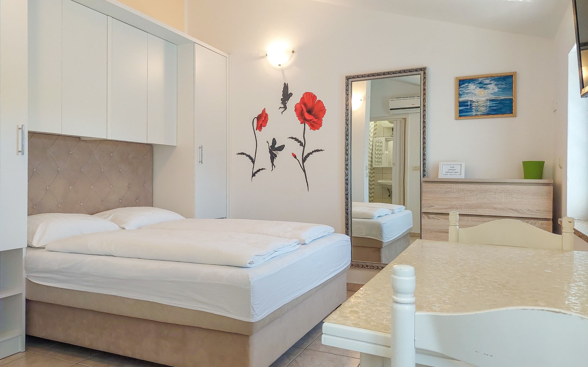Appartementencomplex "Marija". In de wijk Batomalj, 1.5 km van het centrum van Baška, 17 km van het centrum van Punat, 19 km van het centrum van Krk, 1.5 km van zee, 1.5 km van het strand. Voor medegebruik: terrein 1.000 m2, verzorgde tuin met planten en bloemen. Buitendouche, patio, barbecue. In het huis: internetaansluiting, Internet (WiFi). Parkeerplaats op het terrein. Winkel 1 km, restaurant 1.5 km, bushalte 900 m, kiezelstrand 1.5 km. Vliegveld 43 km van het huis.