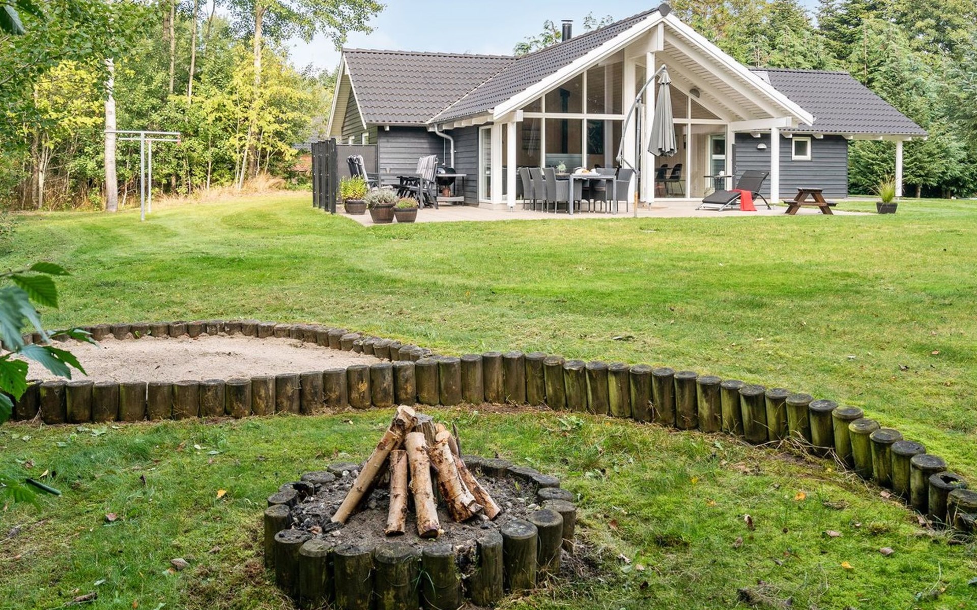 Eengezinswoning, bouwjaar 2008. 1.5 km van zee. Voor alleengebruik: wild terrein 1.300 m2. Terras (30 m2), barbecue, kinderspeelplaats (schommel). In het huis: sauna, wasmachine. Parkeerplaats bij het huis. Levensmiddelenwinkel 2 km. De eigenaar accepteert geen jeugdgroepen.
