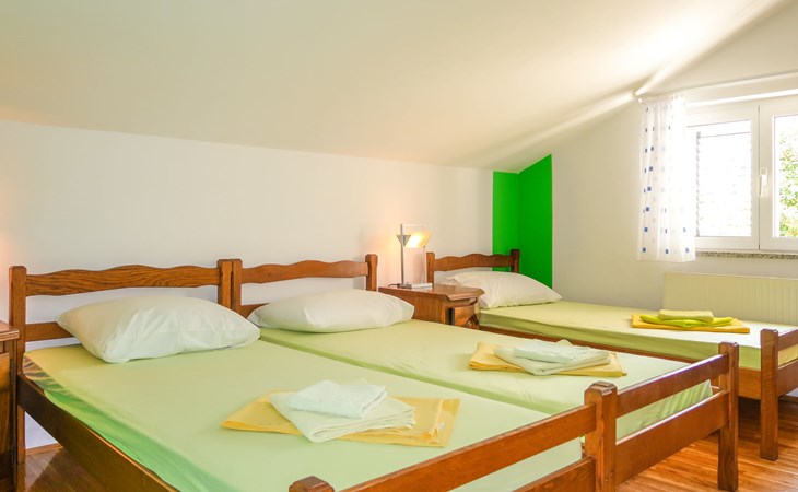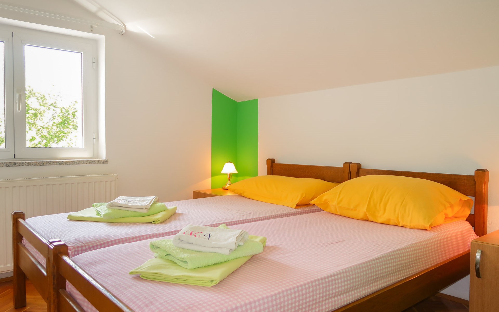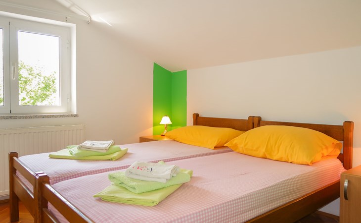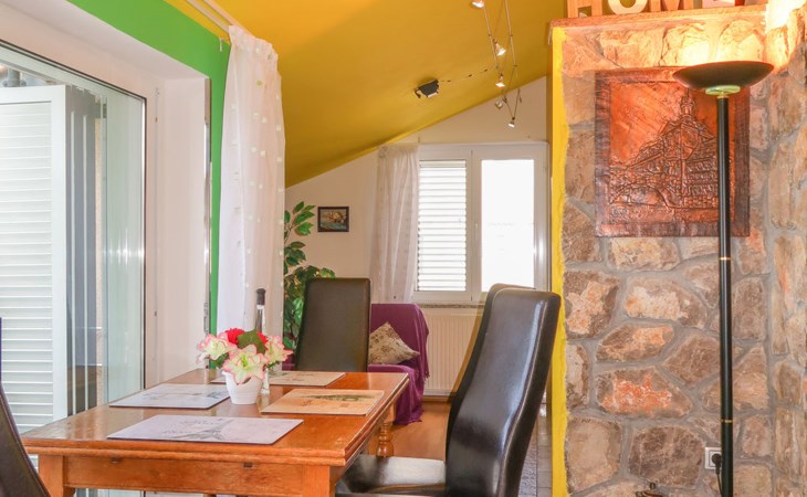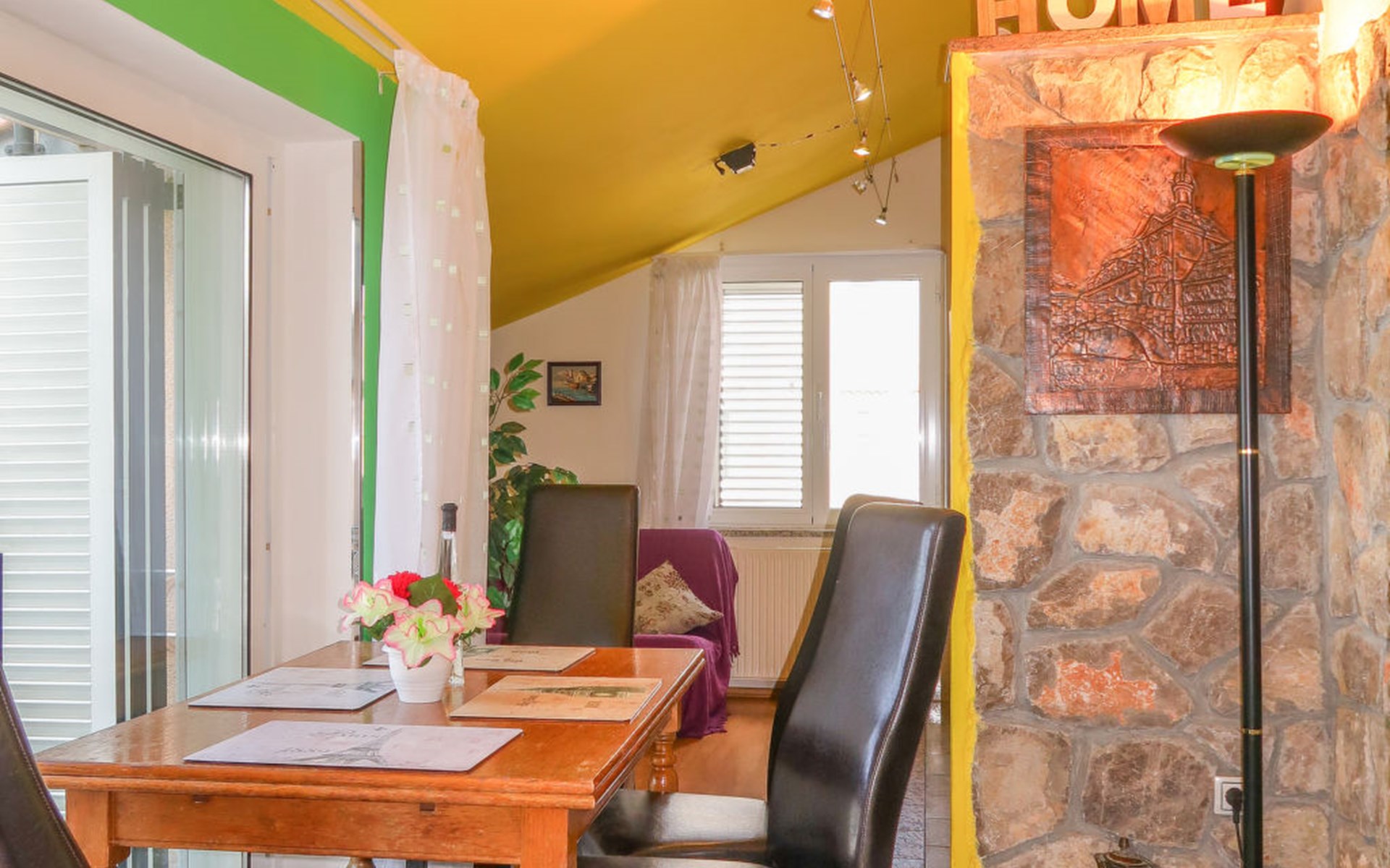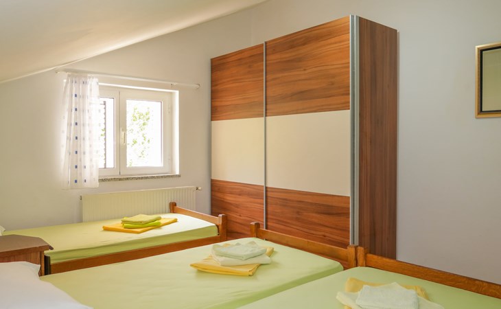 Huis met 3 woningen "Blekić". 2 km van het centrum van Malinska, 13 km van het centrum van Krk, 16 km van het centrum van Vrbnik, 2 km van zee, 2.4 km van het strand, aan een doodlopende weg. Voor medegebruik: terrein 600 m2 (omheind), verzorgde tuin met gazon en planten. Buitendouche, patio, tuinmeubelen, barbecue. In het huis: internetaansluiting. Parkeerplaats bij het huis op het terrein. Winkel 700 m, bushalte 900 m, rotsstrand 2.4 km. Lokale verkoop van streekproducten. Vliegveld 15 km van het huis.