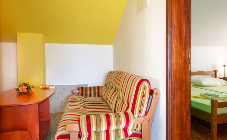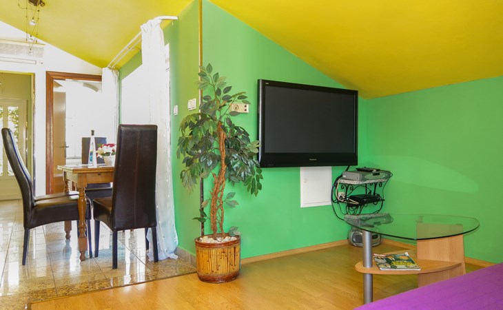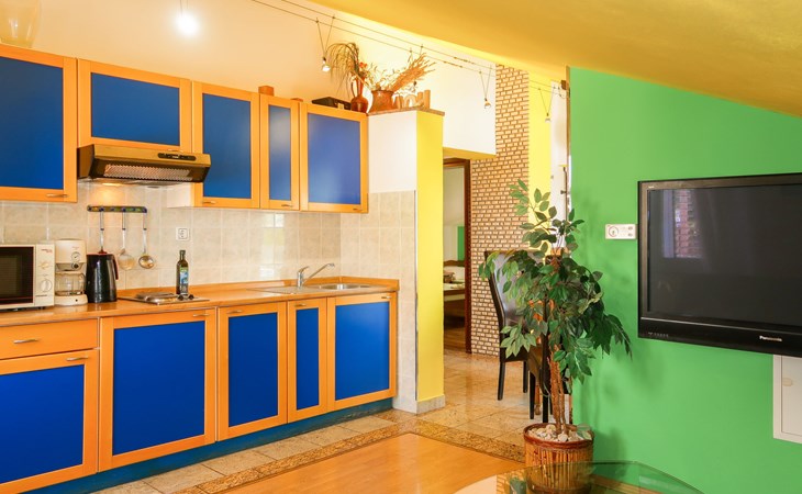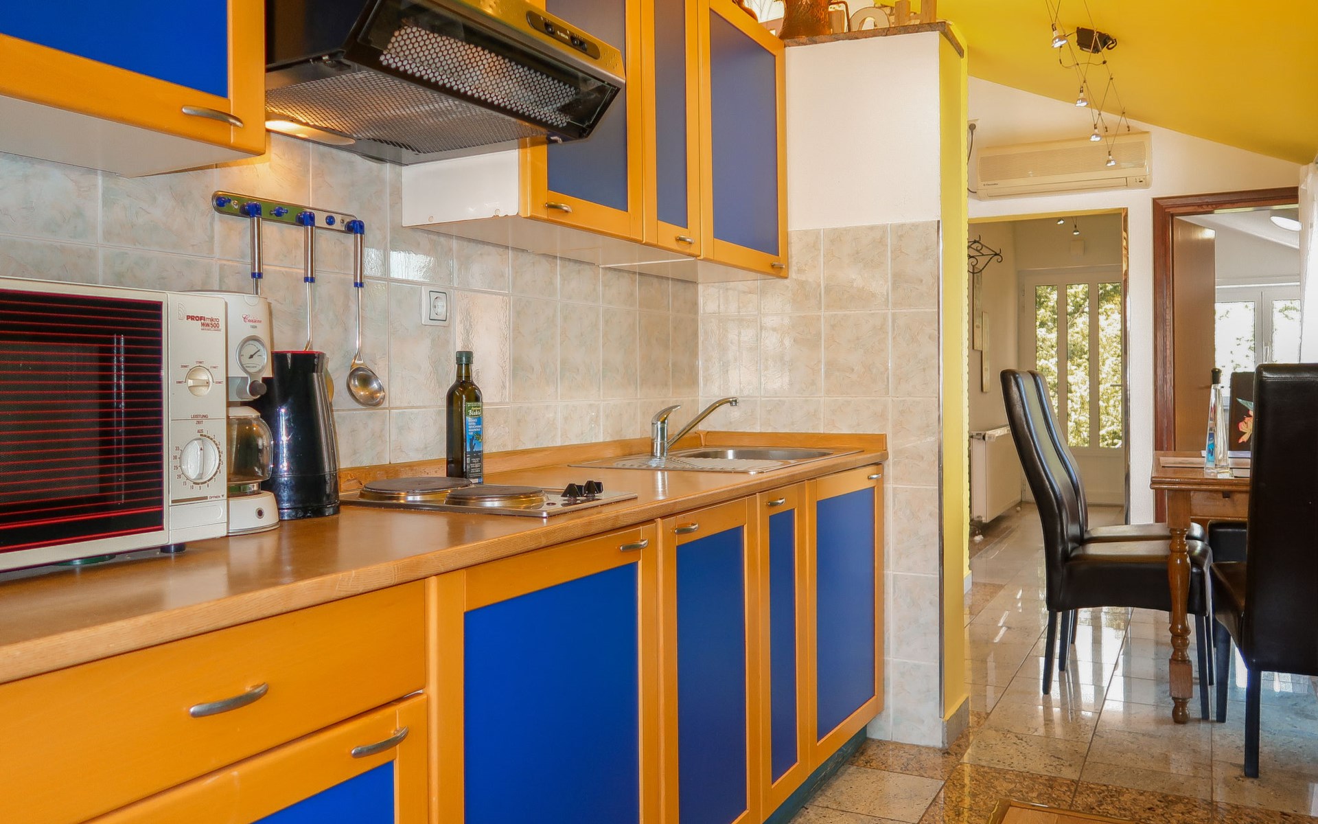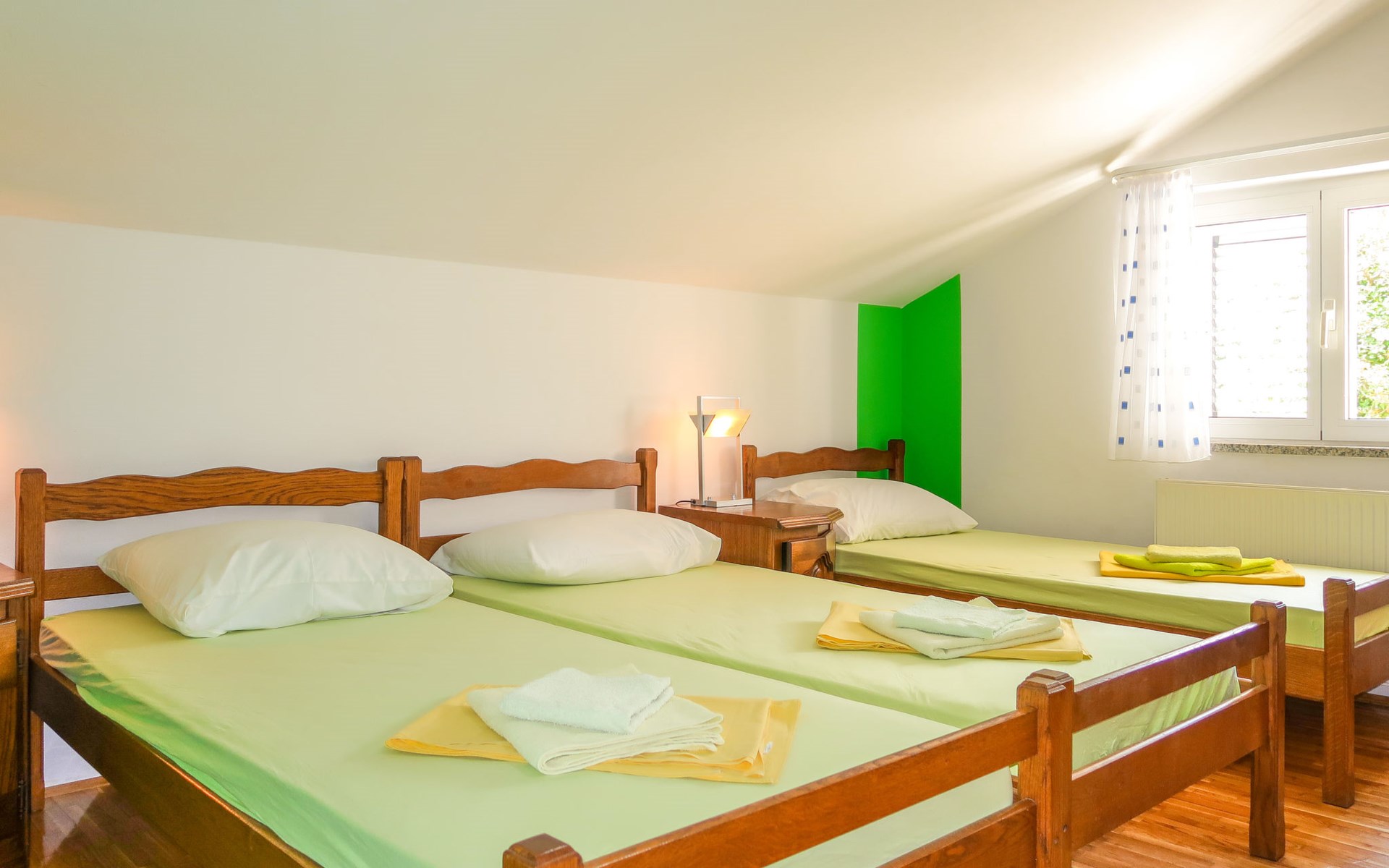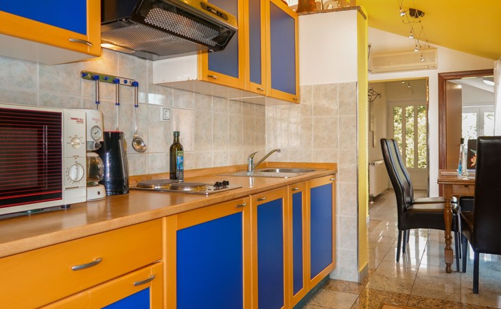 Huis met 3 woningen "Blekić". 2 km van het centrum van Malinska, 13 km van het centrum van Krk, 16 km van het centrum van Vrbnik, 2 km van zee, 2.4 km van het strand, aan een doodlopende weg. Voor medegebruik: terrein 600 m2 (omheind), verzorgde tuin met gazon en planten. Buitendouche, patio, tuinmeubelen, barbecue. In het huis: internetaansluiting. Parkeerplaats bij het huis op het terrein. Winkel 700 m, bushalte 900 m, rotsstrand 2.4 km. Lokale verkoop van streekproducten. Vliegveld 15 km van het huis.