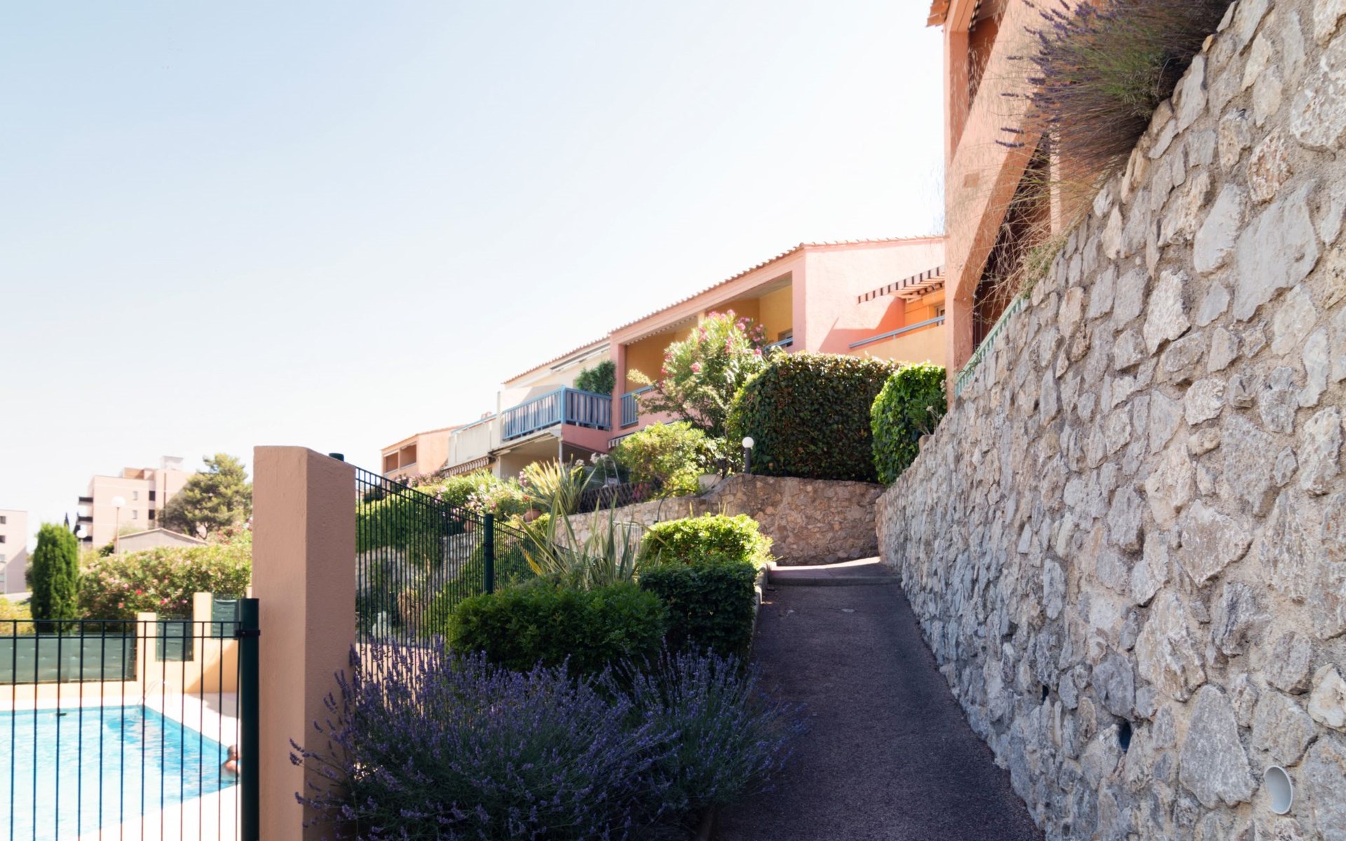 Residentie "Les Jardins d'Amaryllis". Buiten de plaats Cavalaire Sur Mer, 1.2 km van zee, 1.2 km van het strand. Voor medegebruik: openluchtzwembad (12 x 25 m, 150 - 220 cm diepte, seizoensgebonden beschikbaarheid: 01.Mei. - 30.Sep.). Kinderzwembad, jeu de boules. Winkel 800 m, supermarkt 1 km, restaurant 900 m, bakkerij 700 m, bushalte "Halte routière" 1.6 km, zandstrand 1.2 km, park "Aqualand" 24 km, duikschool 1.1 km. Jachthaven 1.1 km. Attracties in de buurt: Azur Park, Paint-ball 12 km, Bowling à Port-Grimaud 13 km, St-Tropez 17 km, Ste-Maxime 24 km. Wandelgebied Sentier du Fenouillet 2.2 km, Sentier du littoral 7 km, Toulon 60 km. Auto noodzakelijk. De sleuteloverdracht vindt plaats bij het agentschap Interhome in Cavalaire. Elektrische verwarming.