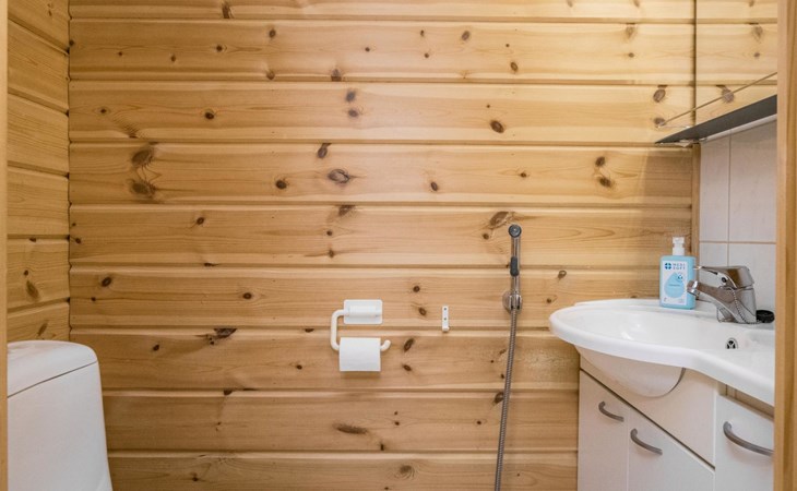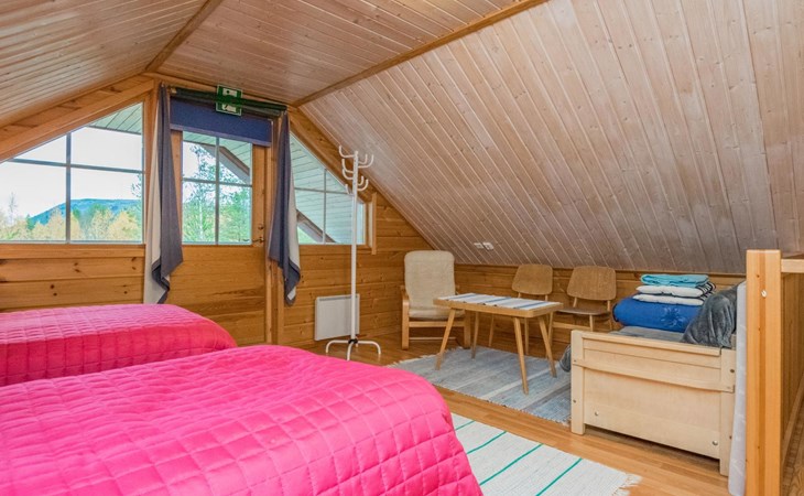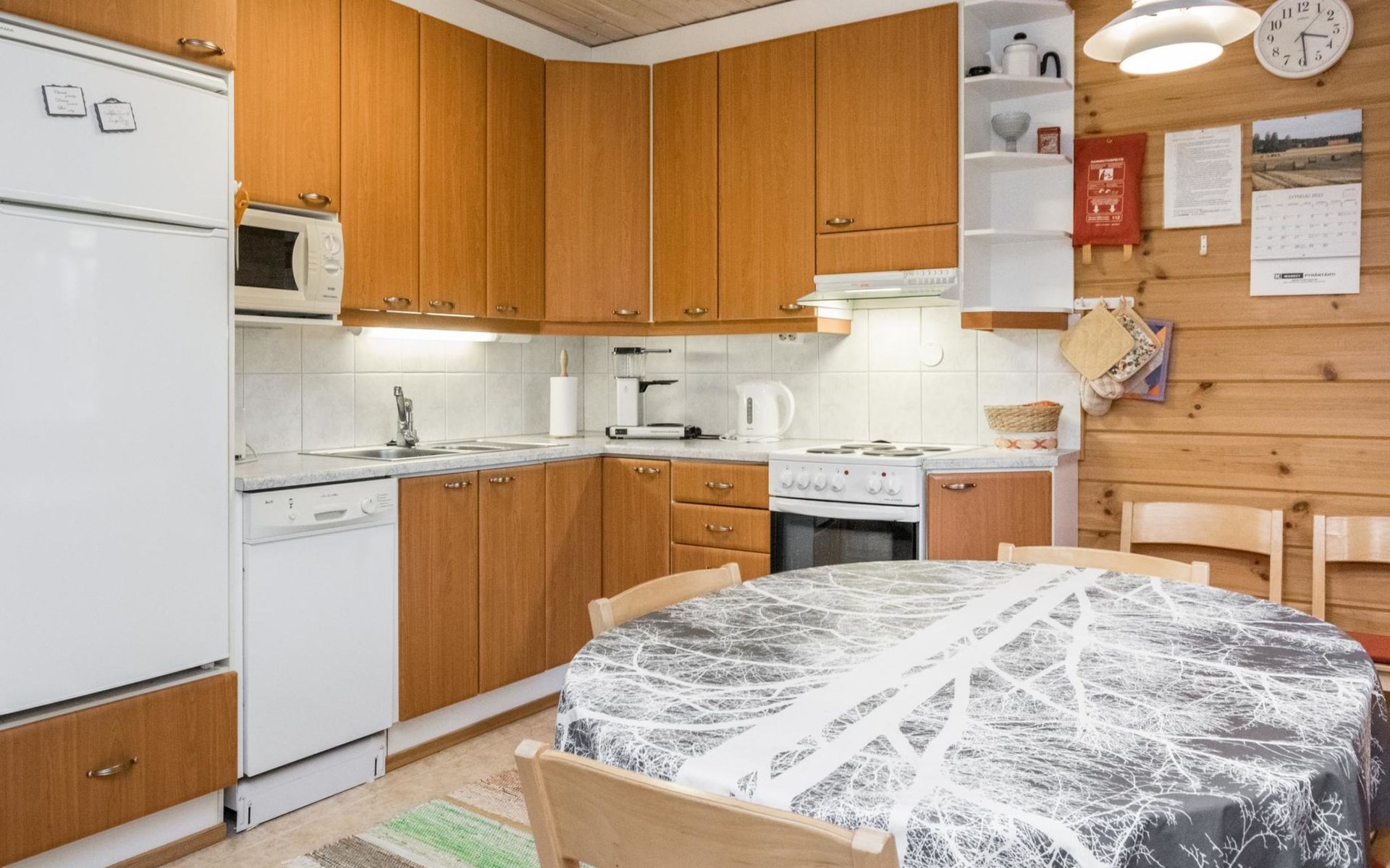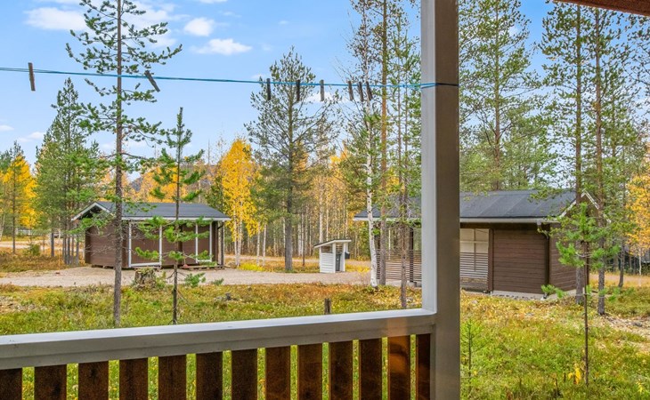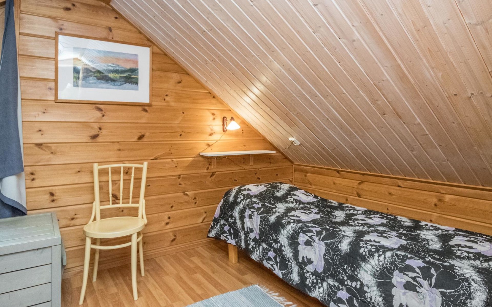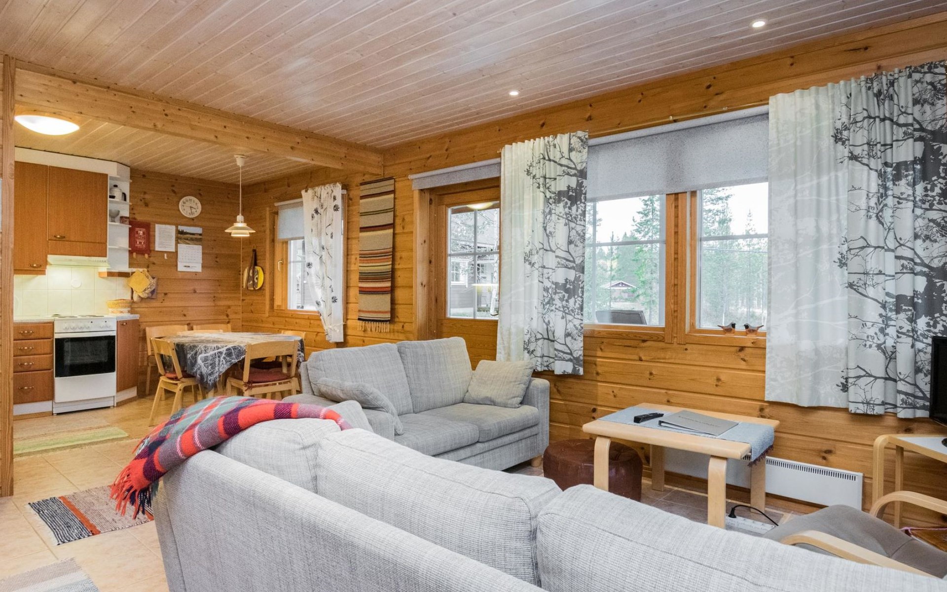 45 km north from Kemijärvi. Log cabin built in 2003. Downstairs living room/kitchen, bedroom with double bed, toilet, washroom and sauna (electric stove). Upstairs bedroom with two separate beds, in loft double bed and couch with two extra beds, balcony. Separate wood storage room and outdoor storage with ski waxing room.