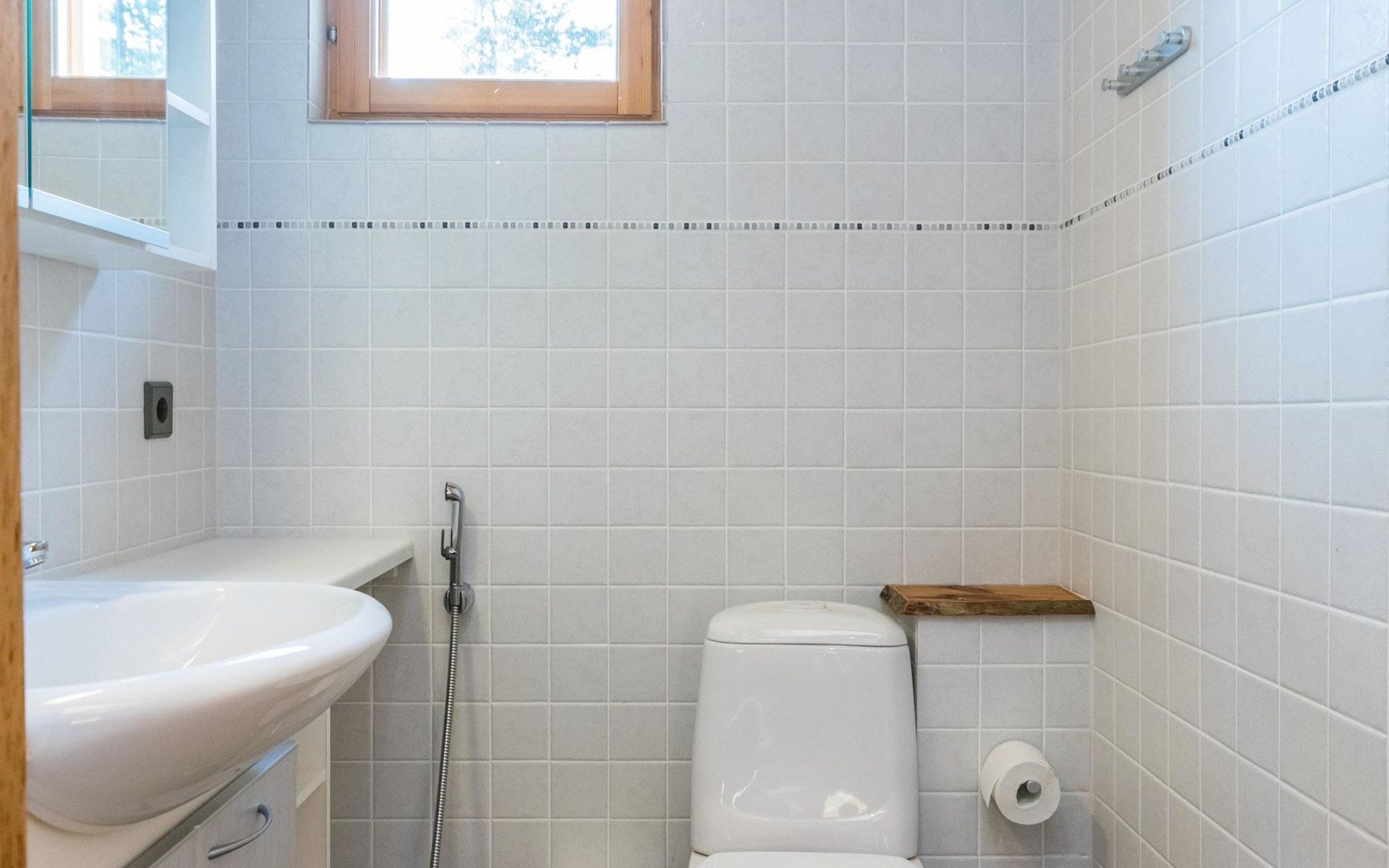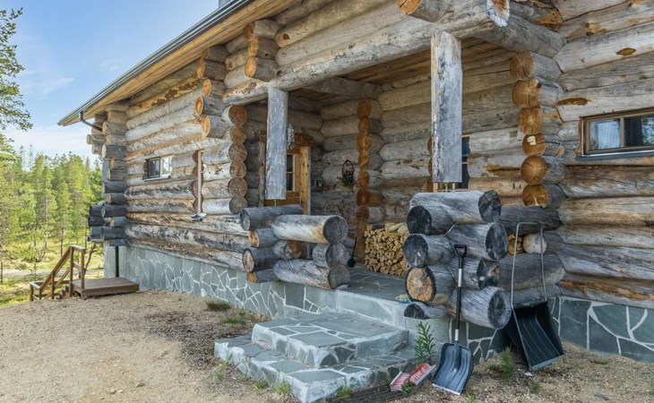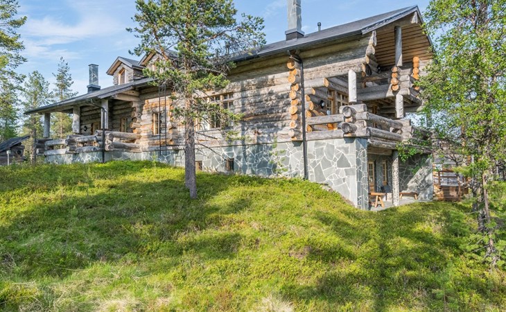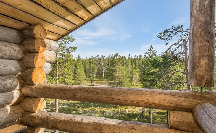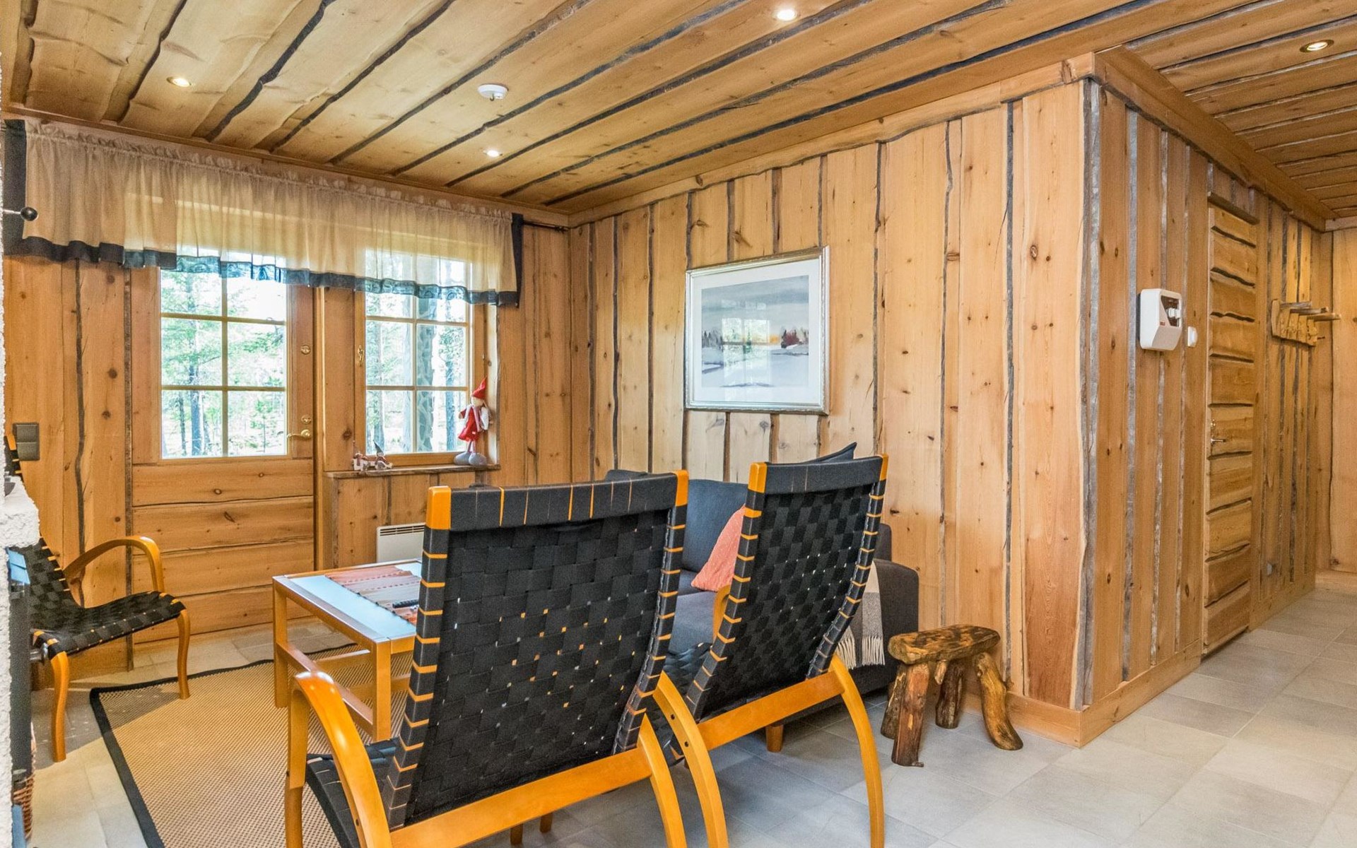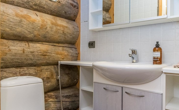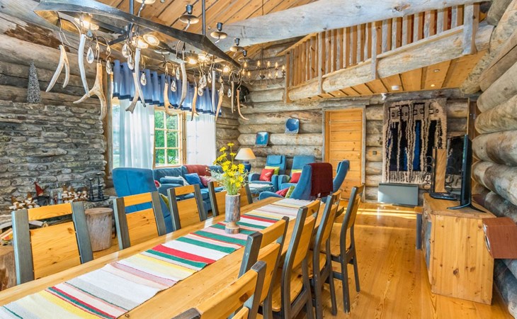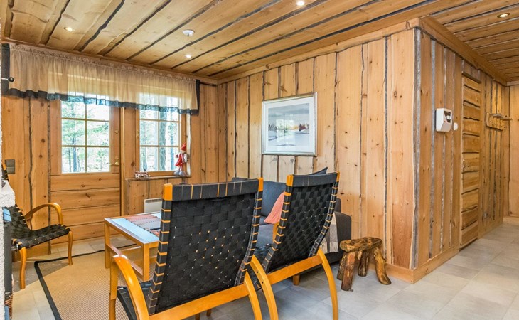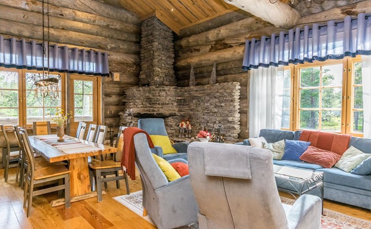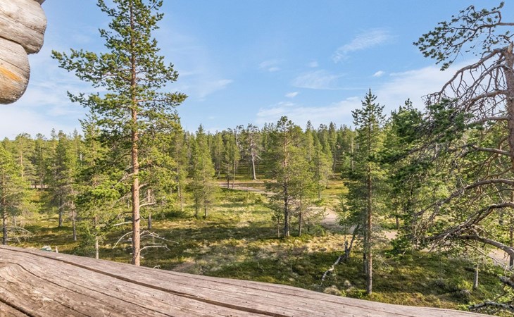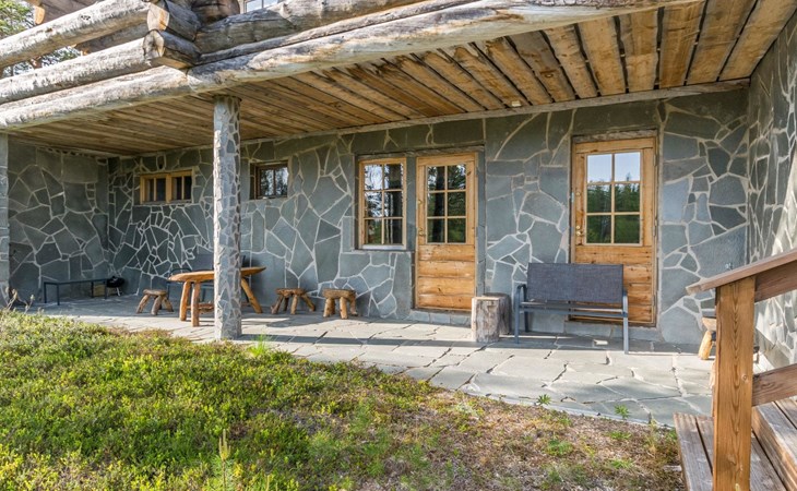 Kiela 1 is located in the southern part of the building. Entrance is from the middle floor, where you can enjoy the comfort of a living room and dining area. A natural stone fireplace adds cosiness and warmth to the living area. Next to the dining area is access to a large terrace with views of the surrounding nature.