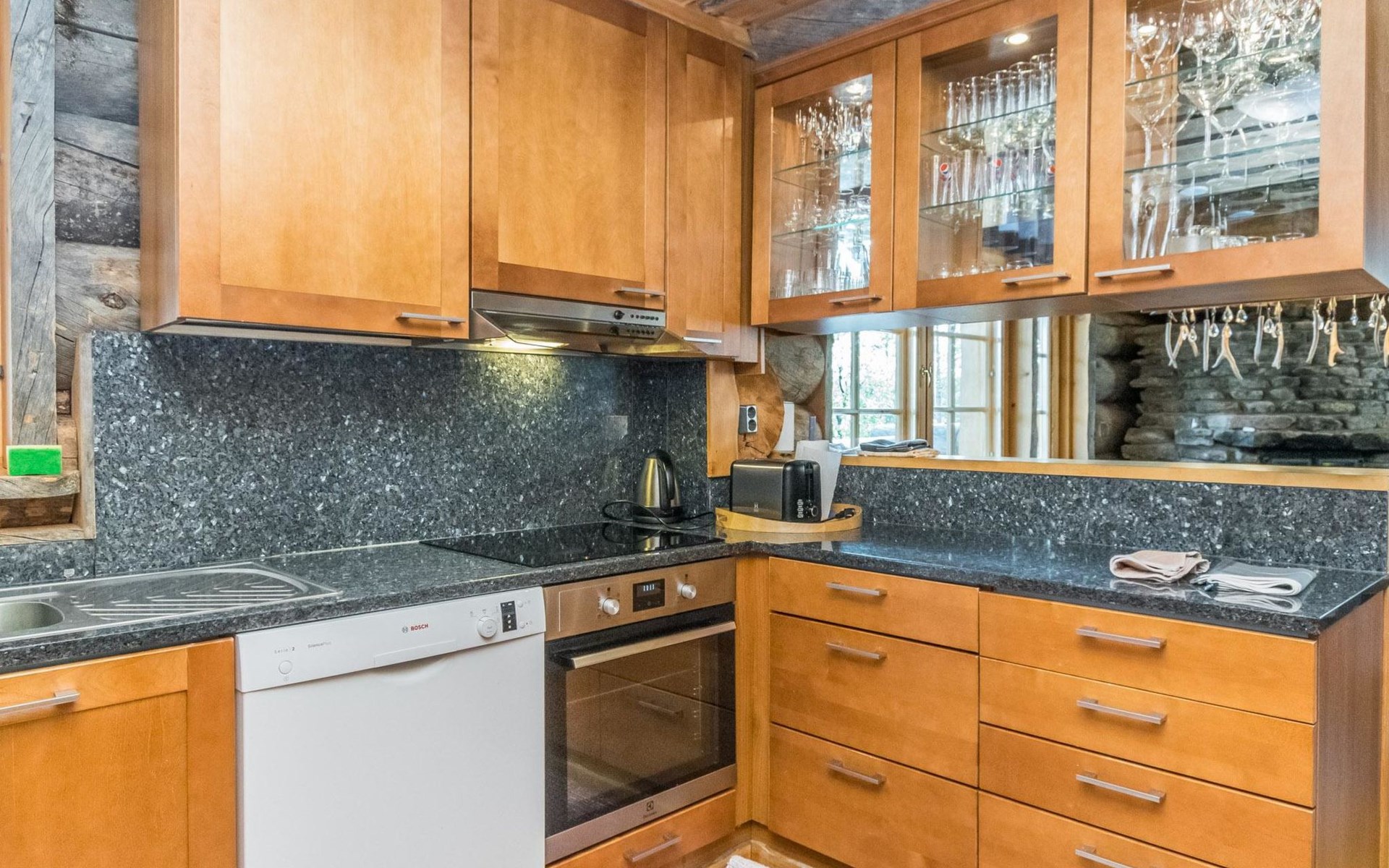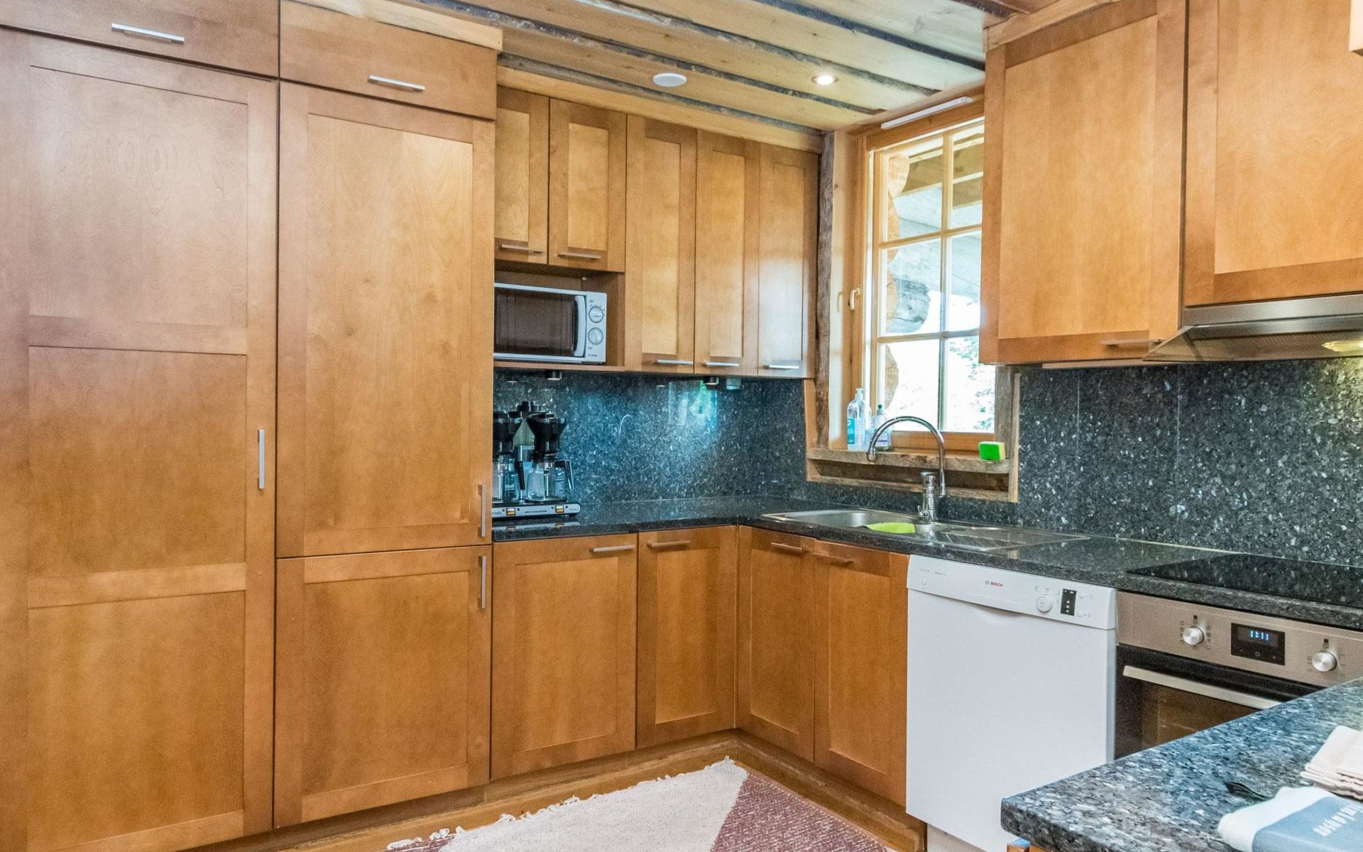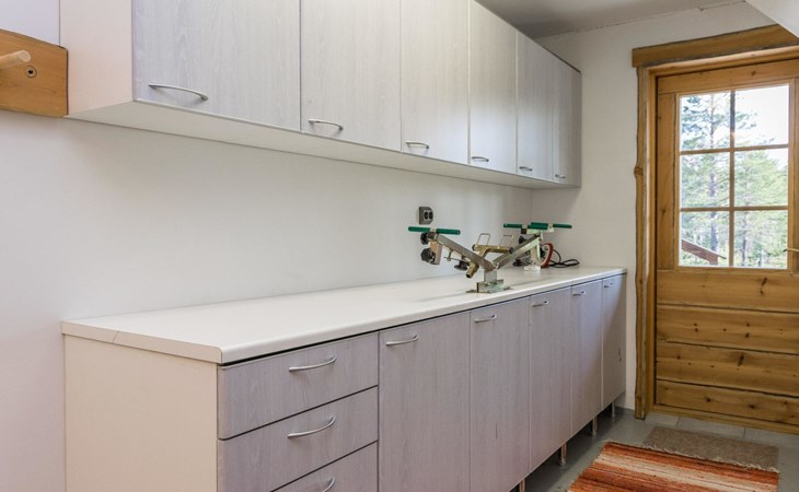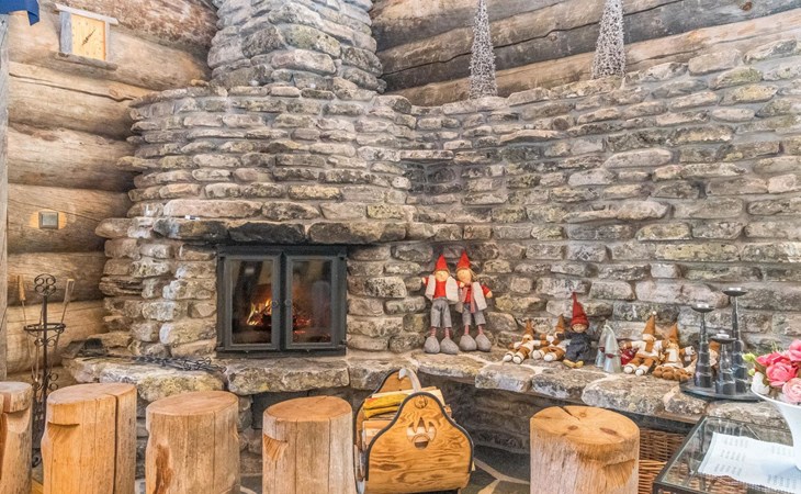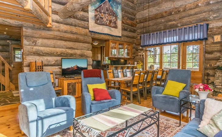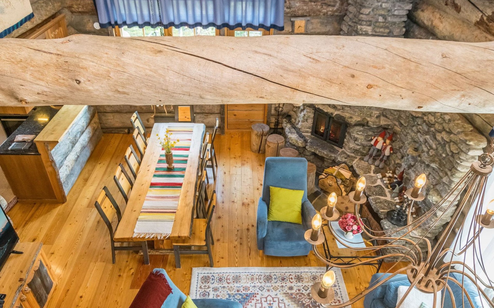 Kiela 1 is located in the southern part of the building. Entrance is from the middle floor, where you can enjoy the comfort of a living room and dining area. A natural stone fireplace adds cosiness and warmth to the living area. Next to the dining area is access to a large terrace with views of the surrounding nature.