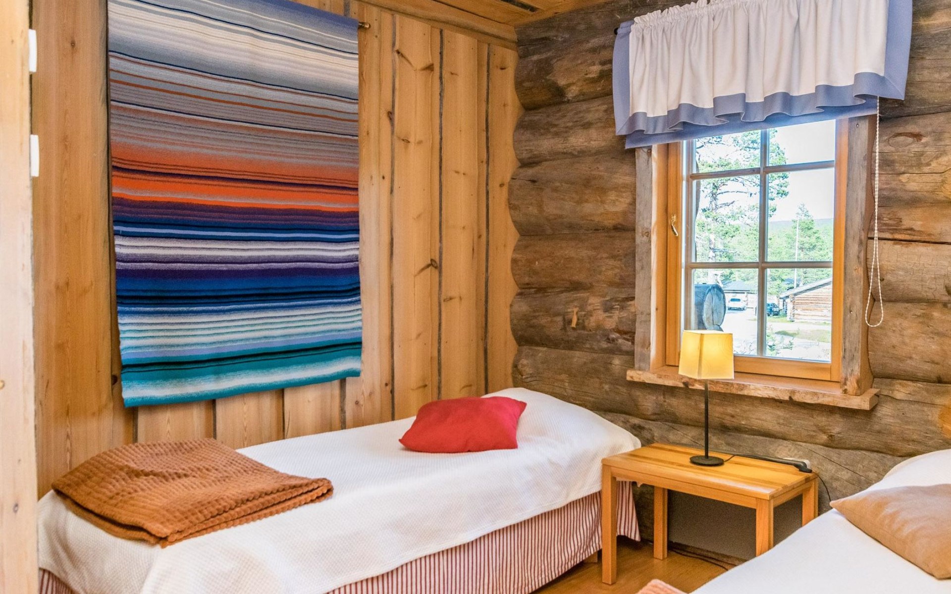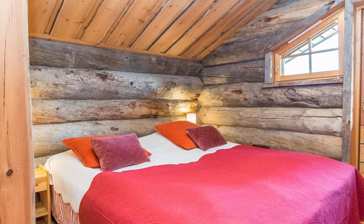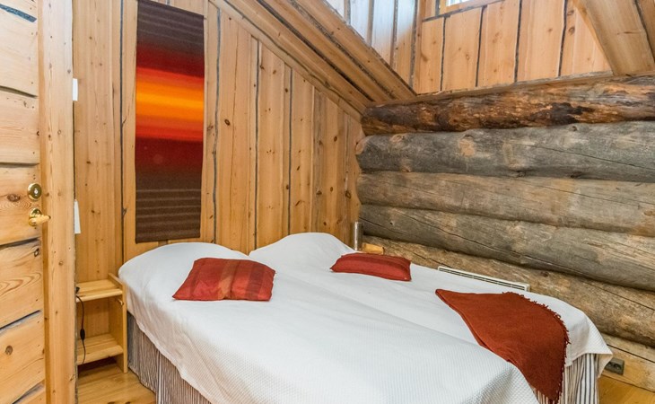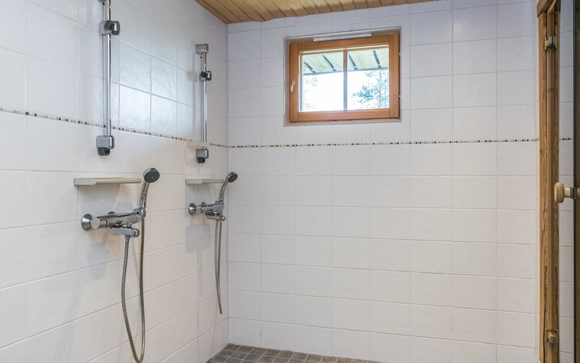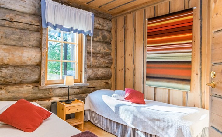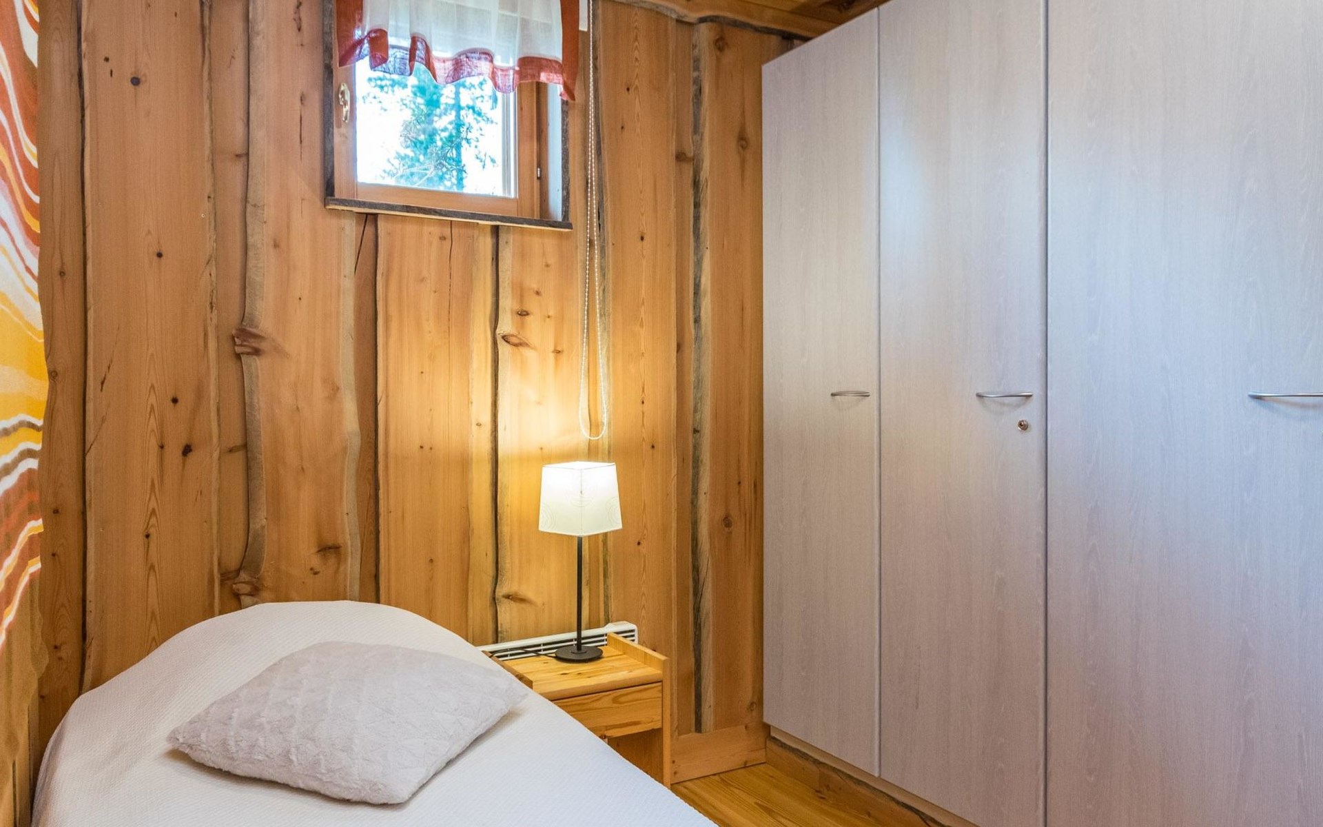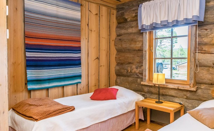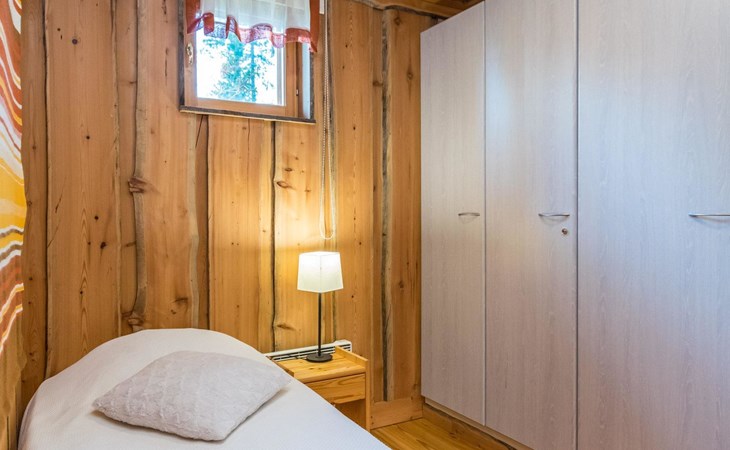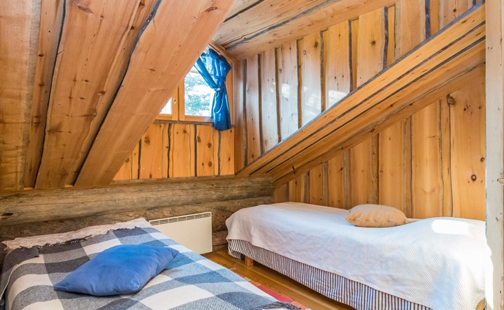 Upstairs there is more space for a good night's sleep. The three bedrooms have twin beds, a shower and a toilet. One of the bedrooms has a balcony with views of the surrounding landscape. There is also a bedroom downstairs with a single bed.