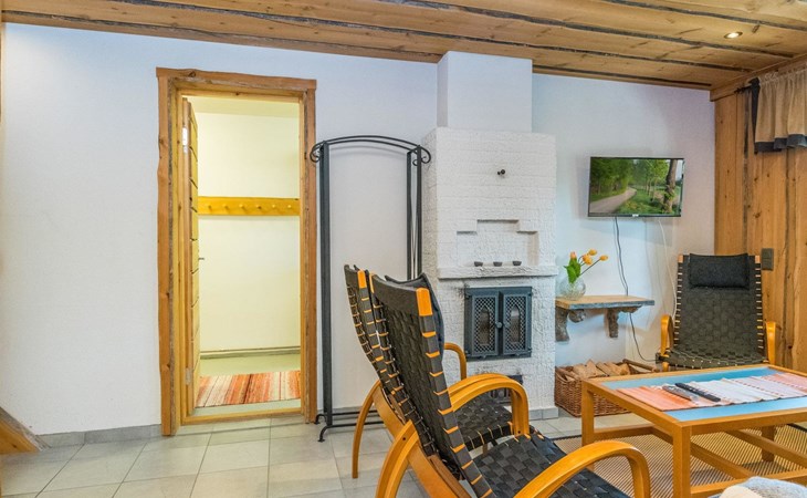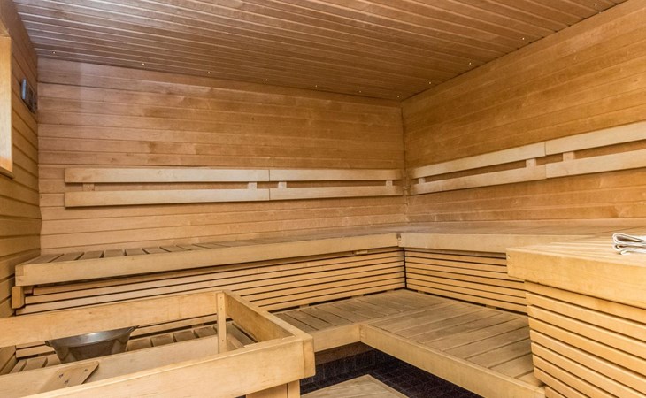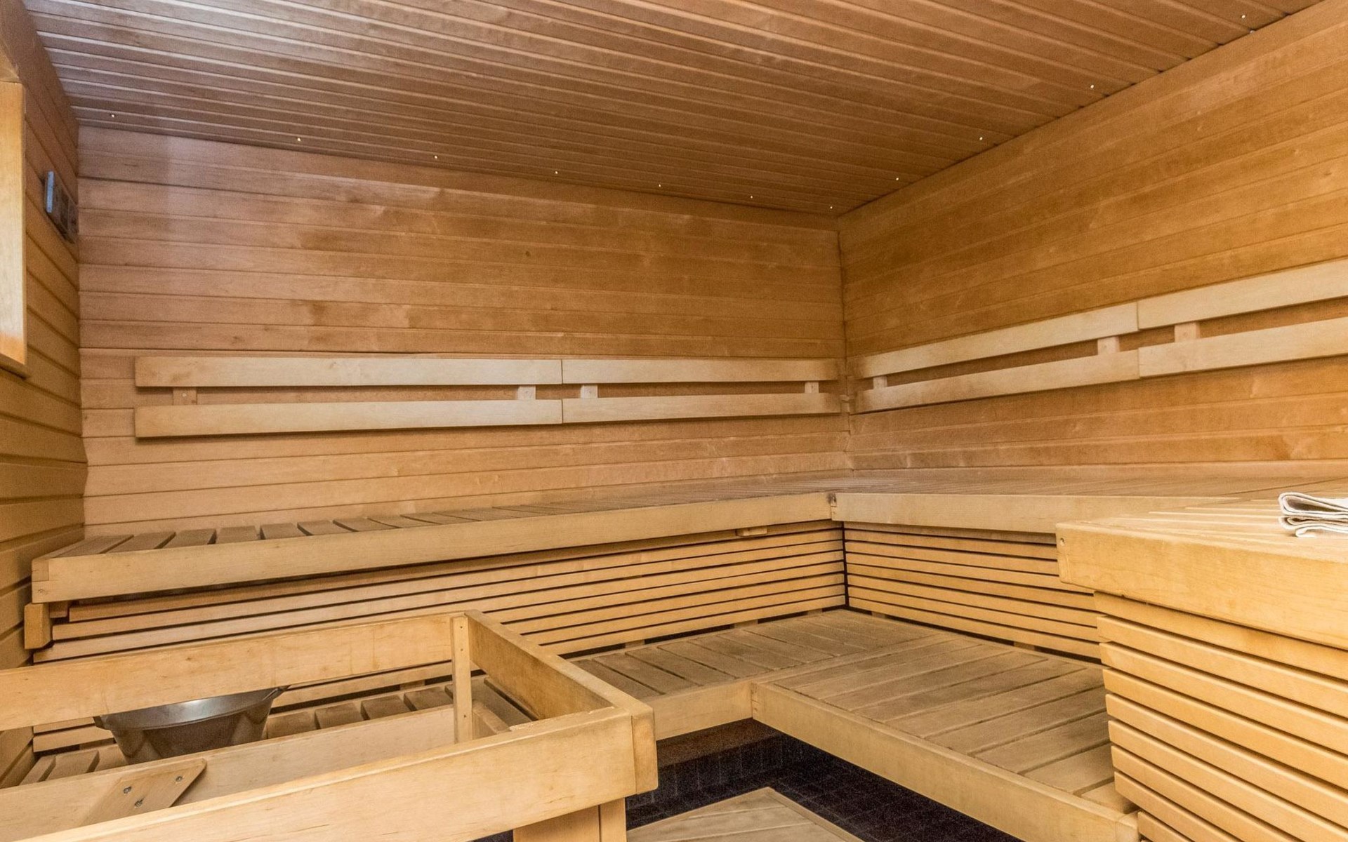 The spacious sauna offers a great place to relax. After the sauna you can enjoy refreshments in the fireplace room or chill out in the lower courtyard, which is accessible from the fireplace room.