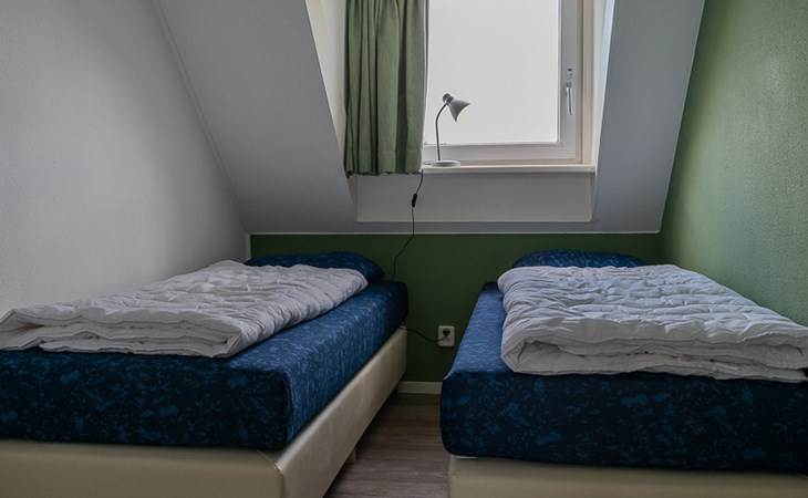 De eerste verdieping heeft 7 slaapkamers en 1 badkamer. In alle slaapkamers staan 2 éénpersoons boxsprings. De badkamer beschikt over 2 inloopdouches en een dubbele wastafel.